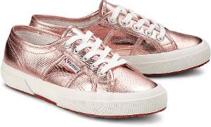 In dieser Saison glitzert und blinkt es an den Füßen – metallische Optiken liegen absolut im Trend. In den hochwertig metallisierten Obermaterialien dieser Superga Schuhe fängt sich das Sonnenlicht und die Fußbekleidung rückt in den Mittelpunkt des Stylings. Selbstverständlich können Sie diese Damenschuhe in Übergröße hervorragend zu jedem Basic Outfit tragen, dem die Trendteile modischen Spirit einhauchen.