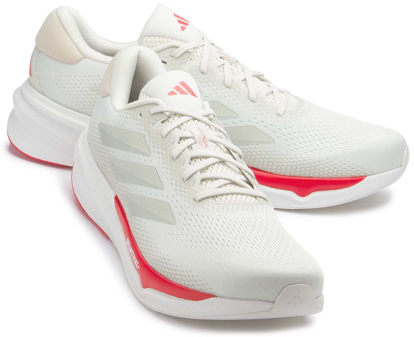 Der Supernova Stride ist ein zuverlässiger Laufschuh für jeden Tag, der in Sachen Dämpfung und Passform den perfekten Mix aus Tragekomfort und Stabilität liefert. Unser neuer Dämpfungsschaum Dreamstrike+ wird für maximalen Komfort und ein kraftvolles Abstoßen strategisch im Vorfußbereich platziert. Die bequeme Zwischensohle wird zudem durch eine EVA-Trägersohle ergänzt, die die Abrollbewegung unterstützt und ein Plus an Dynamik bietet. Mit dem Supernova Stride ziehst du dein Training selbstbewusst durch, denn die strapazierfähige Adiwear Außensohle überzeugt mit unschlagbarer Traktion.