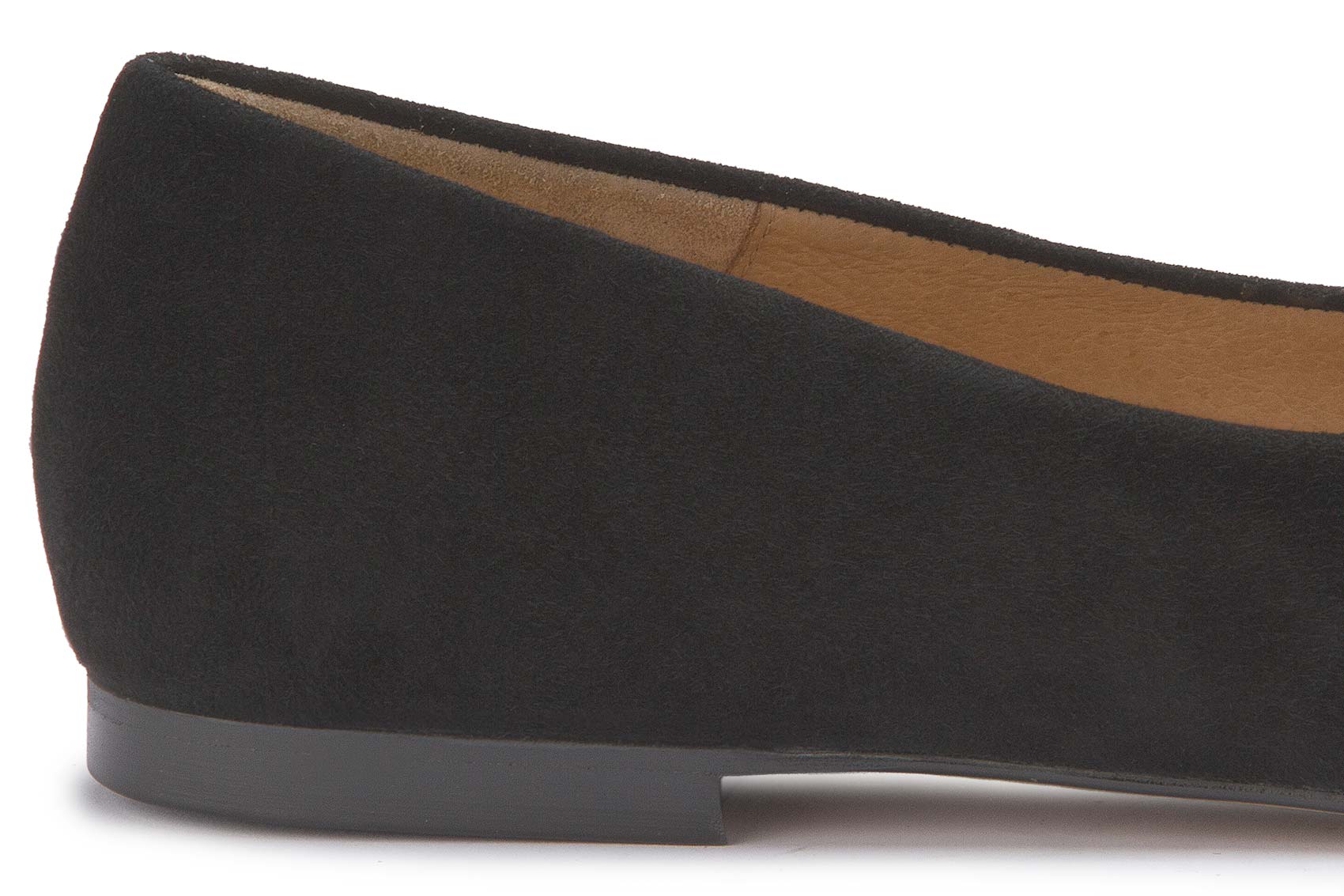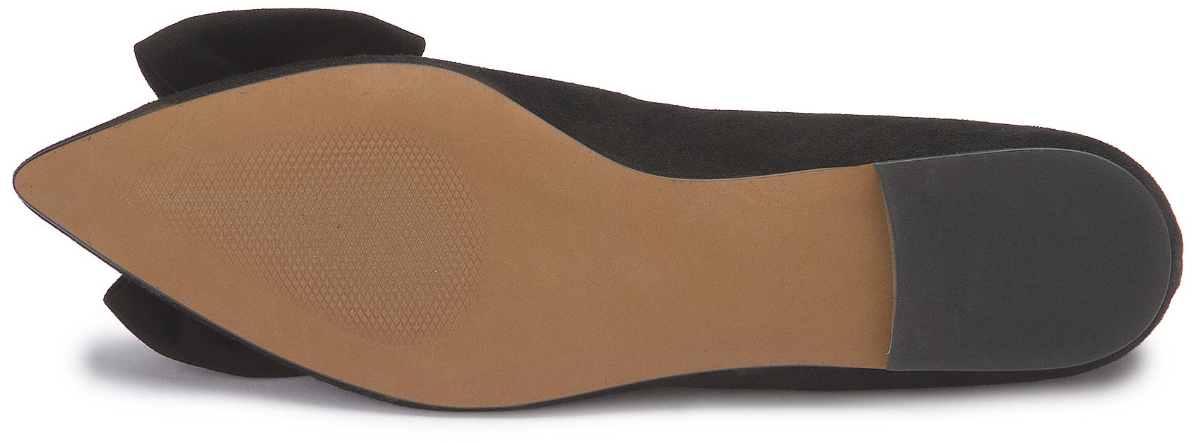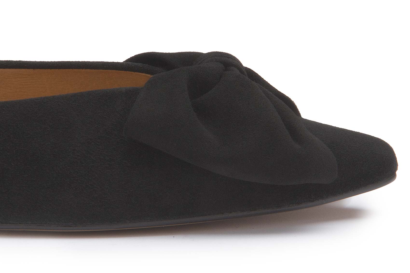 Die eleganten Ballerinas von Bariello überzeugen mit zeitloser Raffinesse. Aus feinem schwarzen Rauleder gefertigt und mit einer schicken Schleife verziert, verleihen sie jedem Outfit eine edle Note. Der spitz zulaufende Schnitt und die flache Sohle sorgen für stilvollen Tragekomfort – perfekt für Alltag und besondere Anlässe.