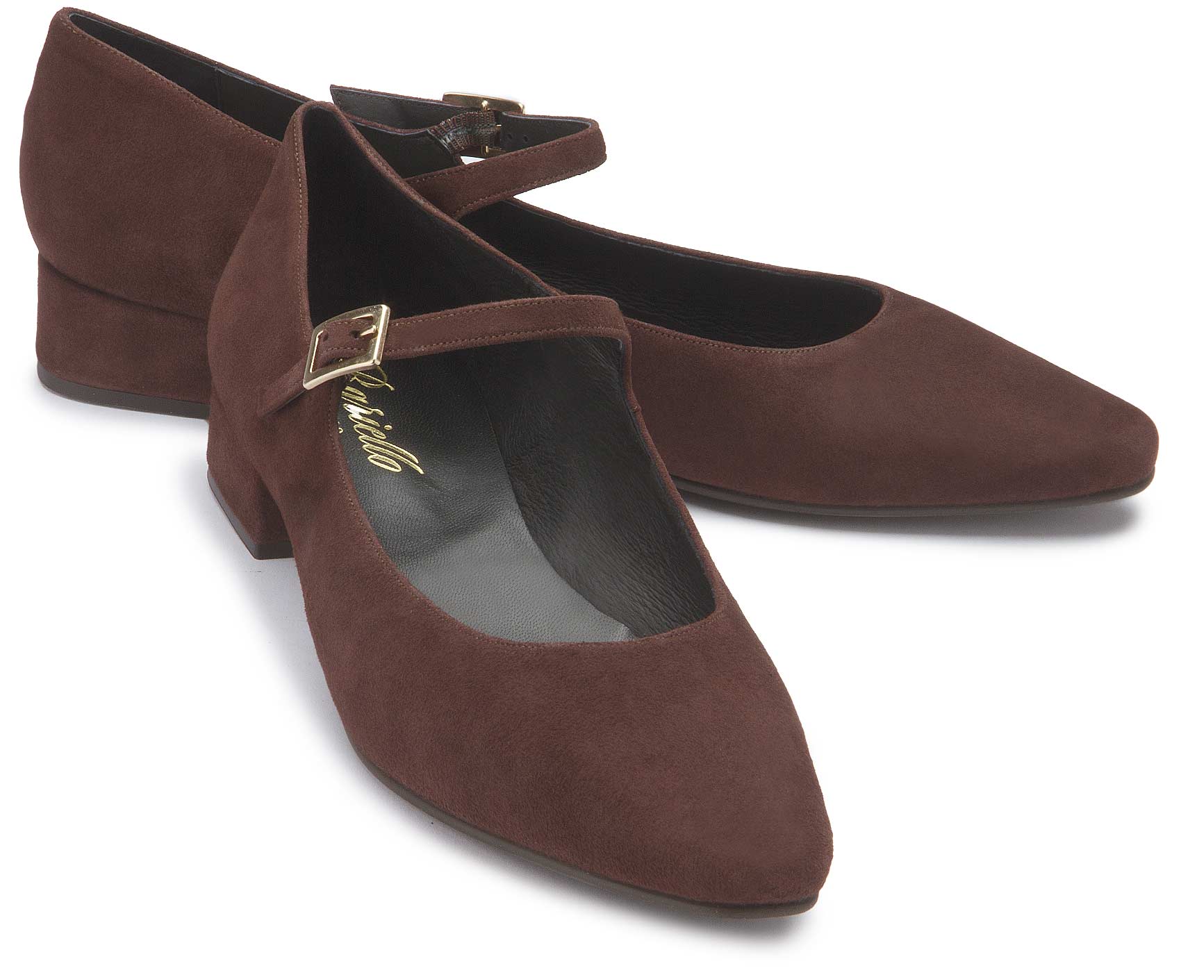 Ein Hauch von Eleganz für jeden Anlass – dieser edle Ballerina von Bariello überzeugt mit hochwertigem, braunem Rauleder und einer schlanken Silhouette. Das zarte Riemchen bietet sicheren Halt, während das weiche Lederfutter im Inneren für erstklassigen Tragekomfort sorgt. Ein stilvoller Begleiter, der klassische Eleganz mit zeitgemäßem Design perfekt vereint.