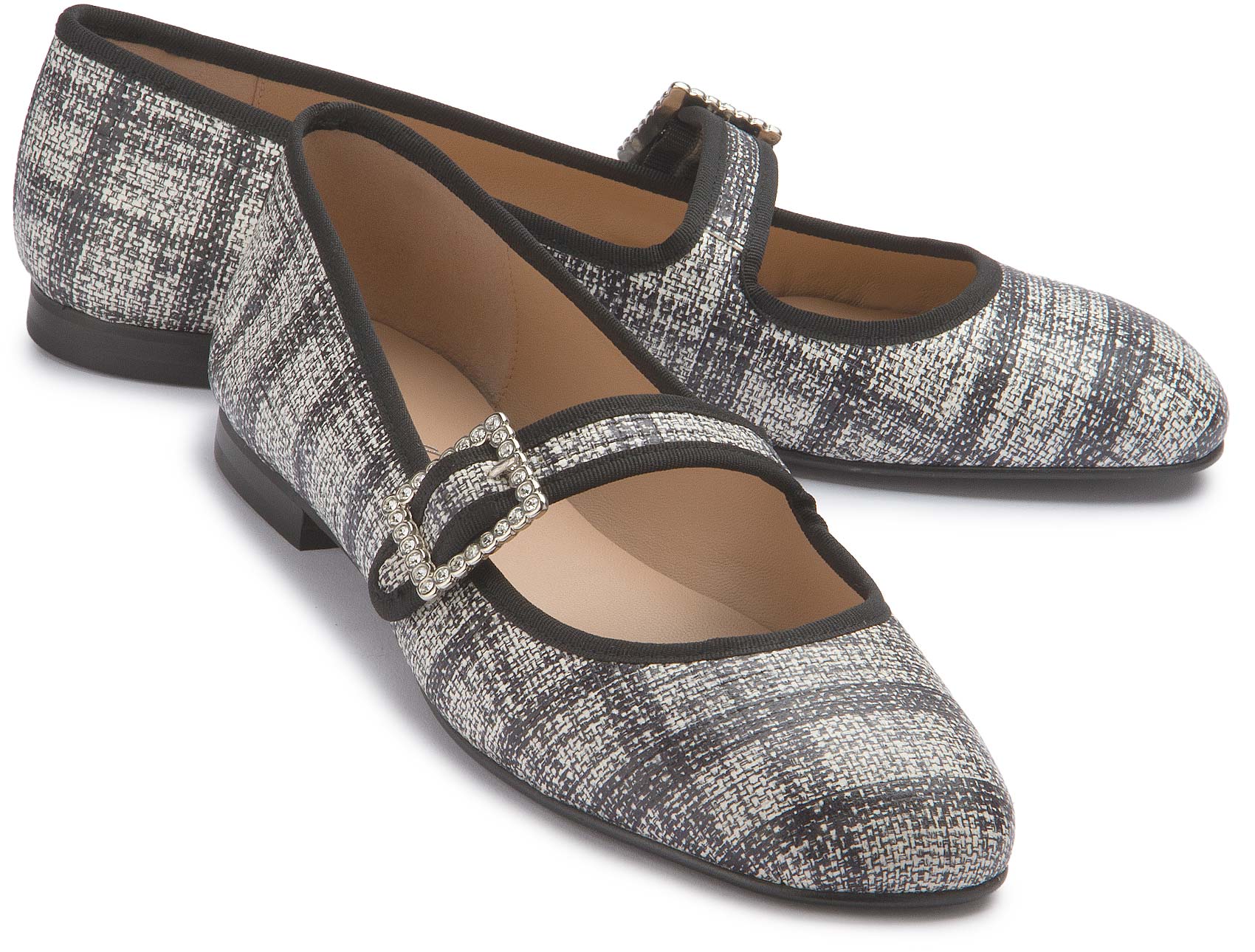 Diese eleganten Ballerinas von Bariello begeistern mit ihrem modernen Tweed-Design und einer funkelnden Strassschnalle. Der klassische Schnitt und die flache Silhouette verleihen jedem Look feminine Raffinesse und zeitlose Eleganz – perfekt für Alltag und besondere Anlässe.