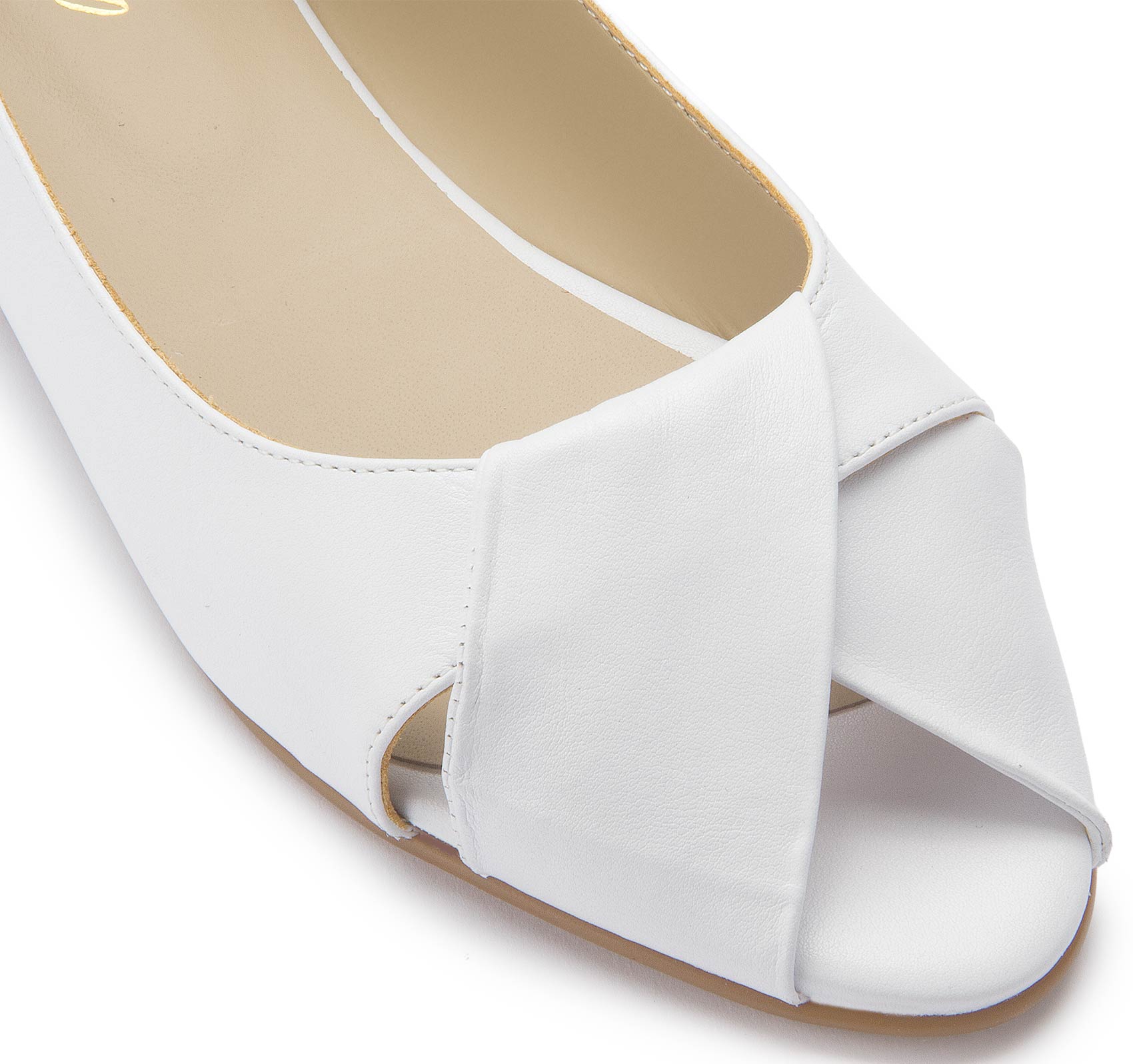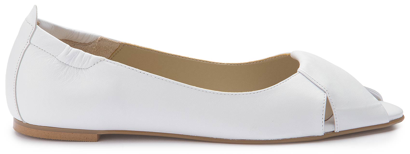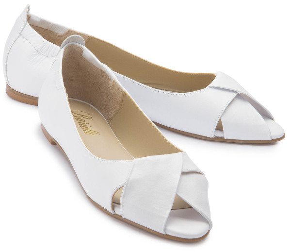 Eleganter Ballerina von Bariello in edlem Weiß – aus hochwertigem Leder gefertigt, mit weichem Lederfutter für angenehmen Tragekomfort. Der dehnbare Einsatz an der Ferse sorgt für perfekten Sitz, während die leicht offene Front dem Schuh eine feminine Note verleiht. Ideal für stilvolle Auftritte im Alltag oder zu besonderen Anlässen.