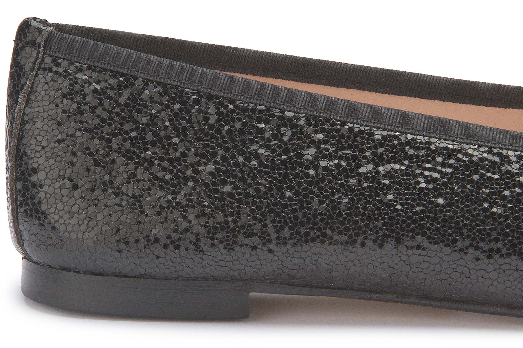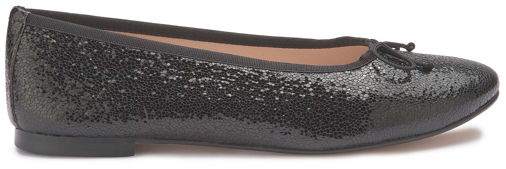 Der Ballerina von Bariello Milano überzeugt mit einer eleganten Silhouette und einer schimmernden Oberfläche in metallischer Optik. Die feine Zierschleife auf der Vorderkappe unterstreicht das klassische Design und setzt einen dezenten Akzent. Die flache Sohle sorgt für angenehmen Tragekomfort und macht den Schuh zu einem stilvollen Begleiter für besondere Anlässe und moderne Alltags-Looks.