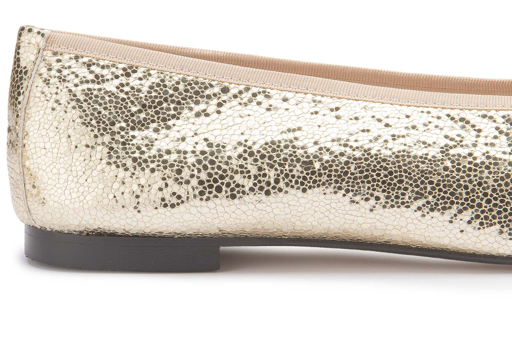 Der Ballerina von Bariello Milano überzeugt mit einer eleganten Silhouette und einer schimmernden Oberfläche in metallischer Optik. Die feine Zierschleife auf der Vorderkappe unterstreicht das klassische Design und setzt einen dezenten Akzent. Die flache Sohle sorgt für angenehmen Tragekomfort und macht den Schuh zu einem stilvollen Begleiter für besondere Anlässe und moderne Alltags-Looks.