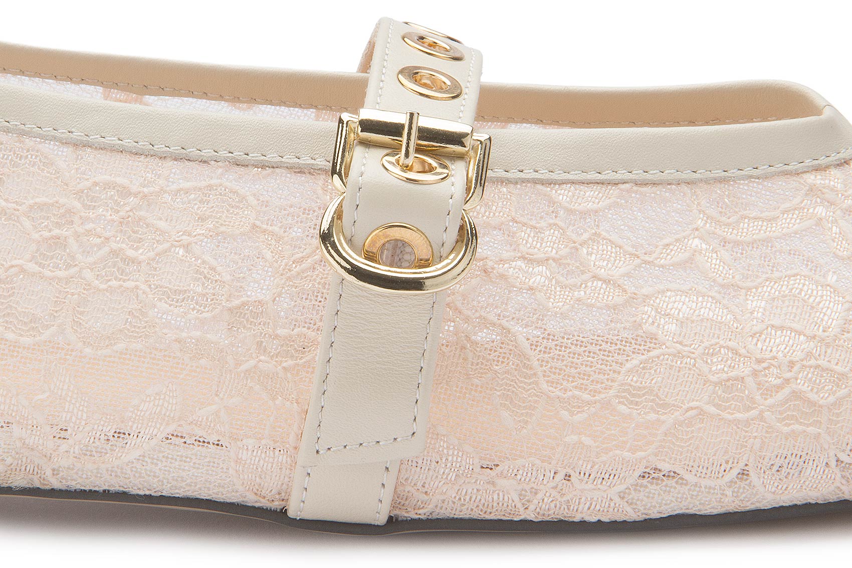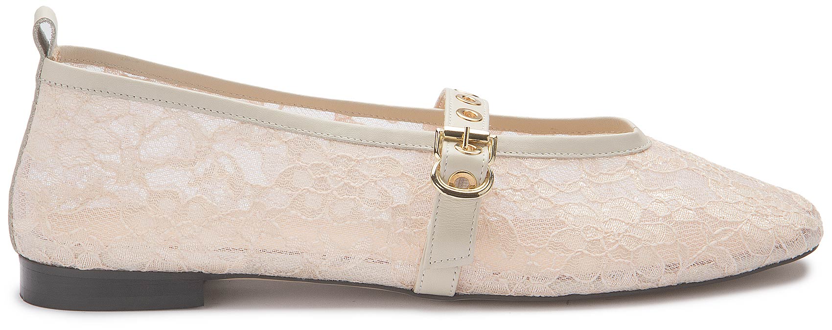 Dieser elegante Ballerina von Miotti besticht durch sein feines Spitzen-Design in zartem Creme und verleiht jedem Outfit eine feminine Note. Der dekorative Riemen mit goldfarbenen Details sorgt für einen modischen Akzent und einen sicheren Halt. Die flache Sohle bietet angenehmen Tragekomfort und macht den Schuh zum idealen Begleiter für besondere Anlässe und stilvolle Alltagslooks.