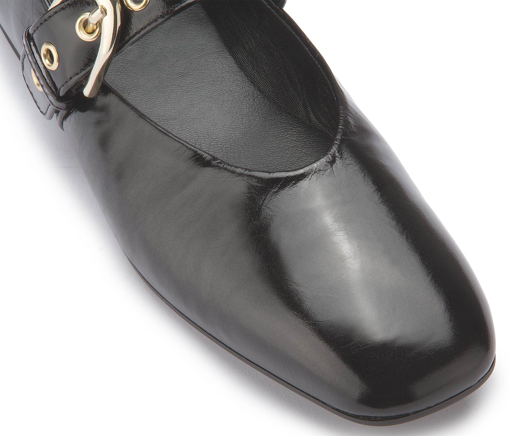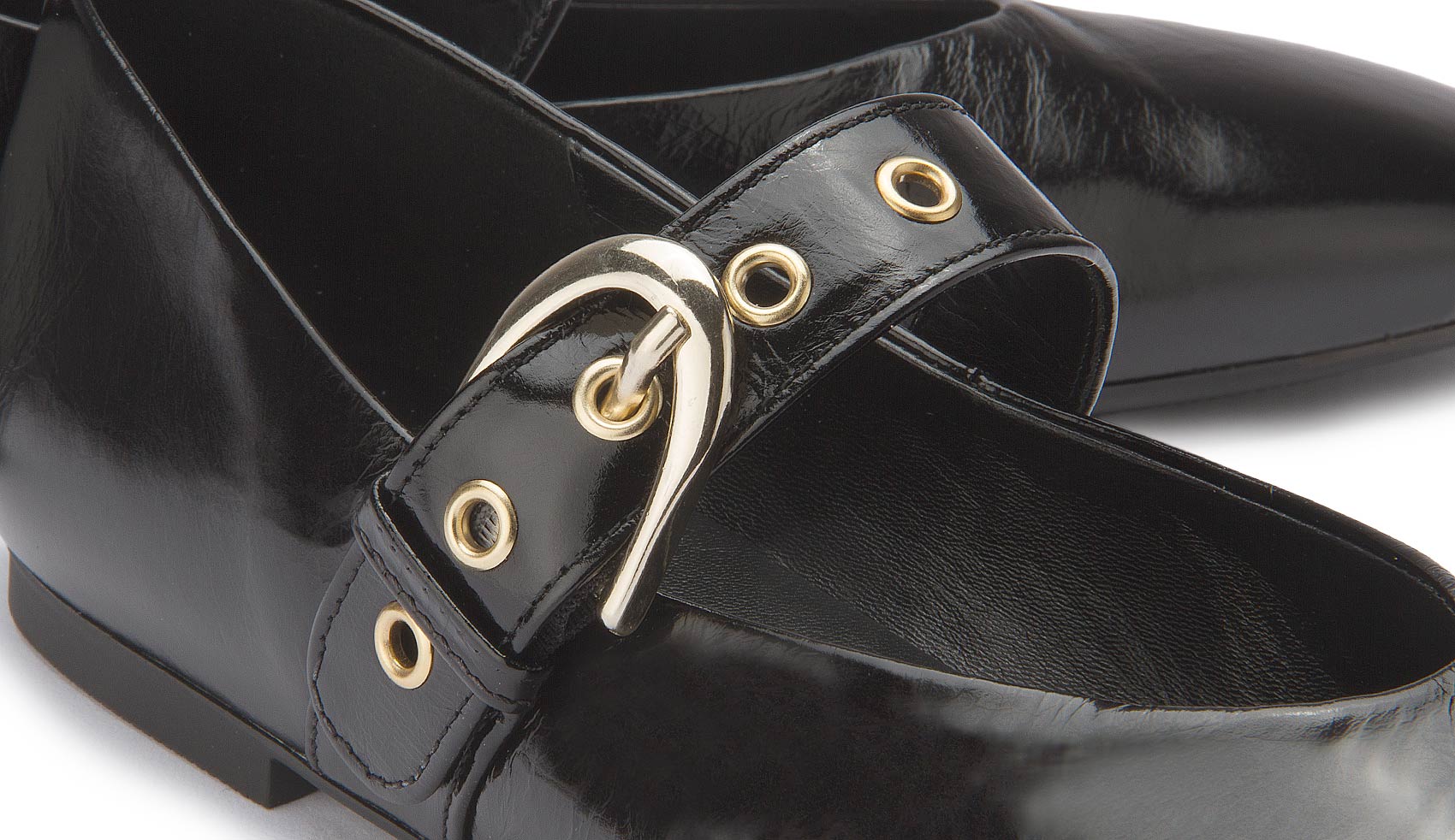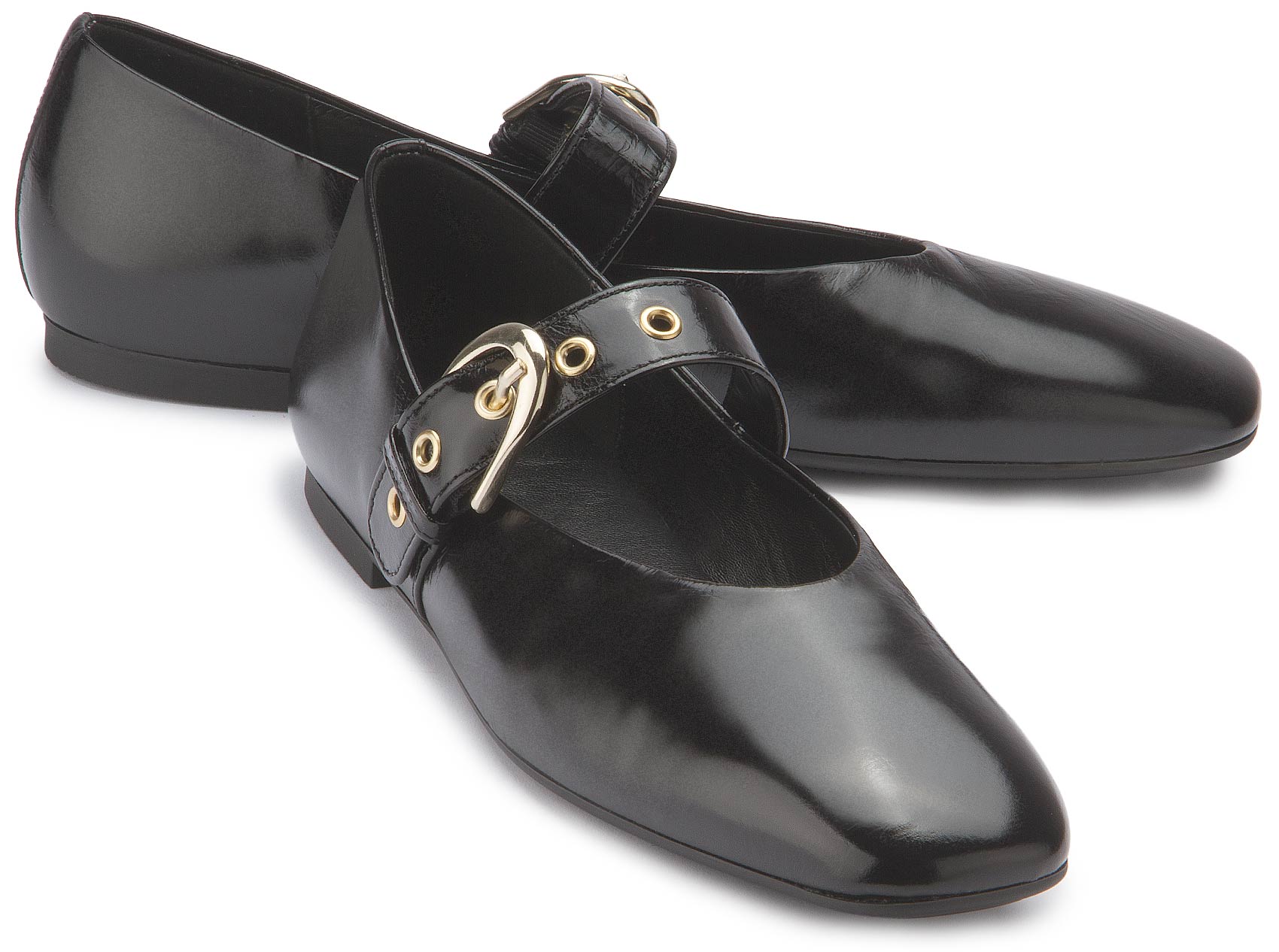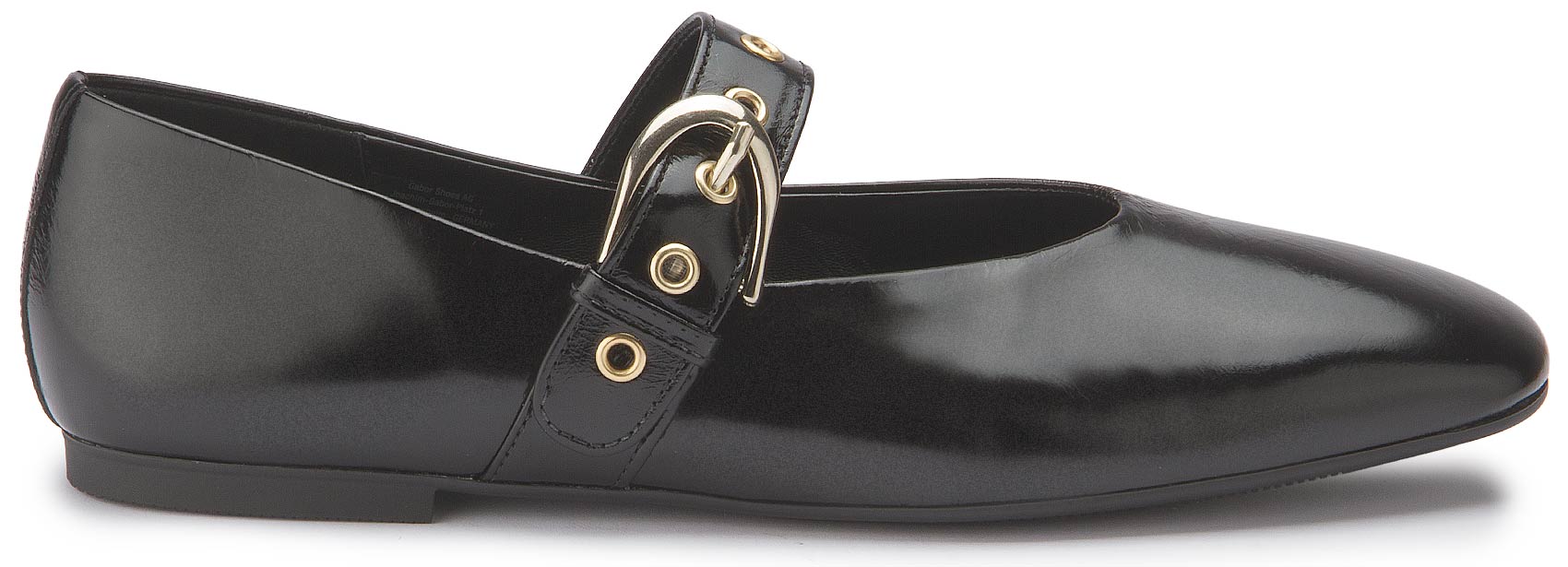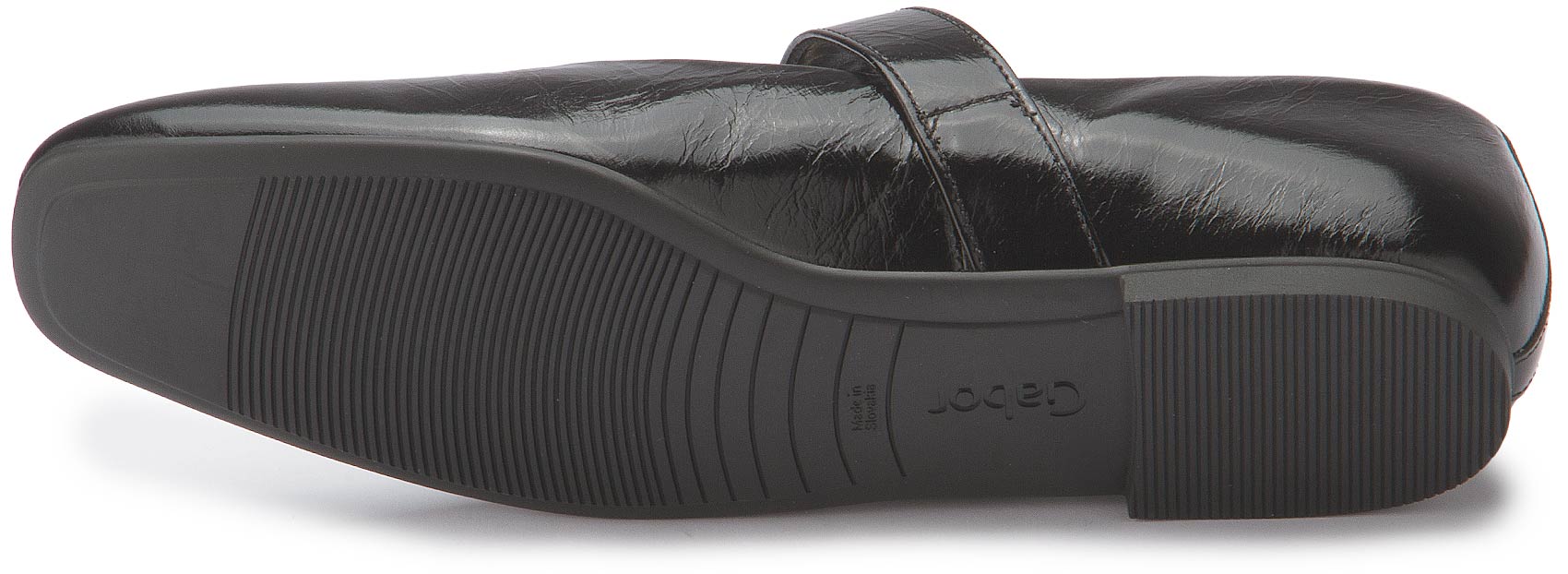 Dieser elegante Ballerina von Gabor besticht durch sein zeitloses Design in edlem Schwarz und wird durch die goldene Zierschnalle stilvoll akzentuiert. Der breite Riemen sorgt nicht nur für sicheren Halt, sondern verleiht dem Schuh auch eine moderne Note – perfekt für Büro und Freizeit.