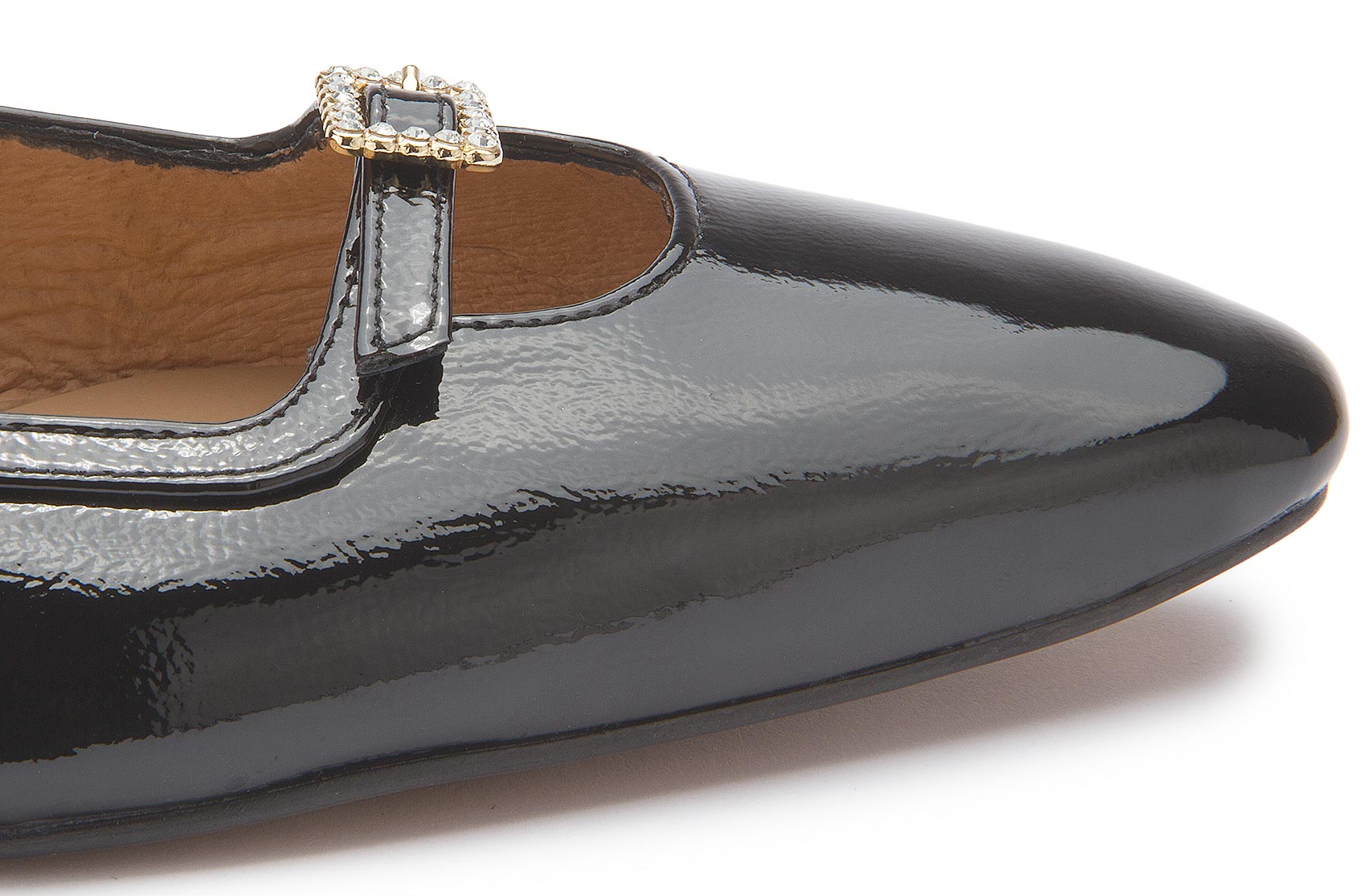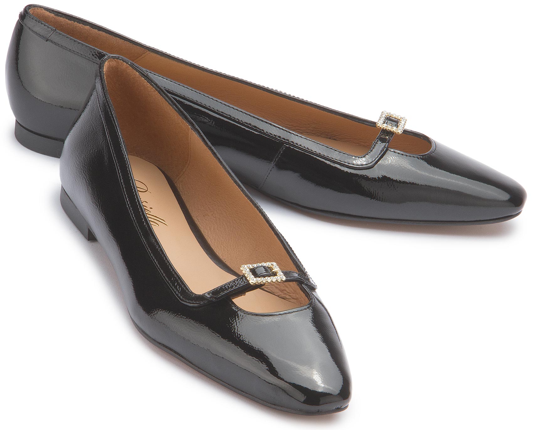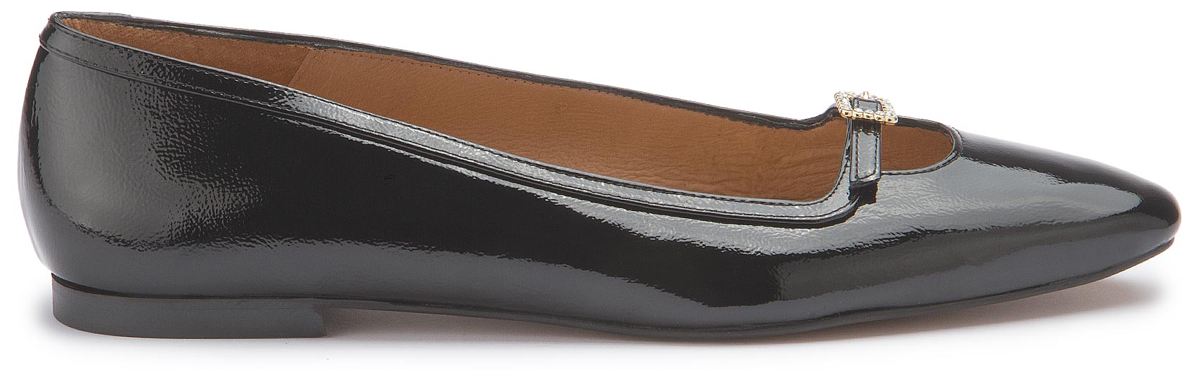 Tauchen Sie ein in die Welt der Eleganz und Bequemlichkeit mit den Ballerinas von Bariello. Die funkelnden Steinchen am Riemen sind wie Sterne, die Ihre Schritte auf ein glamouröses Level heben. Das Lackleder verleiht einen Hauch von Raffinesse, während das Innenmaterial aus Leder Ihren Füßen eine kuschelige Umarmung schenkt. Diese Ballerinas sind eine Fusion aus Stil und Wohlbefinden. Investieren Sie in diese Schmuckstücke!
