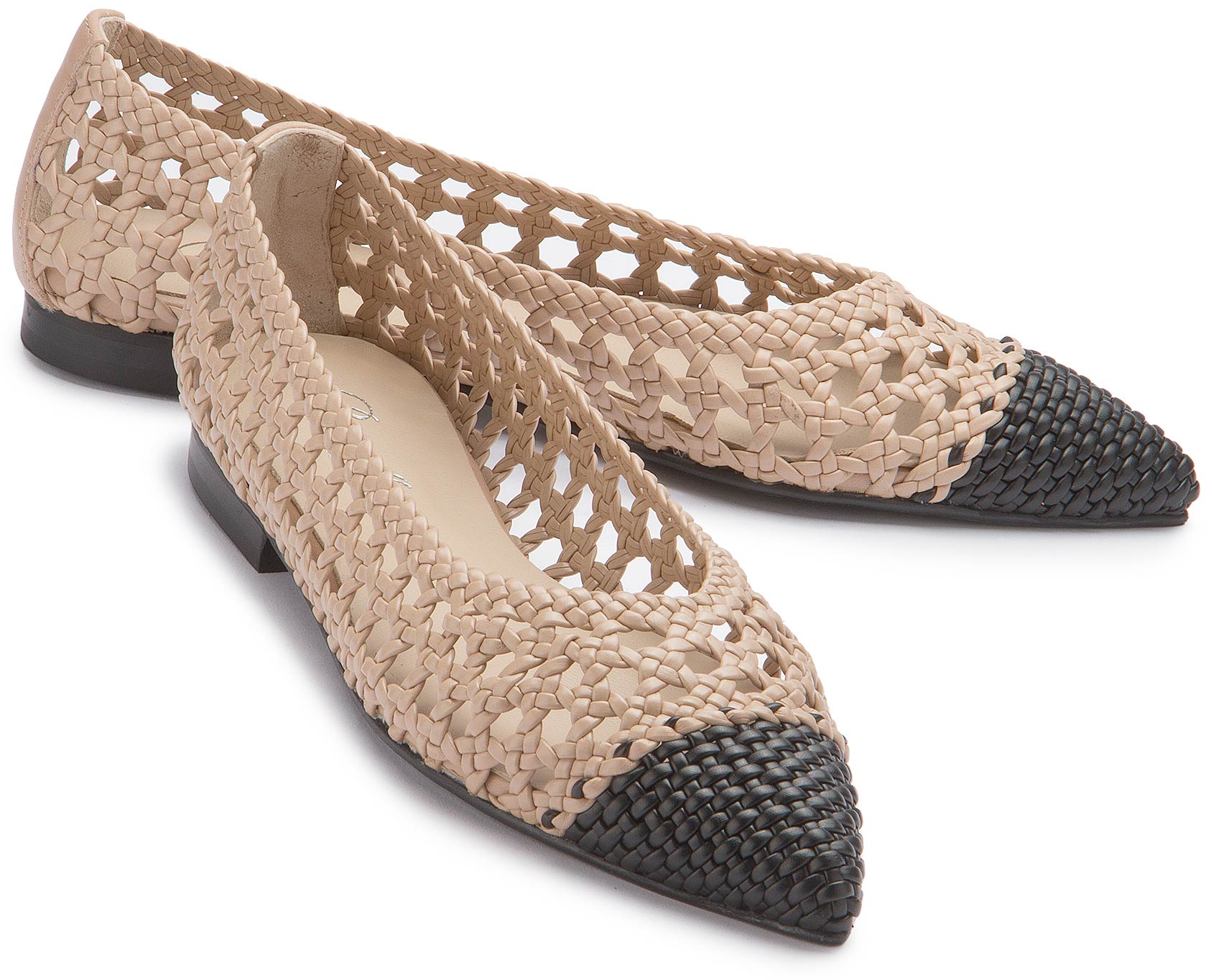 Wunderschöner Ballerina in Beige und Schwarz von Bariello, der in einer Flechtoptik glänzt! Durch die weiche Lederinnensohle kommt man garantiert nicht ins Schwitzen. Egal ob schick gestylt oder leger zur Leinenhose. Dieses Schmuckstück darf in keiner Garderobe fehlen!