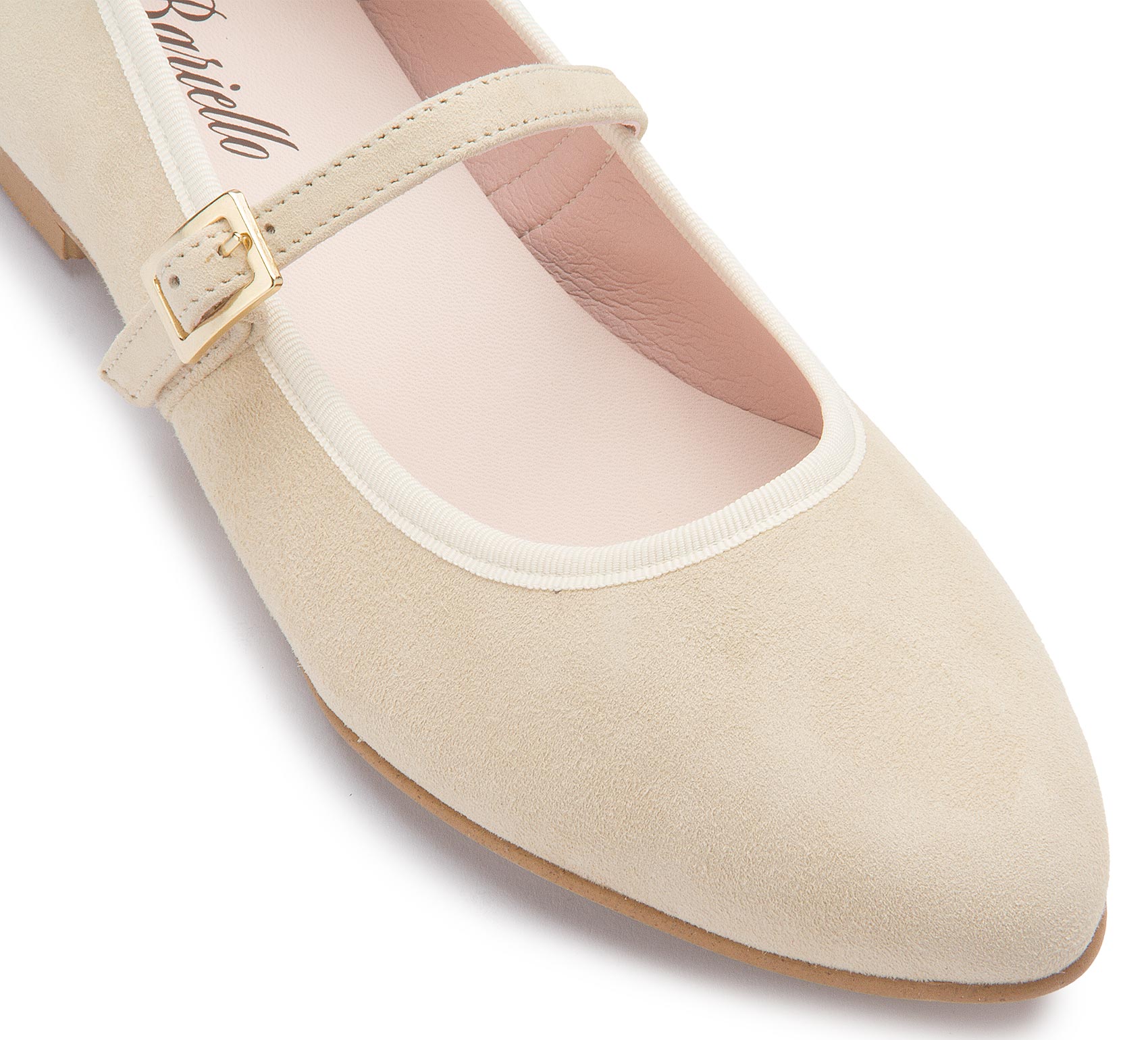 Hier präsentiert sich ein toller Ballerina von Bariello Milano für jede Gelegenheit. Für Komfort und eine gelungene Optik sorgt das Material aus wunderbar weichem Rauleder. Darüber hinaus sind die Ballerinas mit einem Riemchen ausgestattet, das nicht nur für einen sicheren Halt des Fußes sorgt, sondern auch ein modisches Element darstellt. Ob im Büro, beim Einkaufen oder bei besonderen Anlässen, diese Ballerina verleihen Ihrem Look eine elegante Note!