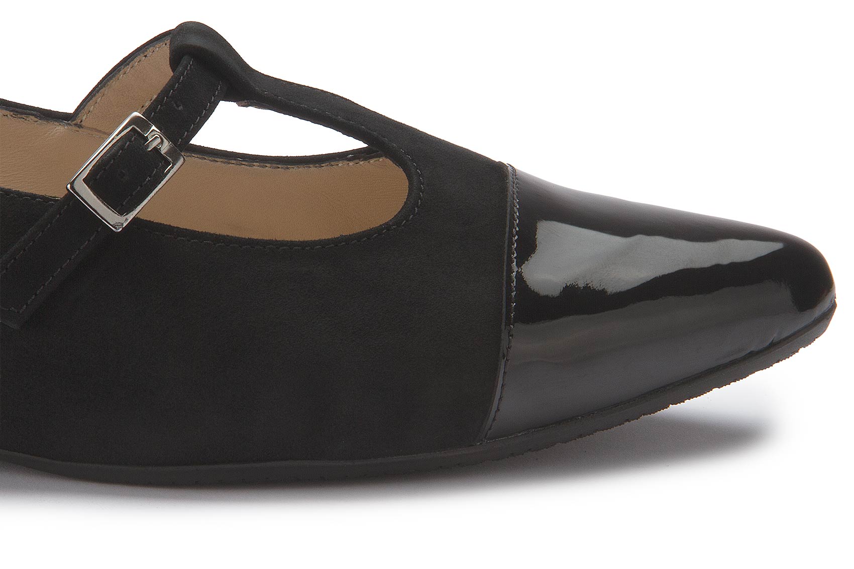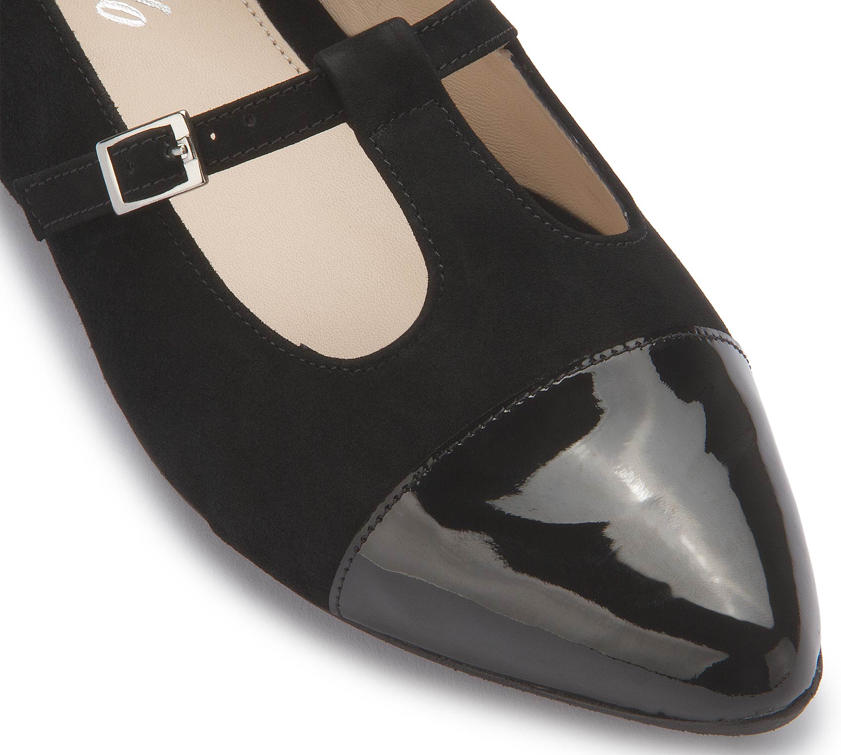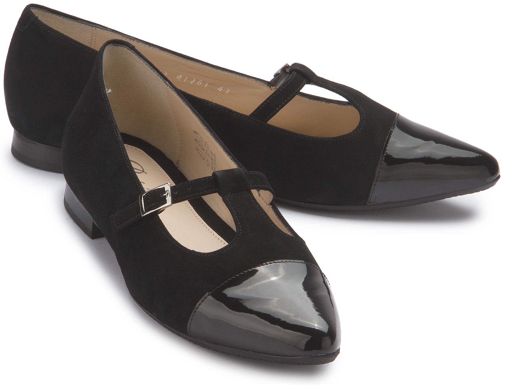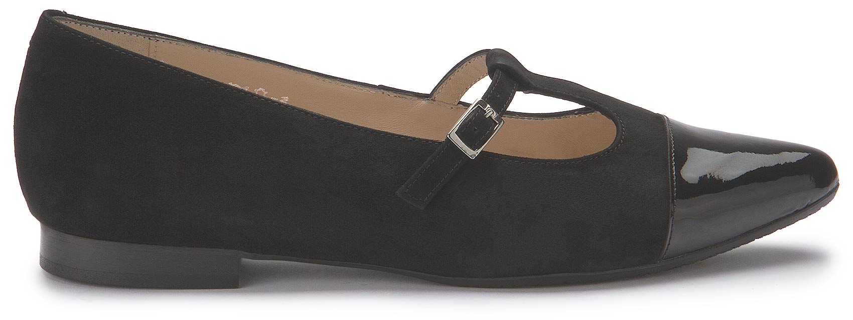 Dieser elegante Ballerina von Bariello kombiniert klassisches Design mit modernen Akzenten. Die gelungene Mischung aus weichem Rauleder und glänzender Lackspitze verleiht dem Modell eine edle Ausstrahlung. Der seitliche Riemen sorgt für optimalen Halt und unterstreicht den stilvollen Look. Perfekt für modebewusste Auftritte – ob im Büro oder zu besonderen Anlässen.