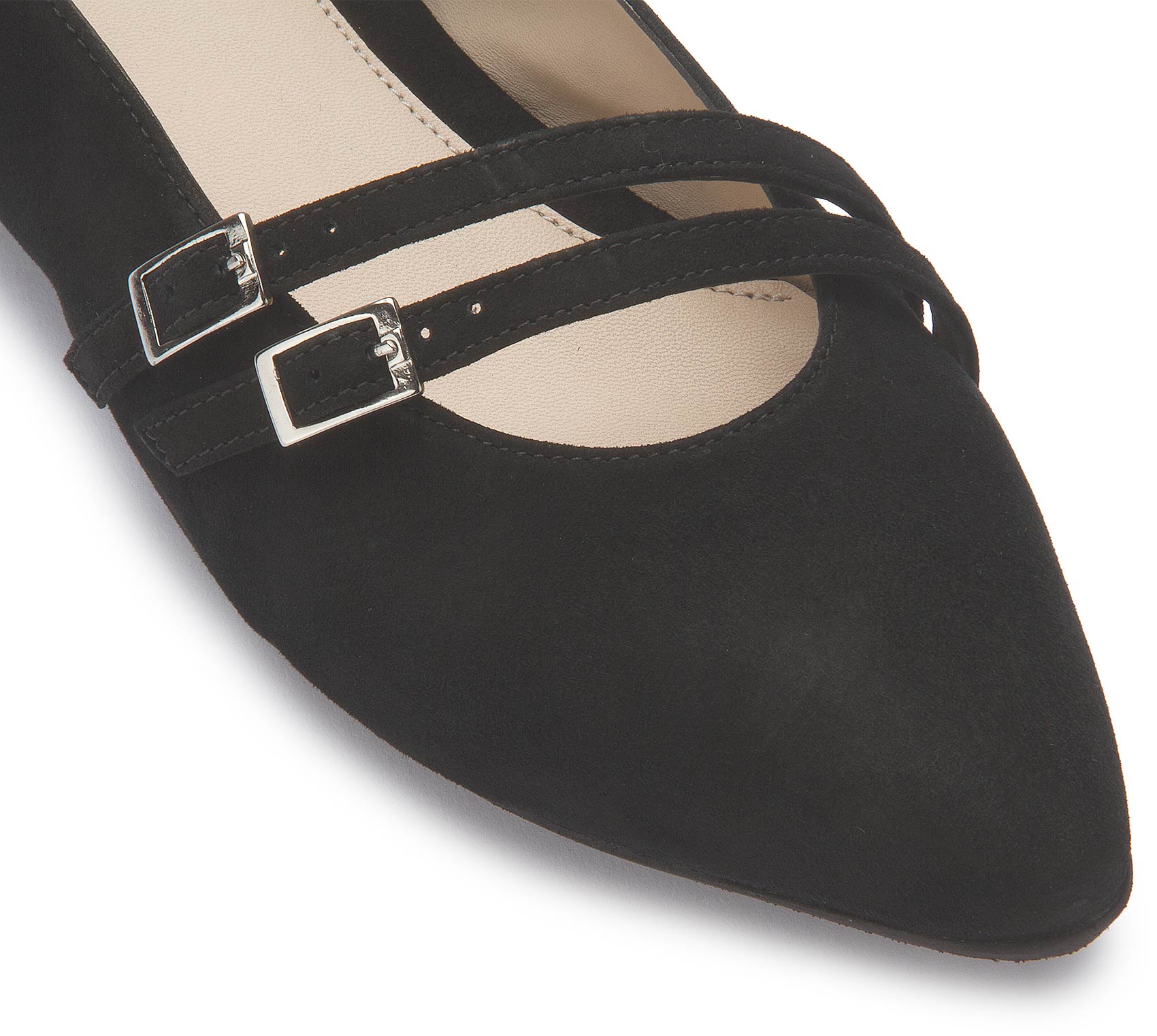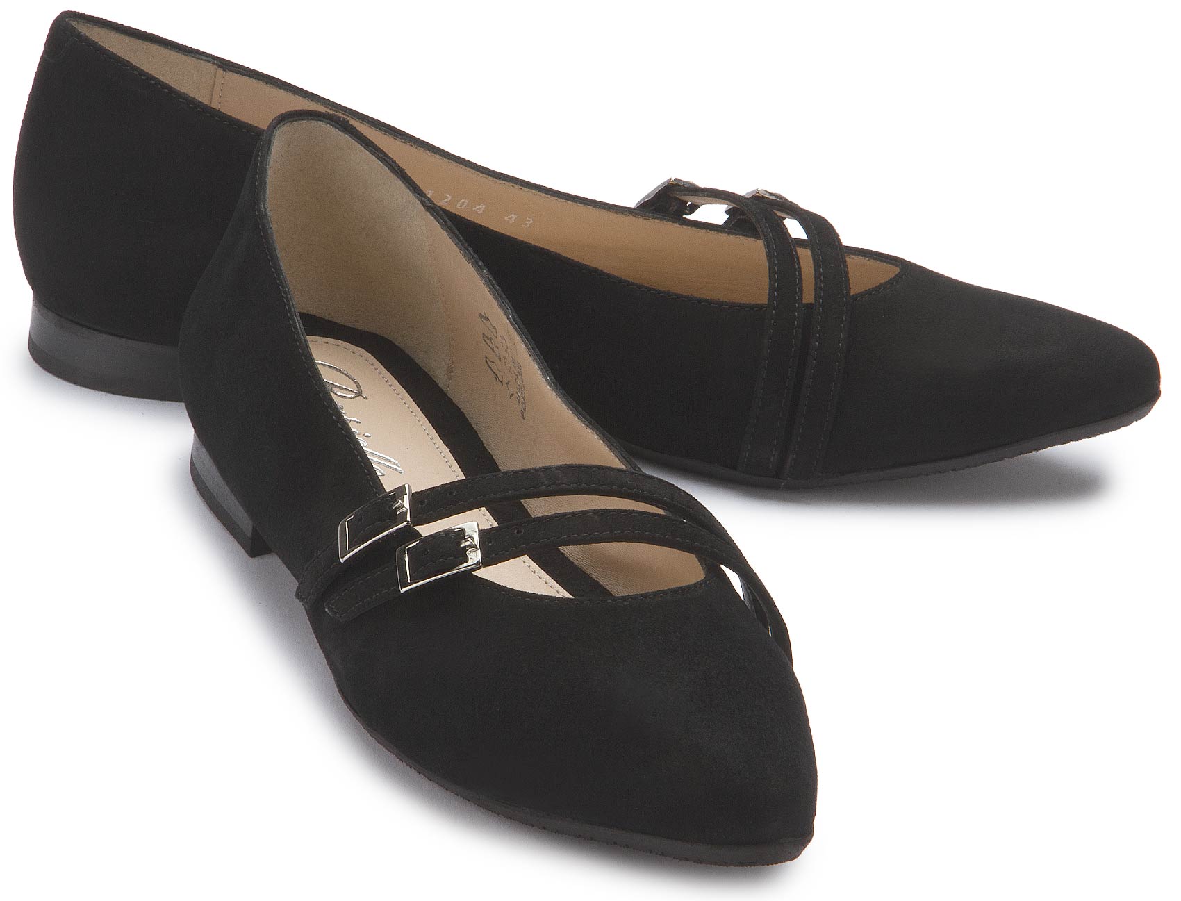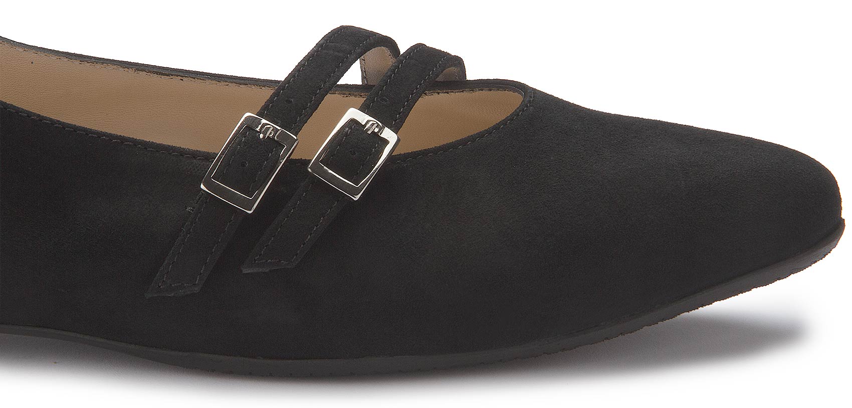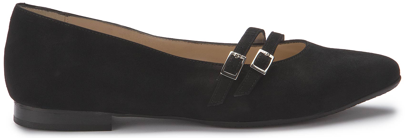 Dieser elegante Ballerina von Bariello besticht durch klassisches Design und feines Rauleder. Zwei schmale Riemchen über dem Rist sorgen für einen sicheren Sitz und setzen zugleich stilvolle Akzente. Das weiche Lederfutter garantiert angenehmen Tragekomfort den ganzen Tag über. Ein vielseitiger Begleiter für Büro, Alltag oder festliche Anlässe.