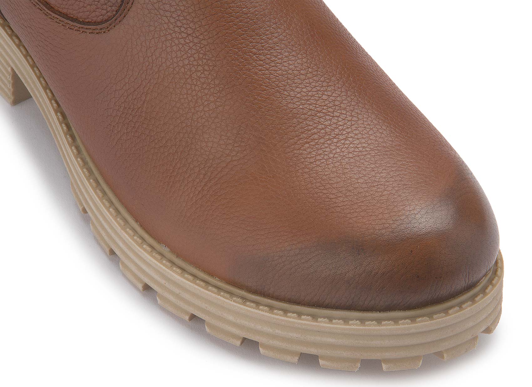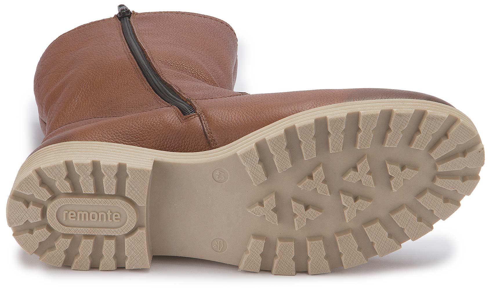 Highlights setzen! Mit diesen kastanienbraunen Remonte Boots aus Glattleder kann man sich überall sehen lassen! Der Reißverschluss ermöglicht ein einfaches An- und Ausziehen. Die bronzefarbenen Zierschnallen an der Seite sind stylische Hingucker. Die flexible und dämpfende Profilsohle sorgt für Trittsicherheit und das Wechselfußbett sorgt für ein angenehmes Gefühl unter den Füßen. Die Thermo-Einlegesohle sorgt für angenehm warme Füße und ein weiches Gefühl beim Auftreten. Wohlig warmes und feuchtigkeitsregulierendes Lammfell hält die Füße den ganzen Tag über warm. Da werden die kalten Tage zum Spaß!