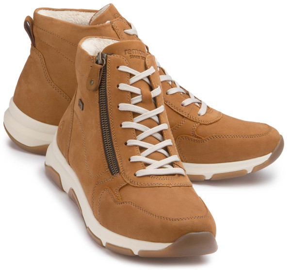 Stay true to your shoe: Diese komfortablen kupferfarbenen remonte Schnürstiefel für Damen aus Rauleder bestechen mit einem coolen Design und funktionaler Power. Die Schnürung wird durch einen Reißverschluss ergänzt und garantiert somit bestmöglichen Halt und eine perfekte Passform. Die Ziernähte sind hübsche Details. Die funktionalen Highlights werden durch die gepolsterte und herausnehmbare Einlegesohle sowie die leichte und griffige Sohle perfekt abgerundet. Dank der Komfortweite hat der Fuß nicht nur genügend Platz im Vorfußbereich. Durch das wasserabweisende Obermaterial ist auch an nass-kalten Tagen für trockene Füße gesorgt. Mehr Komfort geht nicht!