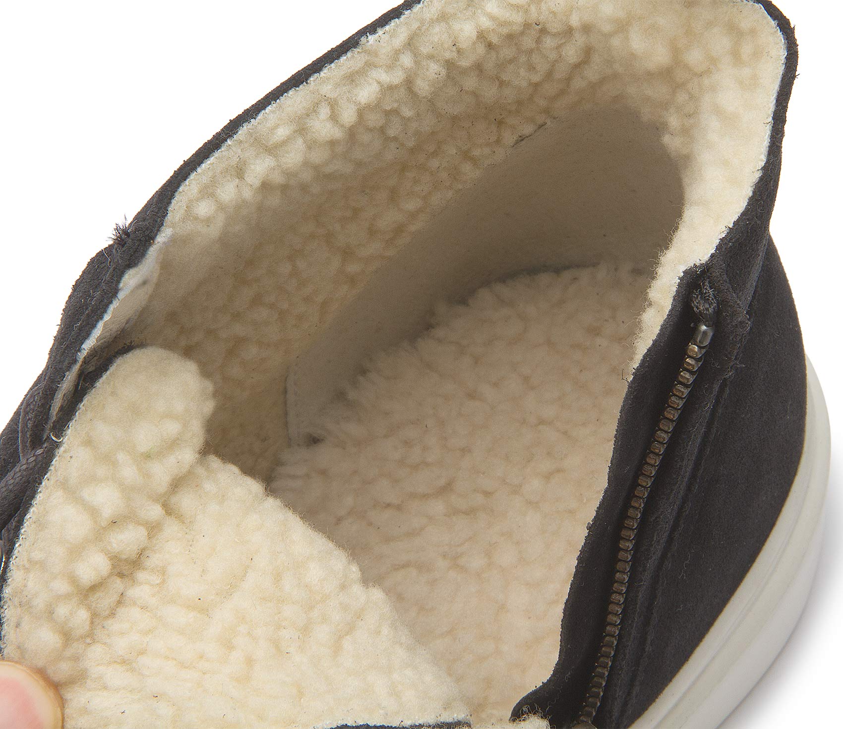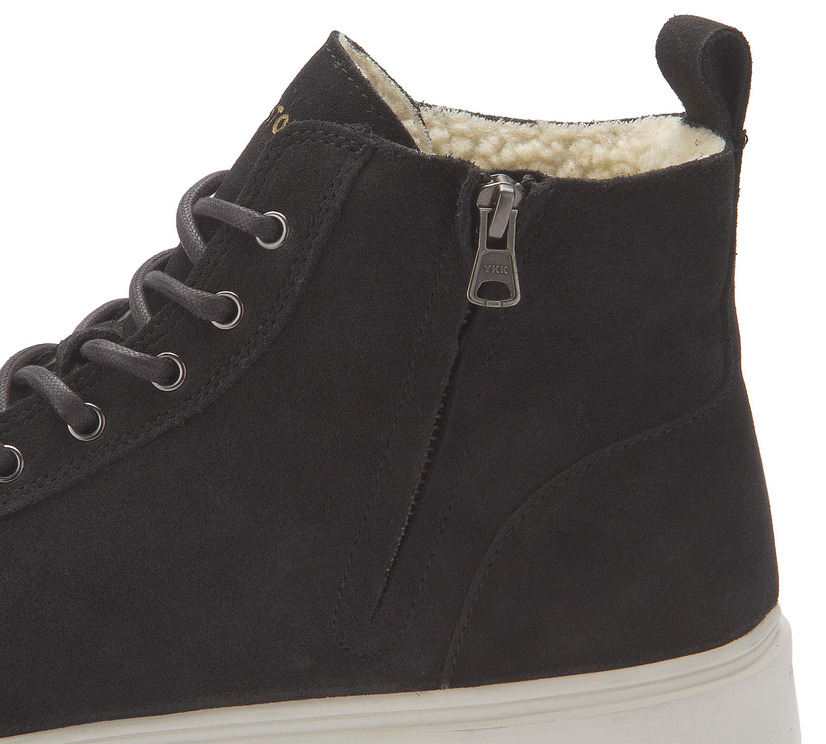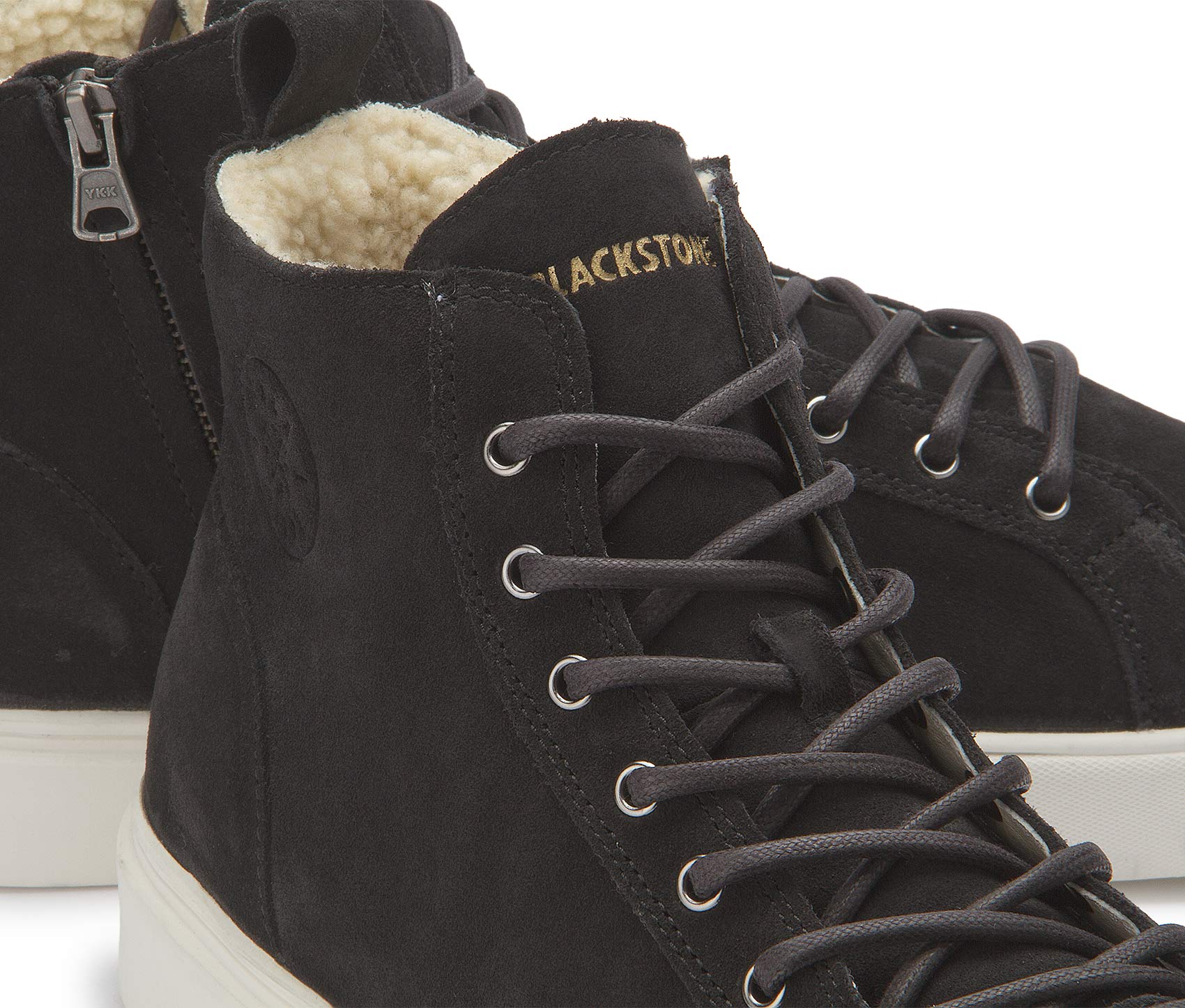 Der stylische Sneaker von Blackstone verbindet zeitloses Design mit höchstem Tragekomfort. Das schwarze Wildleder, kombiniert mit einer warmen Innenfütterung und einer robusten weißen Sohle, macht ihn zum perfekten Begleiter für kühle Tage. Dank seitlichem Reißverschluss lässt er sich bequem an- und ausziehen, ohne auf den sportlich-eleganten Look zu verzichten.