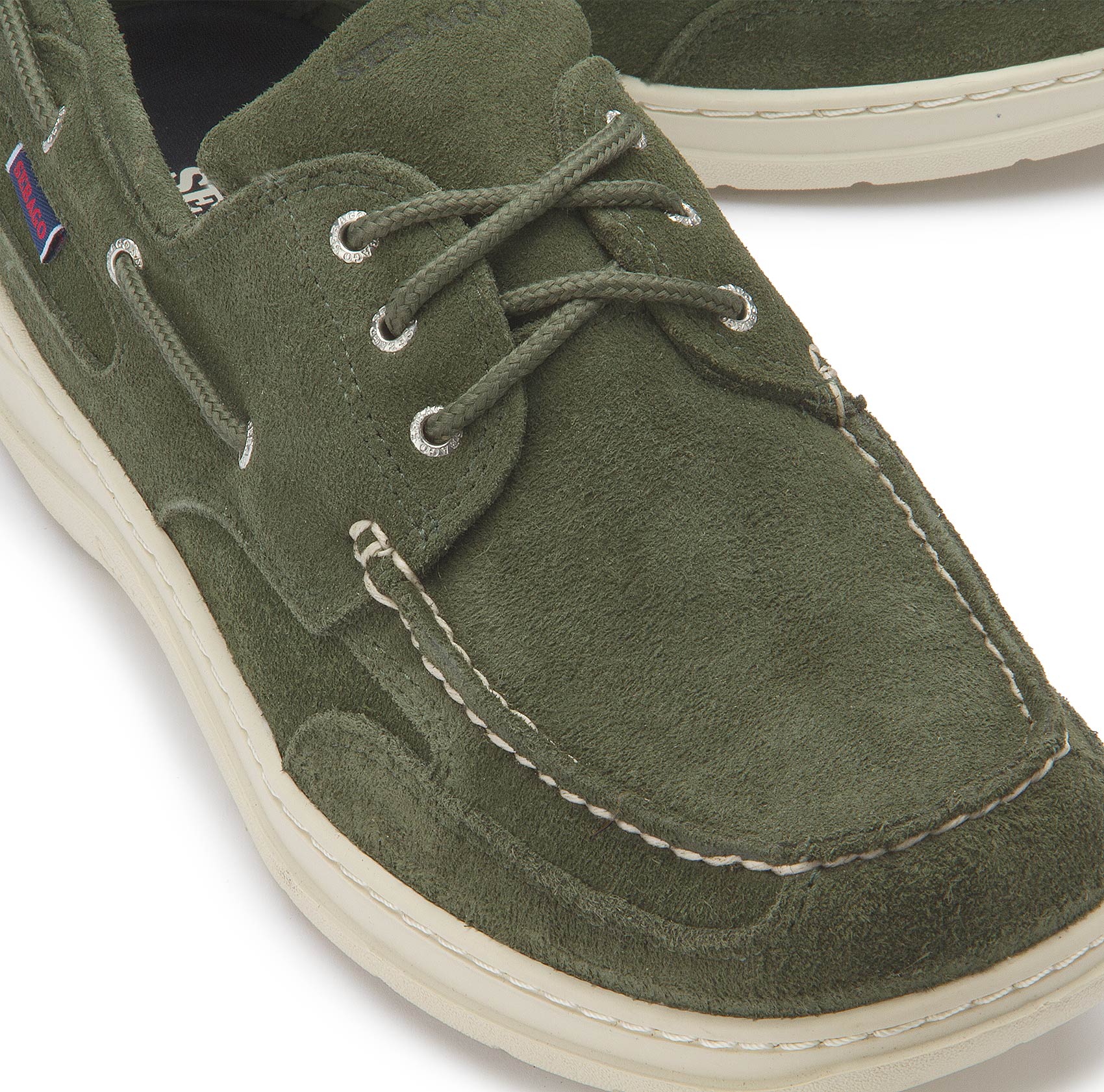 Dieses Modell, das den klassischen Bootsschuh mit einer sportlichen Note neu interpretiert, ist komplett aus Rauleder handgenäht und wird durch ein Schnürsystem mit drei Ösen aufgewertet. Seine 360°-Stretch-Konstruktion sorgt für maximale Funktionalität, ebenso wie die Sebago® Marine Tack™-Sohle, die griffiges EVA mit einem rutschfesten, profilierten Gummidesign kombiniert.