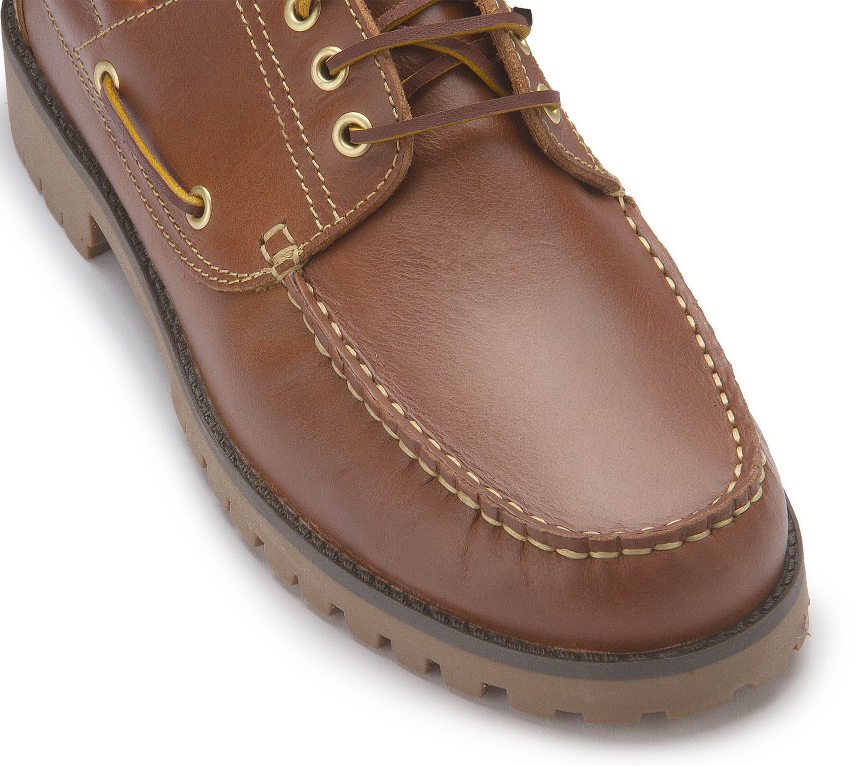 Entdecken Sie den neuen Bootsschuh - stilvoll und funktional. Hergestellt aus hochwertigem Leder mit markanten Zierstichen in der Farbe Cognac. Perfekter Halt dank klassischer Schnürung. Ihr idealer Begleiter für maritime Abenteuer.