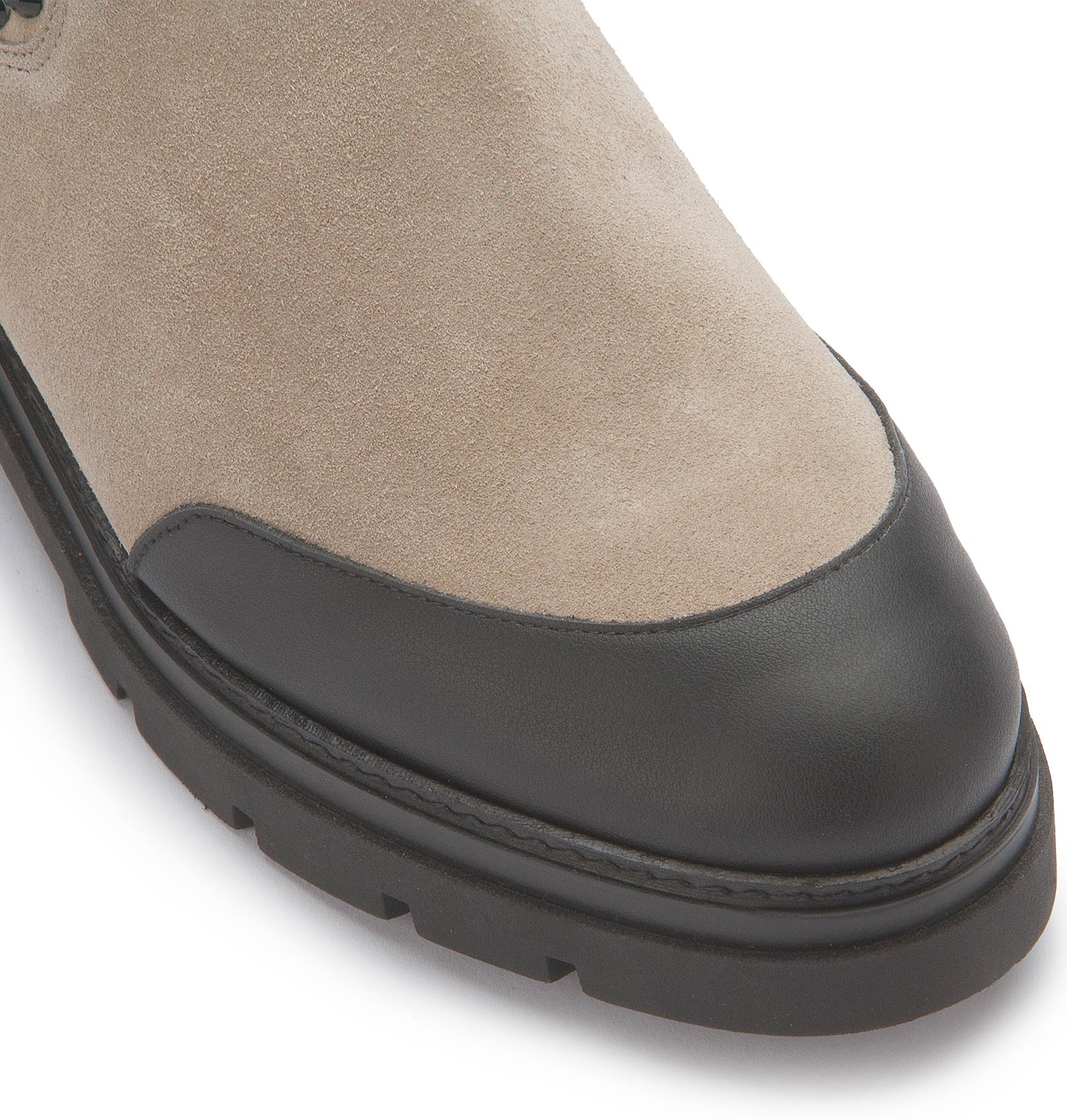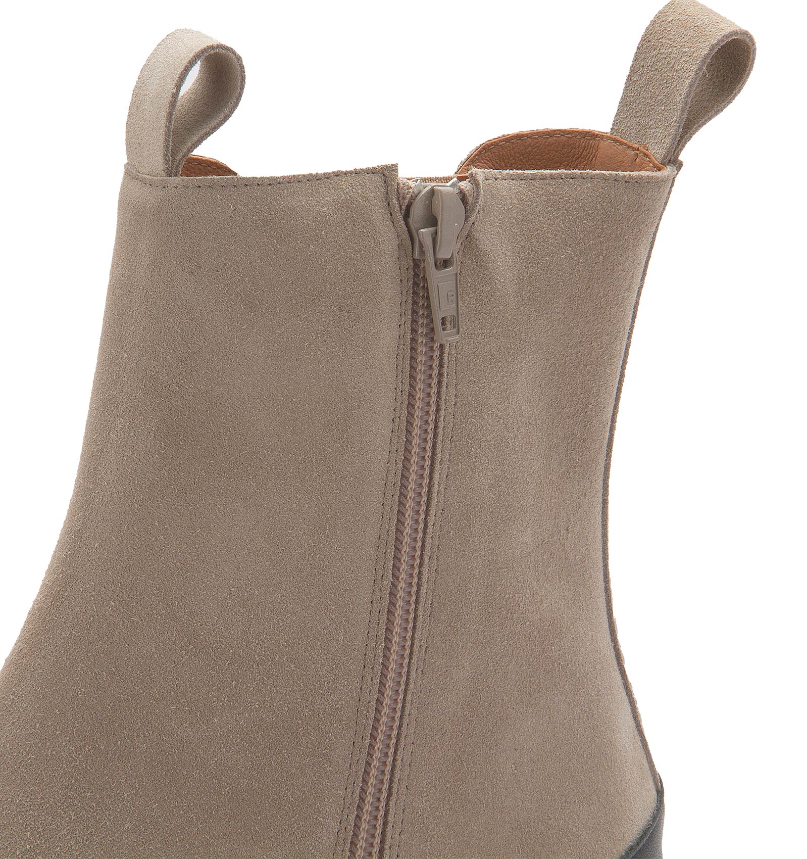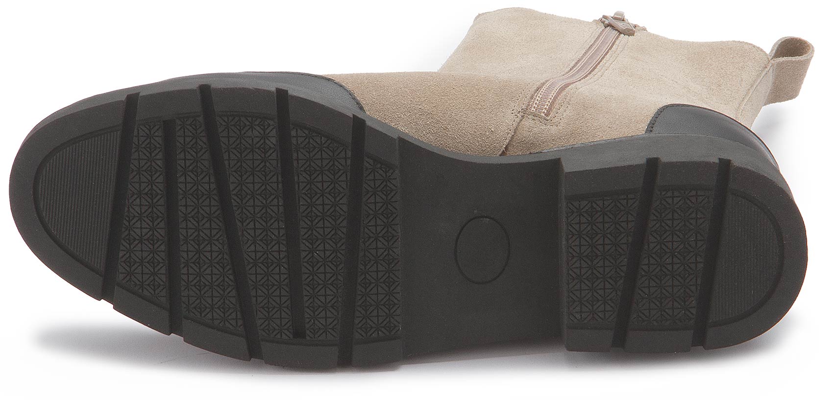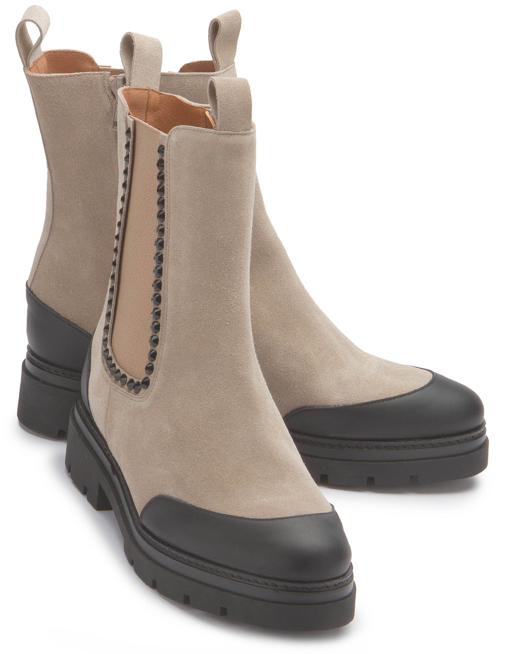 Toller Chelsea Boot von Bariello in feinem Veloursleder. Die schwarze Kappe aus Glattleder gibt dem Boot ein markantes Aussehen. Die Steinchen um den klassischen Gummi-Einsatz runden das Design perfekt ab. Ein wahres Highlight in jedem Schuhschrank!
