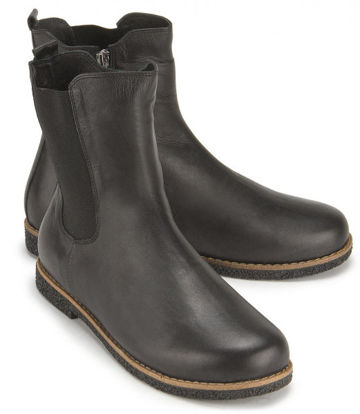 Hier präsentieren wir einen klassischen und modischen Chelsea Boot von Bariello. Der bequeme Sitz wird durch seitliche elastische Einsätze perfektioniert. Das aus schwarzem Nappaleder gefertigte Modell lässt sich ganz unkompliziert zu jedem Outfit kombinieren. Die derbe Profilsohle in tonalen Look macht den Schuh zum Hingucker.