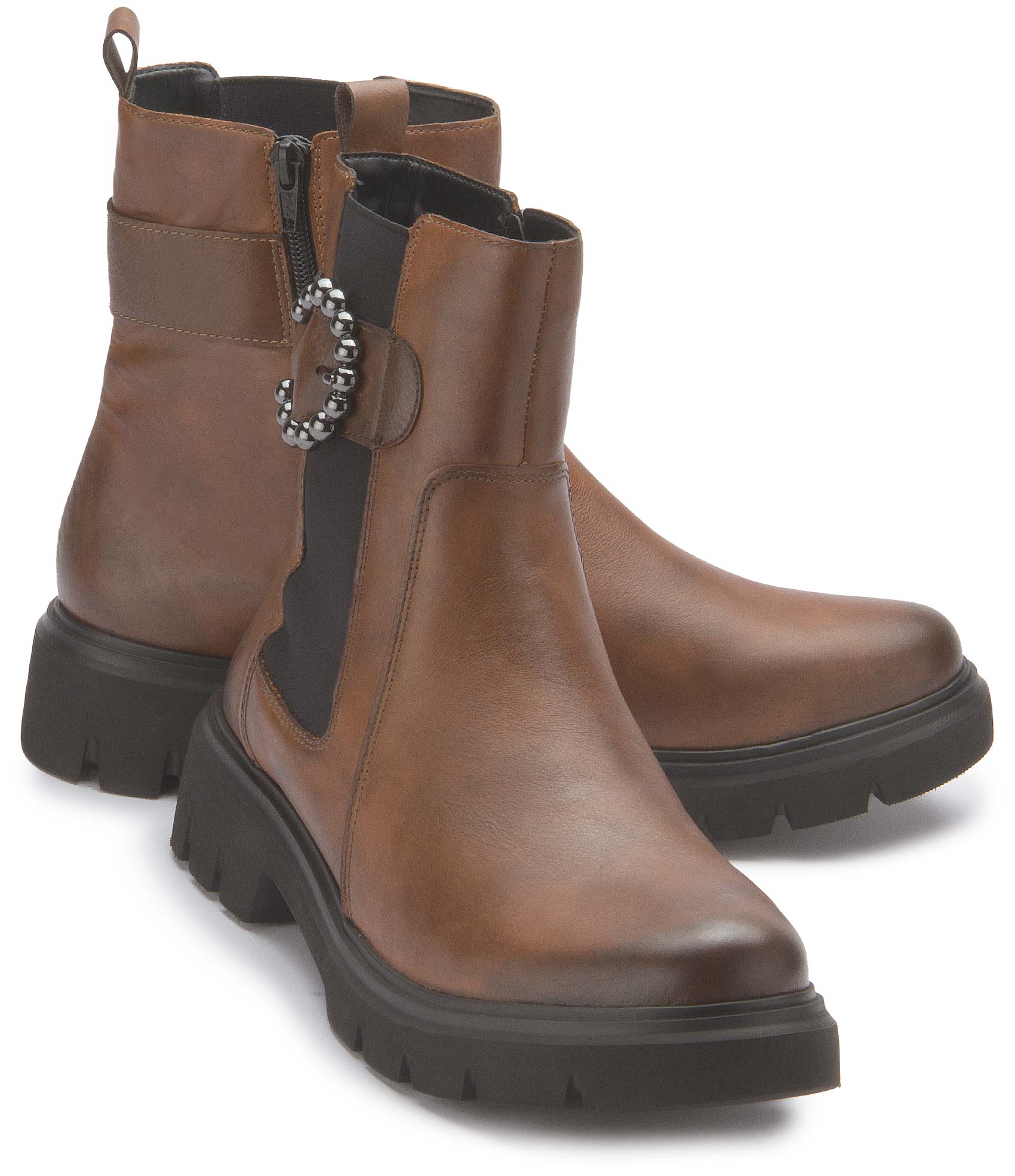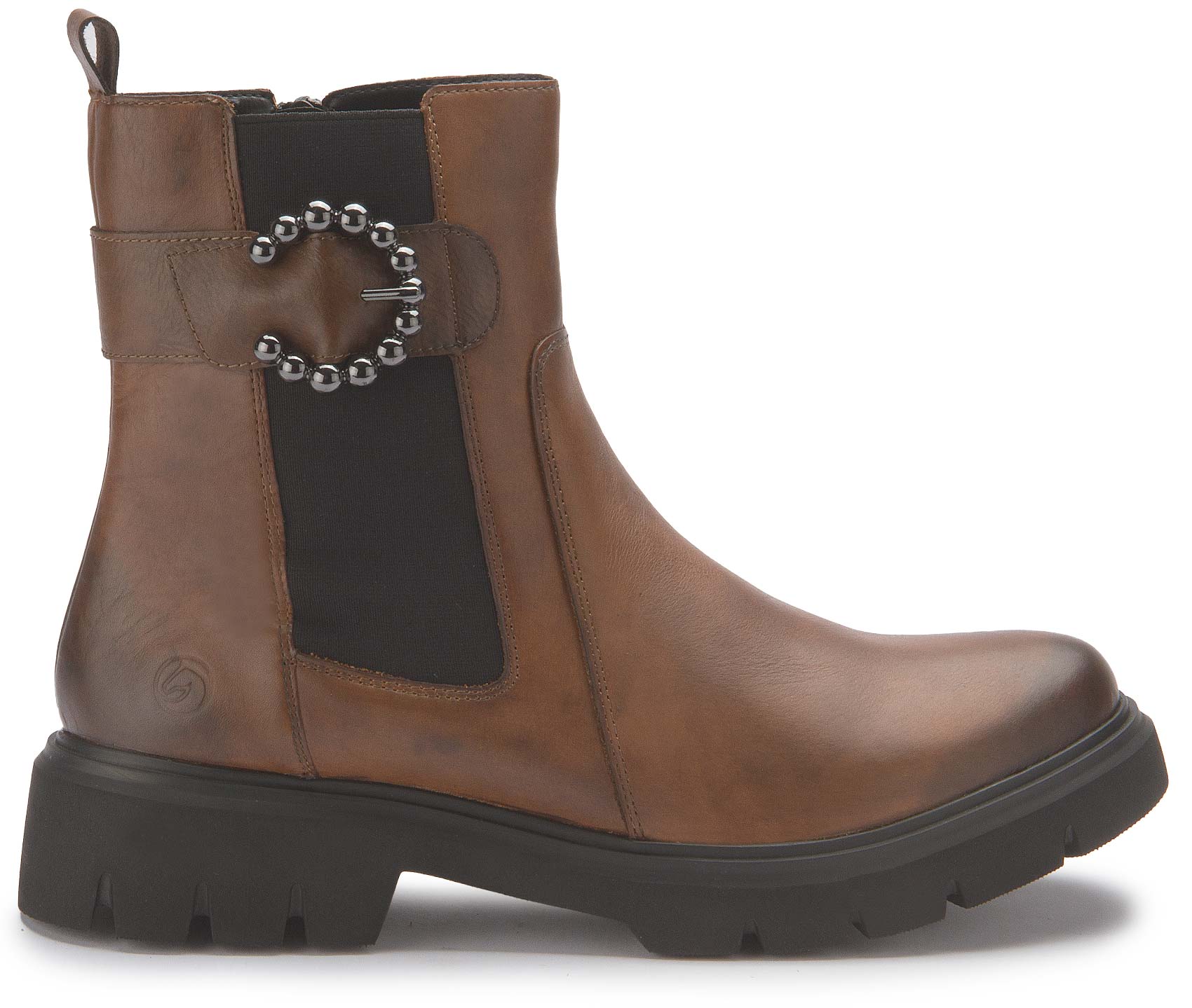 Wie kann Komfort nur so stylisch sein? Diese nussbraunen remonte Chelsea Boots aus Glattleder begleiten dich mit Style und bestem Laufkomfort durch die Saison. Der Reißverschluss zusammen mit dem für Chelsea Boots typischen Elastikeinsatz ermöglicht ein einfaches An- und Ausziehen. Die runde Zierschnalle an der Seite sorgt für das perfekte Finish und einen auffallenden Look. Eine besonders leichte und dämpfende Sohle mit Blockabsatz sowie die gepolsterte und herausnehmbare Einlegesohle sind weitere Argumente für dieses remonte Chelsea Boot. Worauf warten?