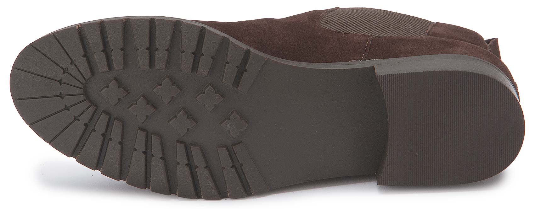 Dieser Chelsea-Boot von Bariello in edlem Braun ist der perfekte Begleiter für den Herbst. Aus hochwertigem Rauleder gefertigt, vereint er stilvolles Design mit hervorragendem Tragekomfort. Der seitliche Stretcheinsatz sorgt für eine perfekte Passform und erleichtert das An- und Ausziehen. Mit seinem stabilen Blockabsatz und der dezenten Farbgebung ergänzt dieser Boot jedes Herbstoutfit auf elegante Weise.
