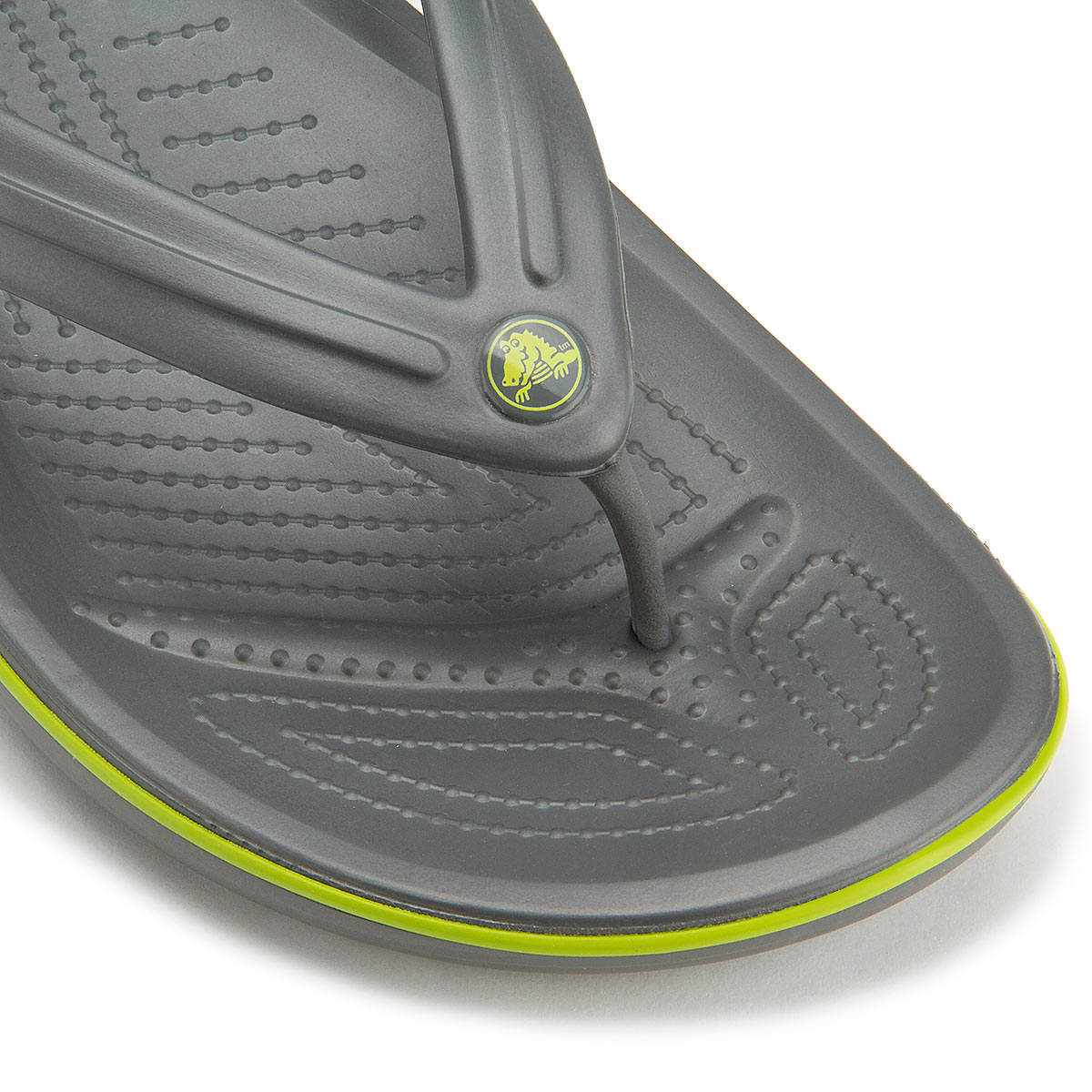 Für einen Wellnesstag in der Therme, dem Schwimmbad oder einem Wellnesstempel ist dieser Zehentrenner für Crocs ein toller Begleiter. Hergestellt wird der Badeschuh aus dem für die Marke typischen und luftigem Croslite™ Material. Auf dem Fußbett sind weiche Noppen angebracht, die ein angenehmes Gefühl am Fuß unterstützen. Er überzeugt ebenso mit der modisch gewählten Farbkombination. Auf den Riemen ist das Markenlogo angebracht und somit auch ein sichtliches Highlight. Die Laufsohle ist aus Synthetik. Für einen entspannten Tag am See, in der Therme oder einer Wellnessoase ist der Zehentrenner gut geeignet. Auf Grund seiner Größe kann er gut in einer Tasche verstaut werden. Für entspannte und bequeme Tage ist dieser Zehentrenner von Crocs.
