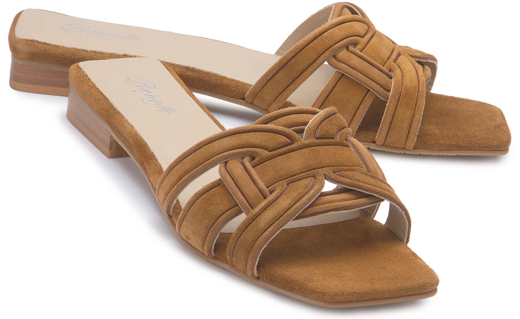 Diese Sandale von Bariello Milano überzeugt mit einem stilvollen Design aus weichem Rauleder und kunstvoll verflochtenen Riemen. Der dezente Absatz sorgt für angenehmen Tragekomfort und unterstreicht die lässige Eleganz des Modells. Ein vielseitiger Schuh, der sommerliche Looks modern ergänzt.