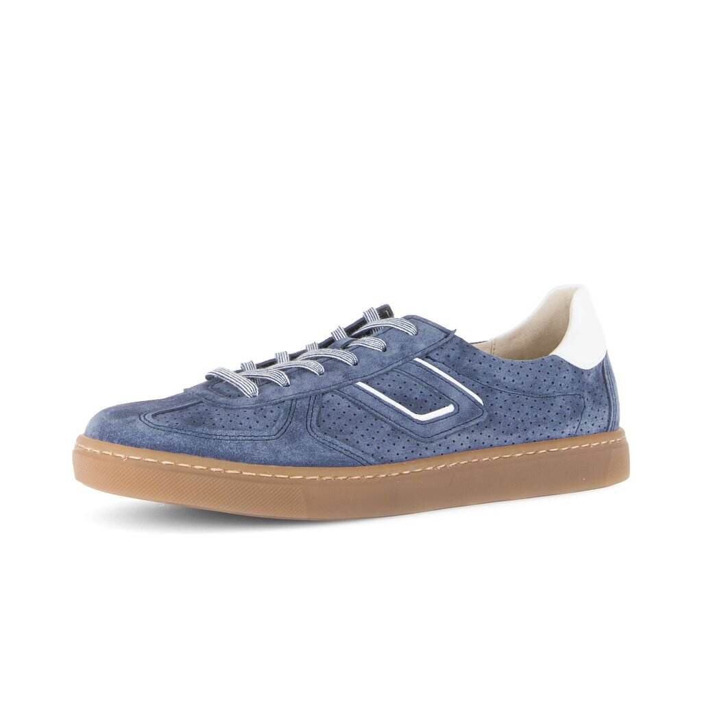 Dieser lässige Sneaker von Gabor besticht durch feines Rauleder in Blau mit perforierten Details für eine moderne Optik. Die bequeme Passform und die strapazierfähige Laufsohle sorgen für angenehmen Tragekomfort im Alltag. Ein vielseitiger Schuh, der sportliche Looks stilvoll abrundet.