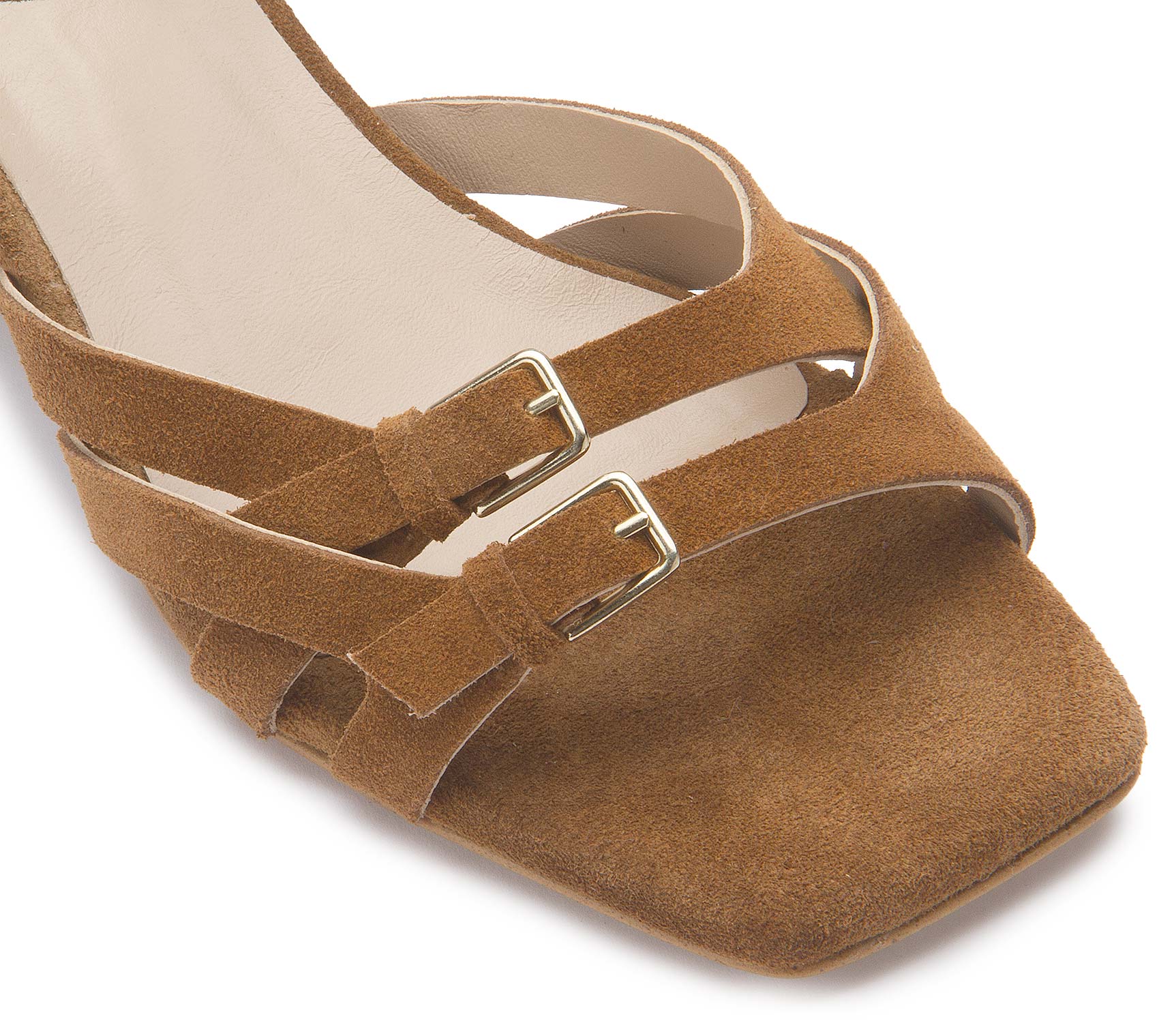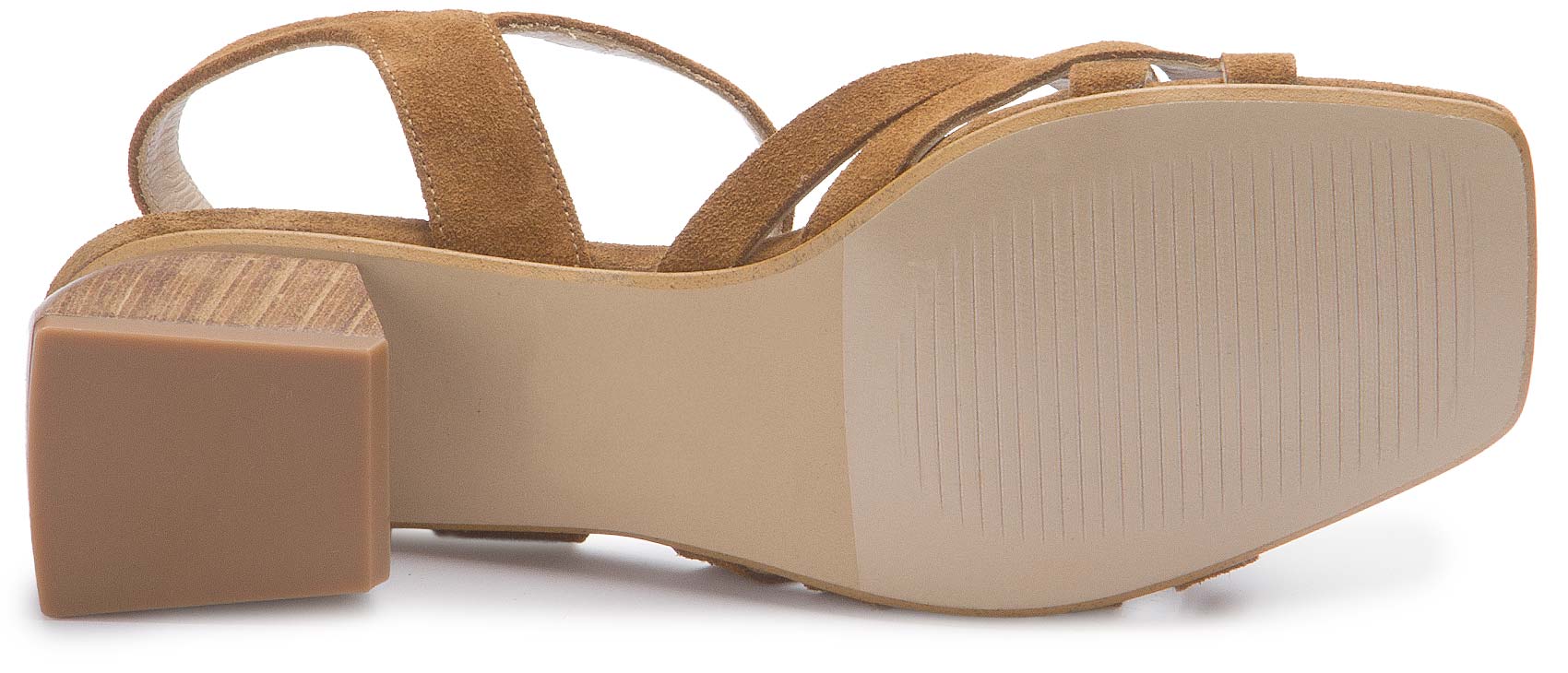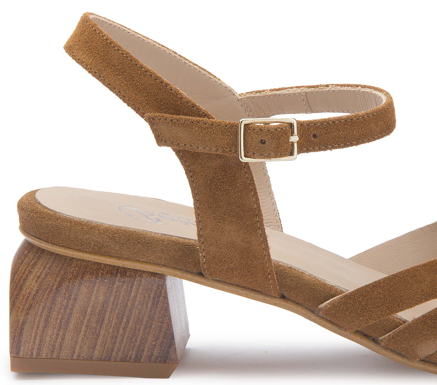 Die Sandalette von Bariello Milano überzeugt mit einem stilvollen Design aus weichem Rauleder in warmem Braunton. Verstellbare Riemen mit feinen Schnallen sorgen für eine individuelle Passform, während der markante Absatz in Holzoptik einen modernen Akzent setzt. Ein eleganter Begleiter für vielseitige Sommer-Looks.
