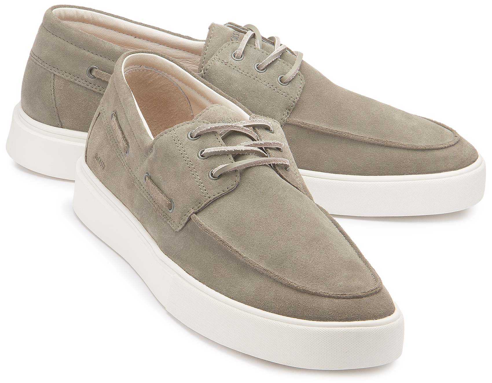 Der lässige Schnürschuh von Blackstone überzeugt mit hochwertigem Rauleder in zeitlosem Beige. Die markante, helle Sohle sorgt für modernen Komfort und einen entspannten Look. Perfekt für stilvolle Casual-Outfits im Alltag.