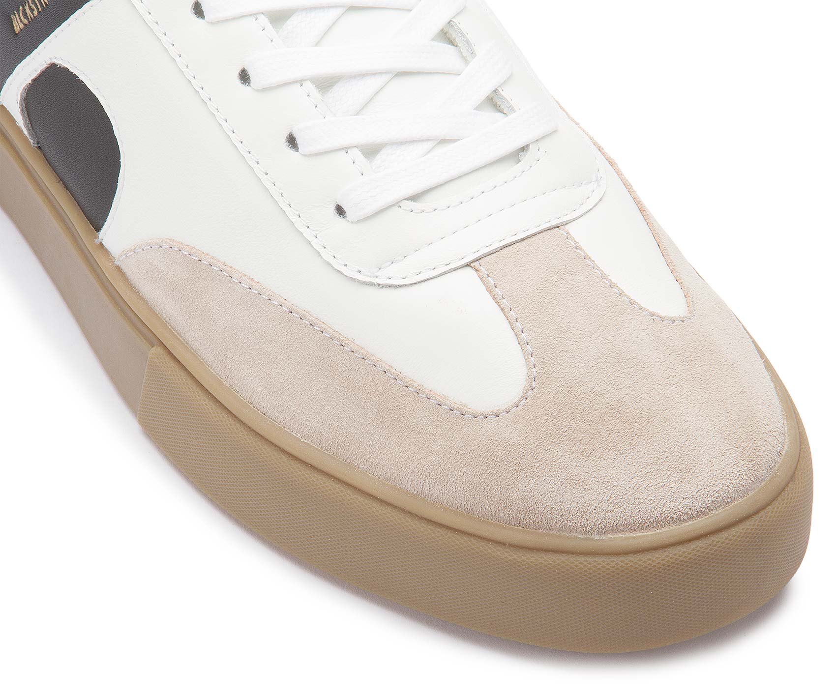 Der moderne Sneaker von Blackstone überzeugt mit hochwertigem Ledermix und markanten Kontrastdetails. Die robuste Sohle sorgt für angenehmen Tragekomfort und einen lässigen Look. Ein vielseitiger Begleiter für stilvolle Casual-Outfits.
