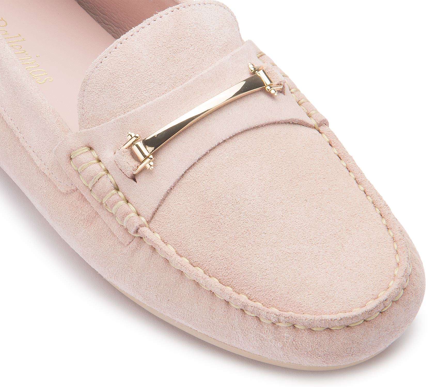 Dieser stilvolle Loafer von Pretty Ballerinas überzeugt mit seinem feinen Rauleder in zartem Rosé und einer eleganten, goldfarbenen Spange. Die klassische Mokassin-Naht und die flexible Sohle sorgen für eine perfekte Kombination aus Komfort und zeitloser Eleganz. Ein vielseitiger Begleiter, der sowohl feminine als auch moderne Looks stilvoll ergänzt.