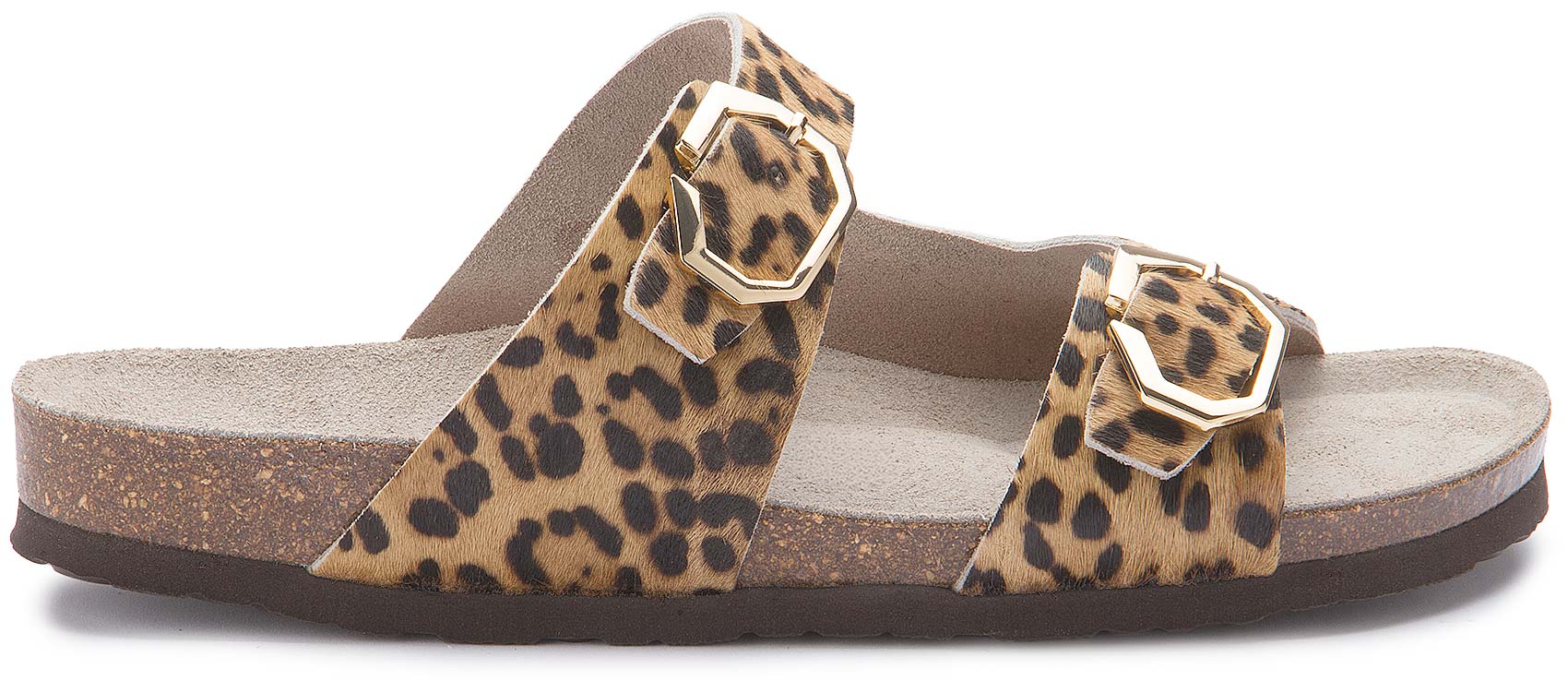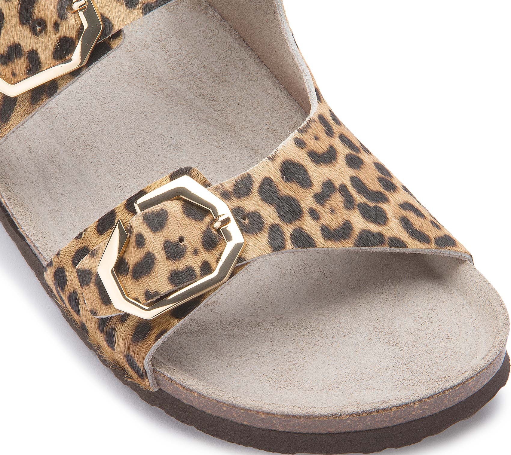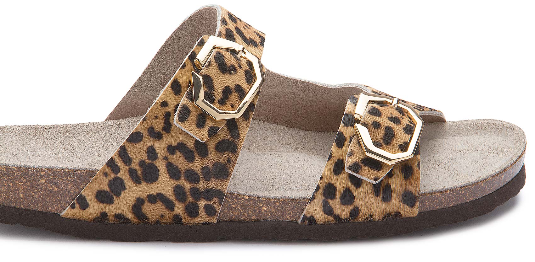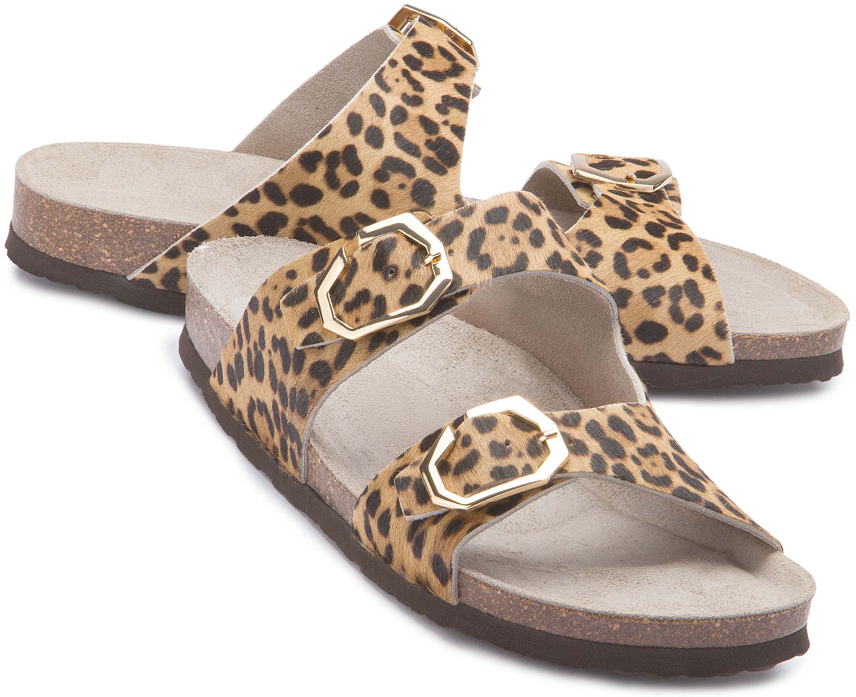 Die modischen Pantoletten überzeugen mit trendiger Felloptik und auffälliger Schnalle als stilvollem Blickfang. Das anatomisch geformte Fußbett sorgt für hohen Tragekomfort, während die flexible Sohle ein angenehmes Laufgefühl bietet. Perfekt für sommerliche Looks mit besonderem Akzent.