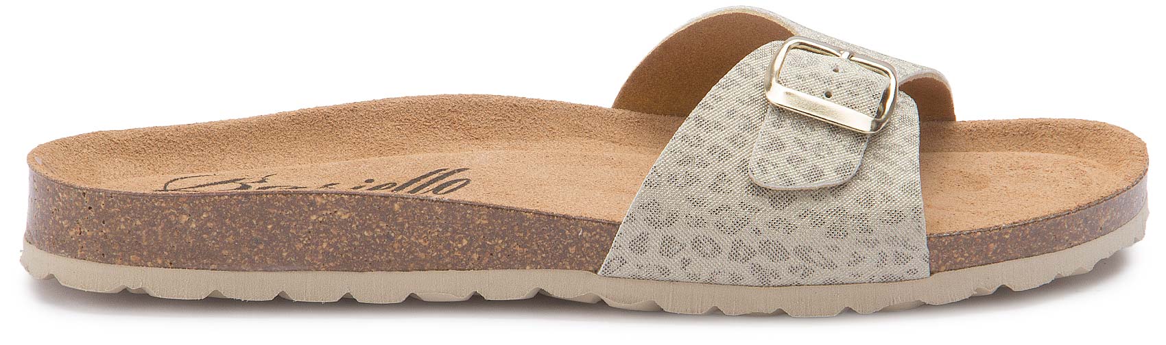 Bequem und stilvoll zugleich: Diese Pantolette von Bariello überzeugt mit einem dezent gemusterten Obermaterial und einer verstellbaren Schnalle für individuellen Sitz. Das anatomisch geformte Fußbett sorgt für angenehmen Komfort, während die leichte Sohle ein entspanntes Laufgefühl unterstützt. Ideal für unkomplizierte, sommerliche Looks.