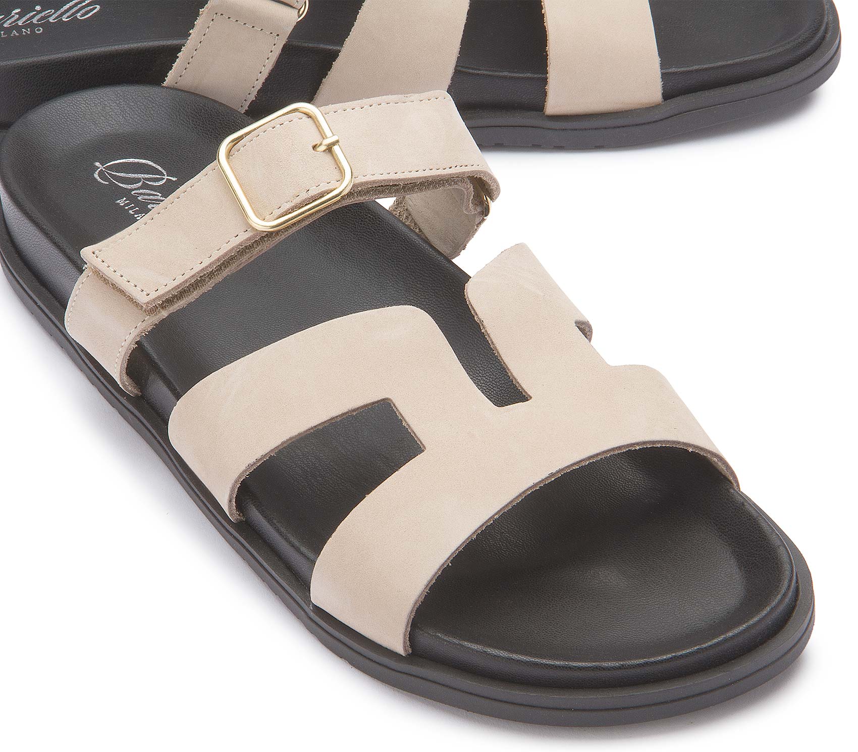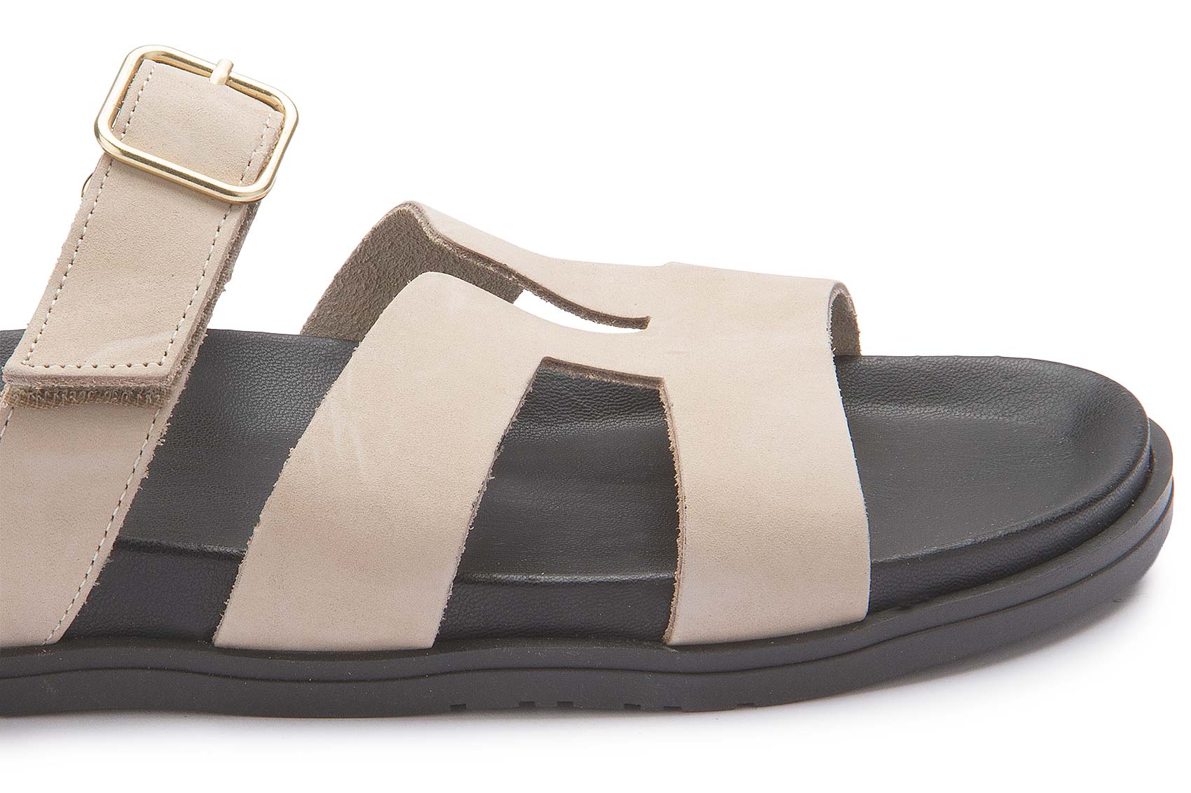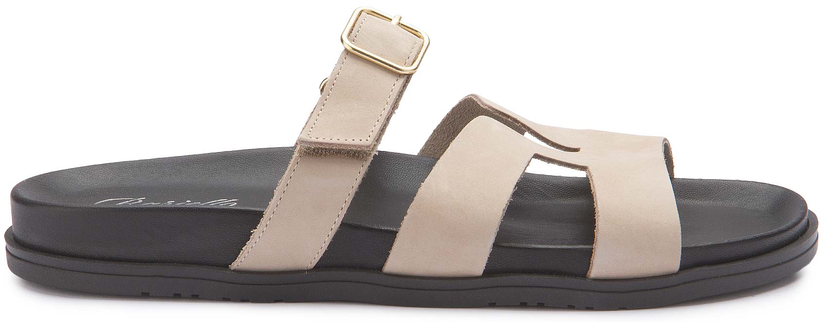 Diese Sandale überzeugt mit klarer Formgebung und hochwertigem Leder für einen zeitlosen Look. Die Kombination aus breiten Riemen und verstellbarer Schnalle sorgt für optimalen Halt und individuellen Komfort. Die leichte Sohle macht sie zum idealen Begleiter für warme Tage und entspannte Outfits.
