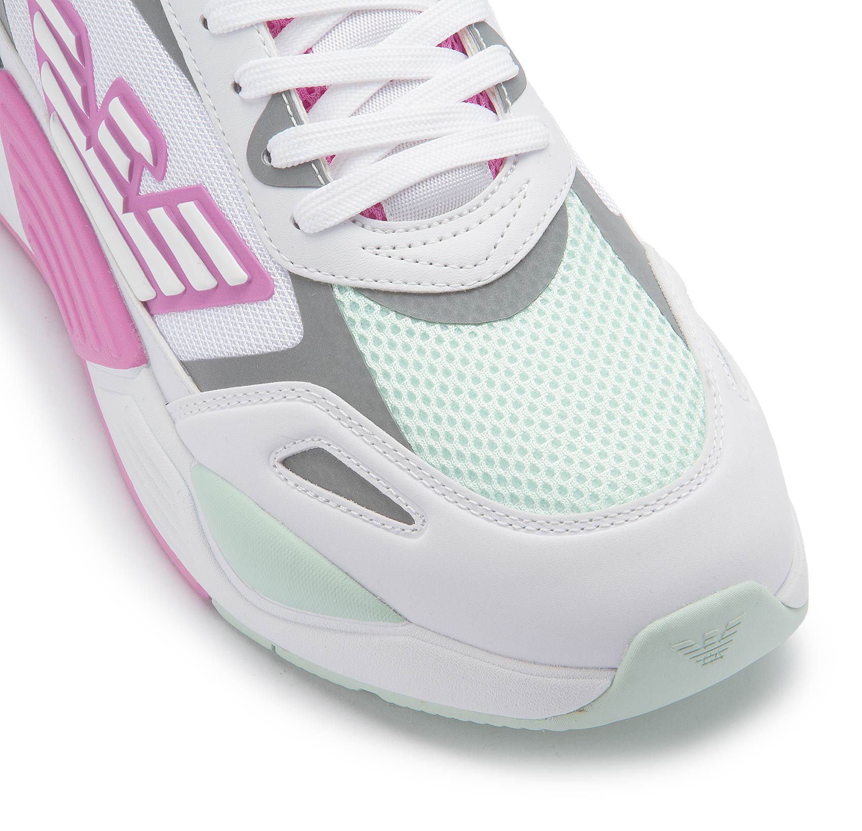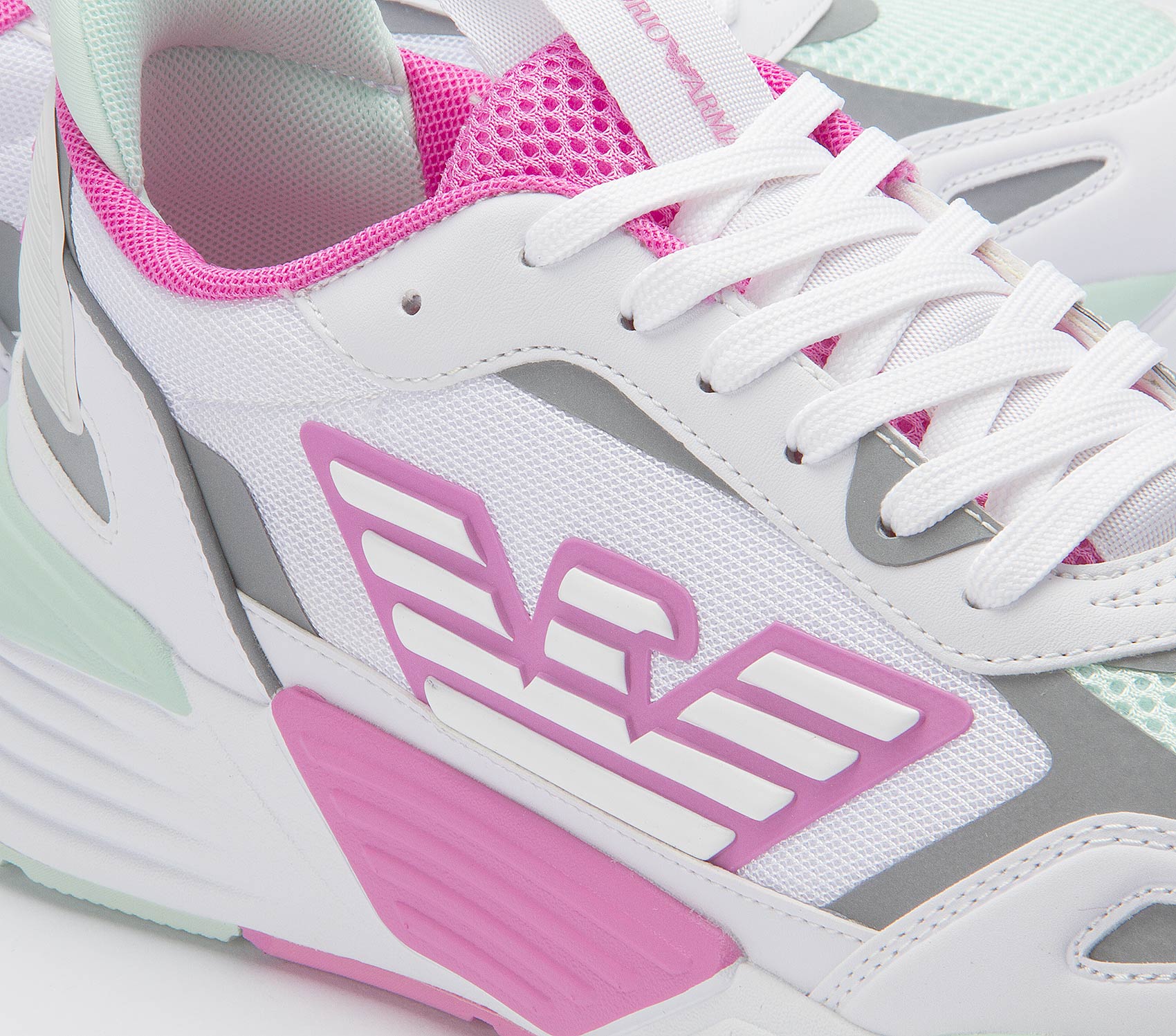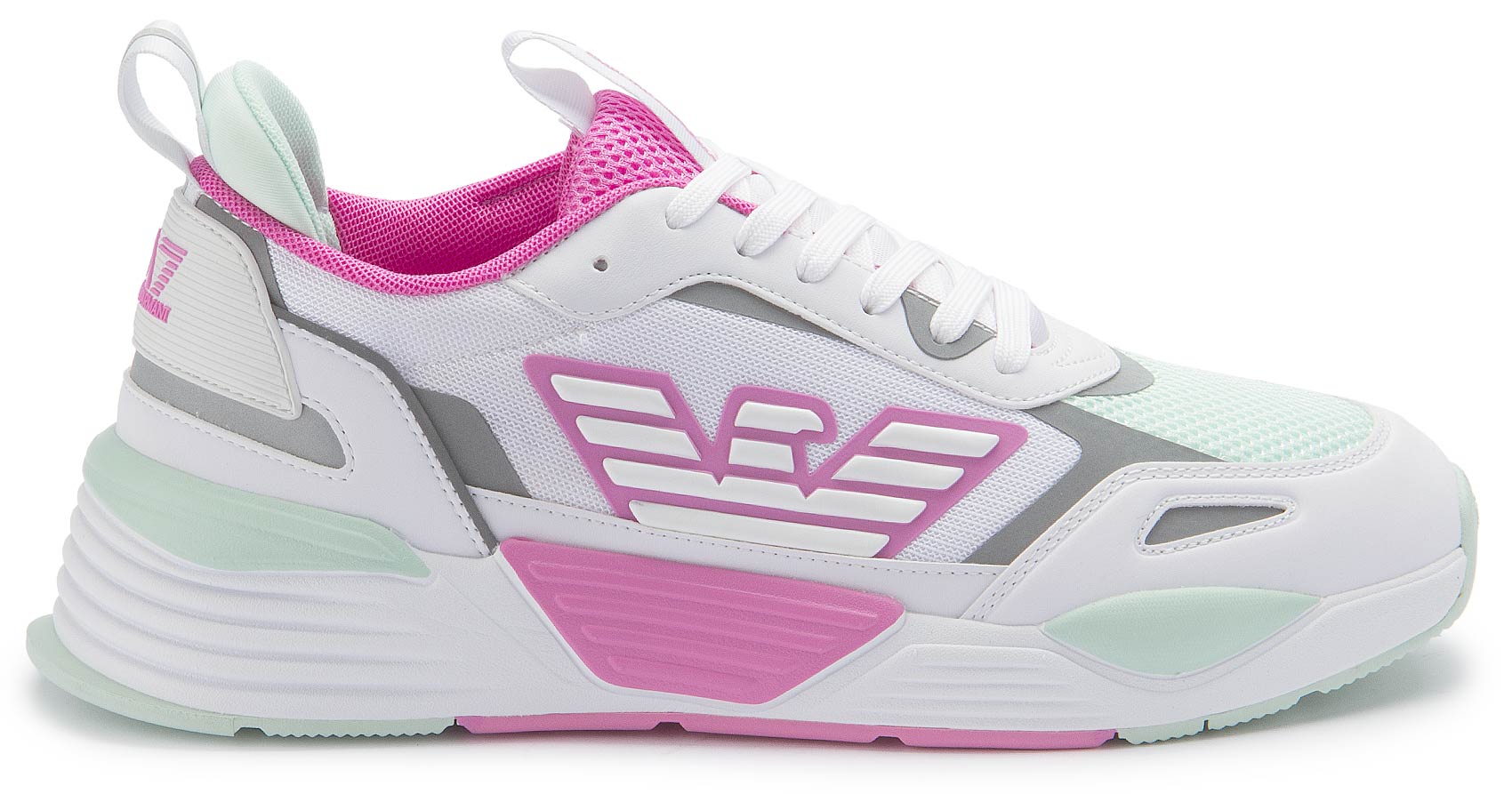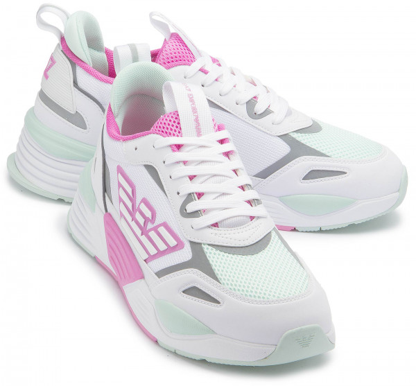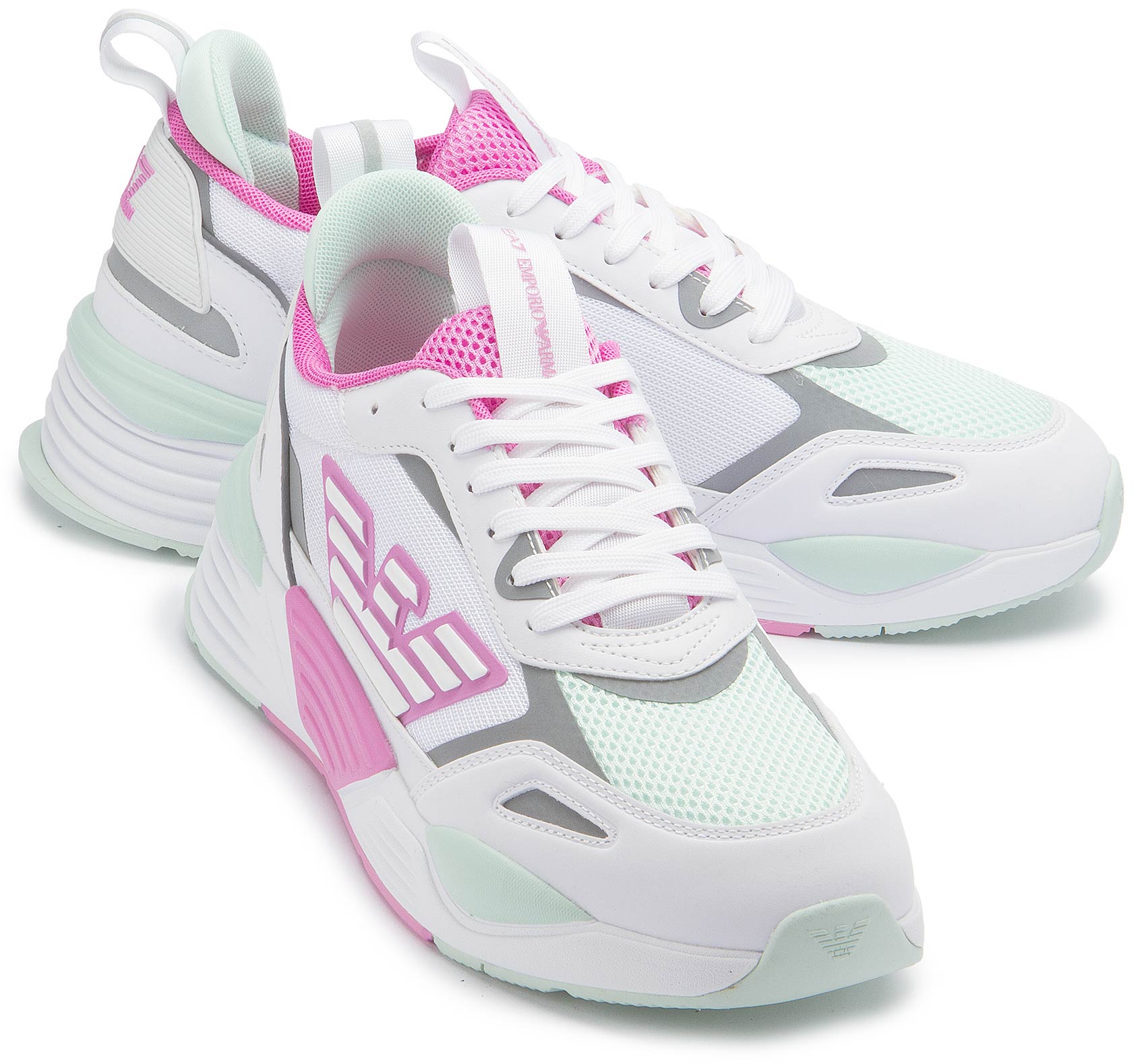 Highlight! Exklusiver Sneaker von Emporio ARMANI im Jogger-Style mit kräftigen Farben und großflächigen Details. Mesh-Einsätze, poppige Farben und das berühmte Adler-Logo machen sie unverkennbar. Sport- und Freizeit-Outfits bekommen hier einen dynamischen Touch.
