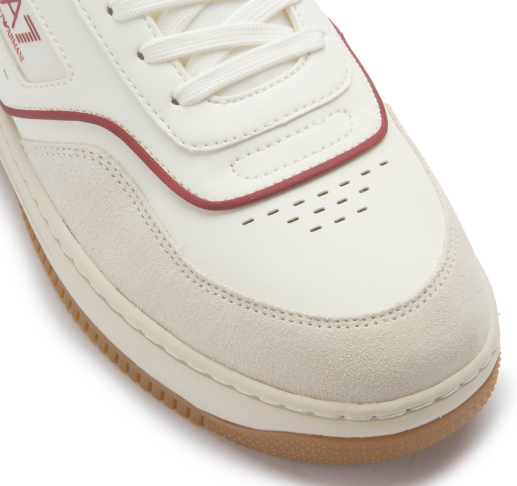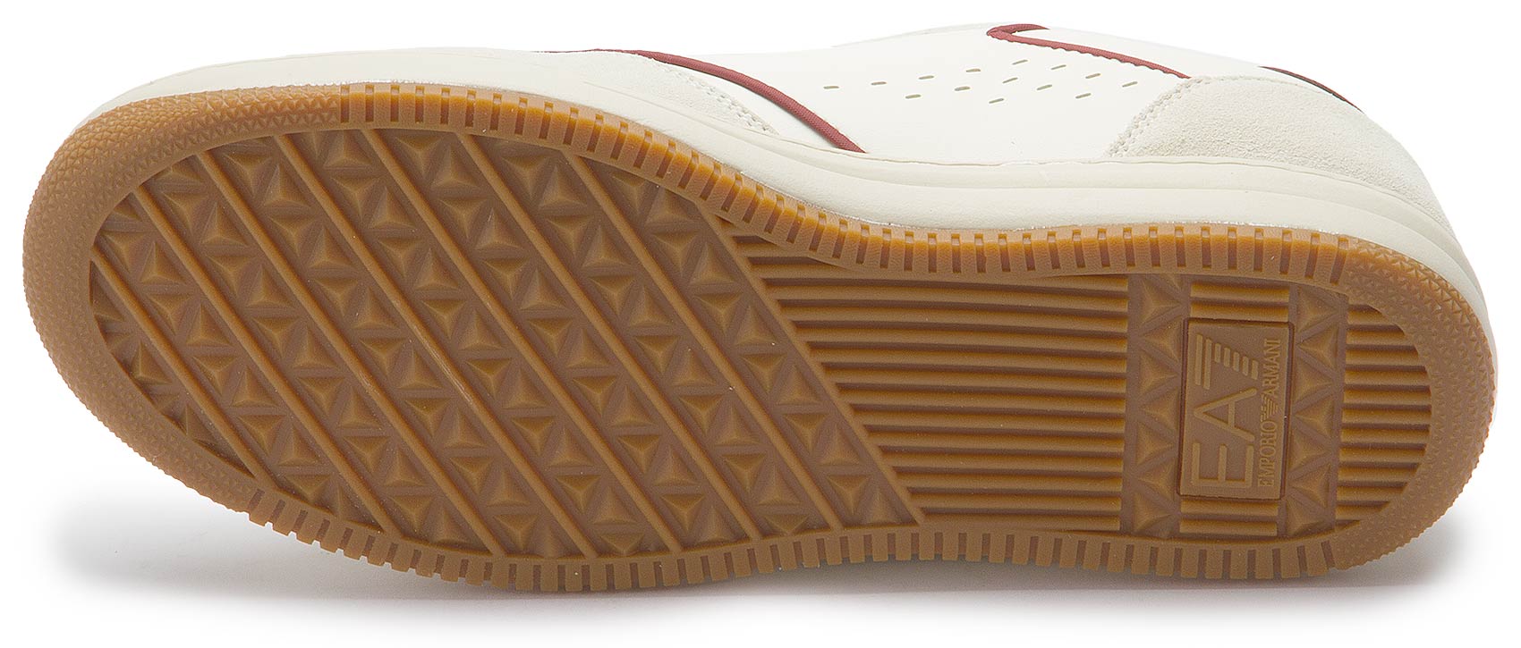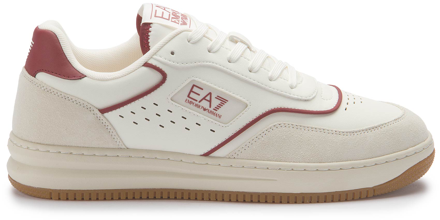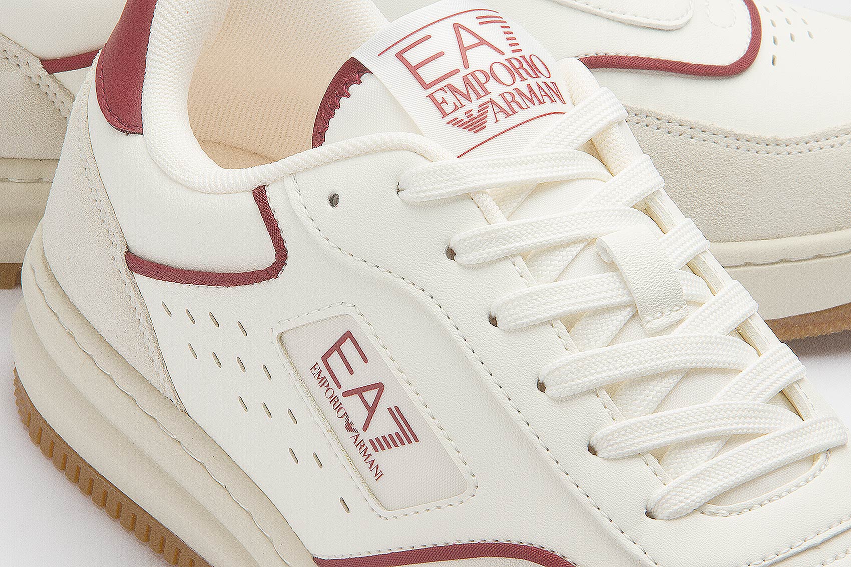 Trend und Komfort vereinen diese coolen Sneaker aus weißem Leder und Retro-Sohle. Abgerundet wird das Design durch die rote Paspelierung und dem klassischen EA7 Logo. Die Schuhe perfektionieren jedes Outfit und ein großer Auftritt ist garantiert.