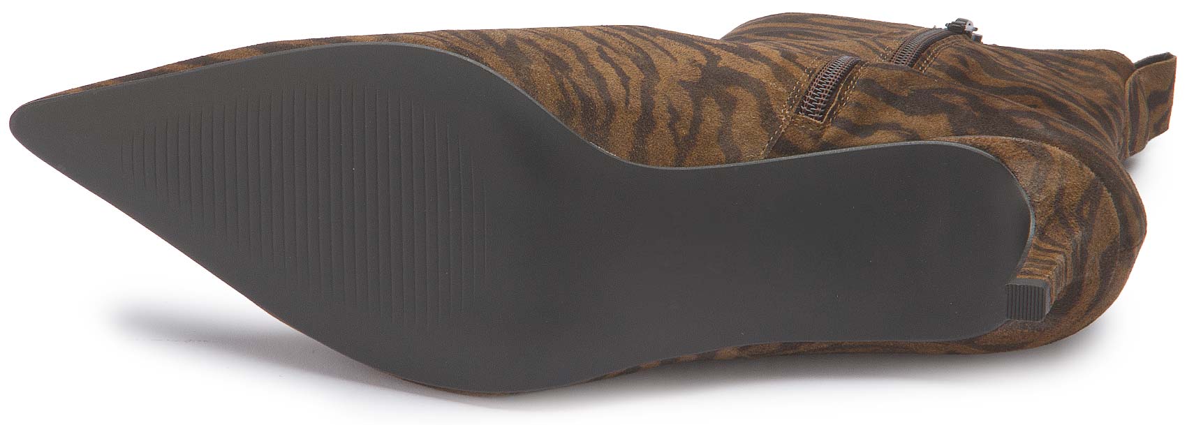 These elegant ankle boots from Bariello impress with their eye-catching animal print in warm brown tones and a stylish, pointed cut. The soft suede and narrow heel give the shoe a feminine, sophisticated look - perfect for fashionable everyday or evening outfits.