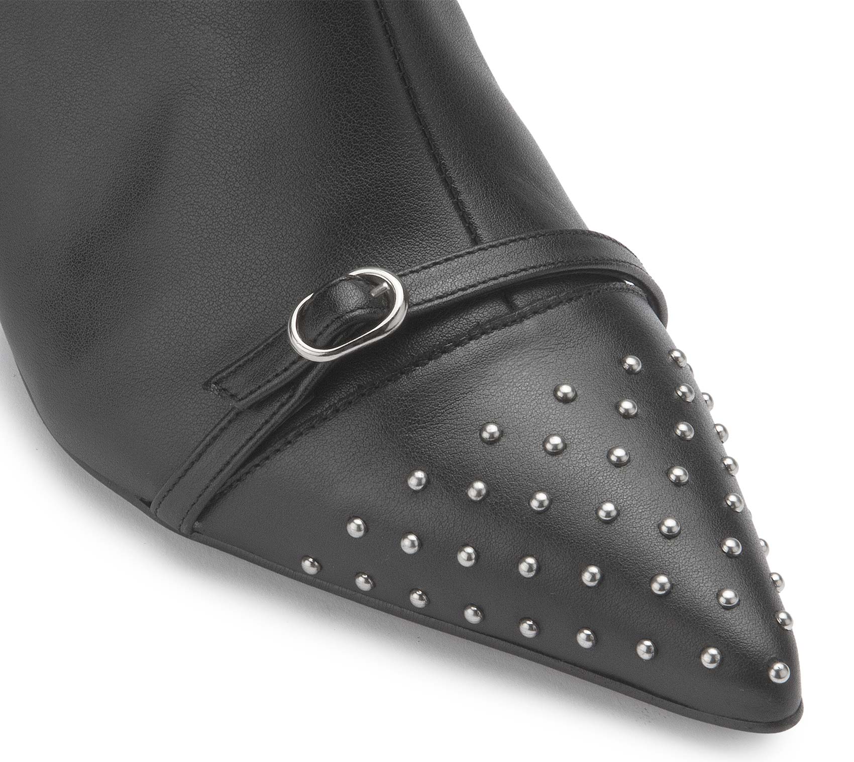 This elegant ankle boot from Bariello combines style and sophistication. The smooth black leather with studded trim and fine metal elements give the pointed design a modern, sophisticated look. The narrow heel creates a feminine silhouette - perfect for elegant appearances with a touch of rock chic.