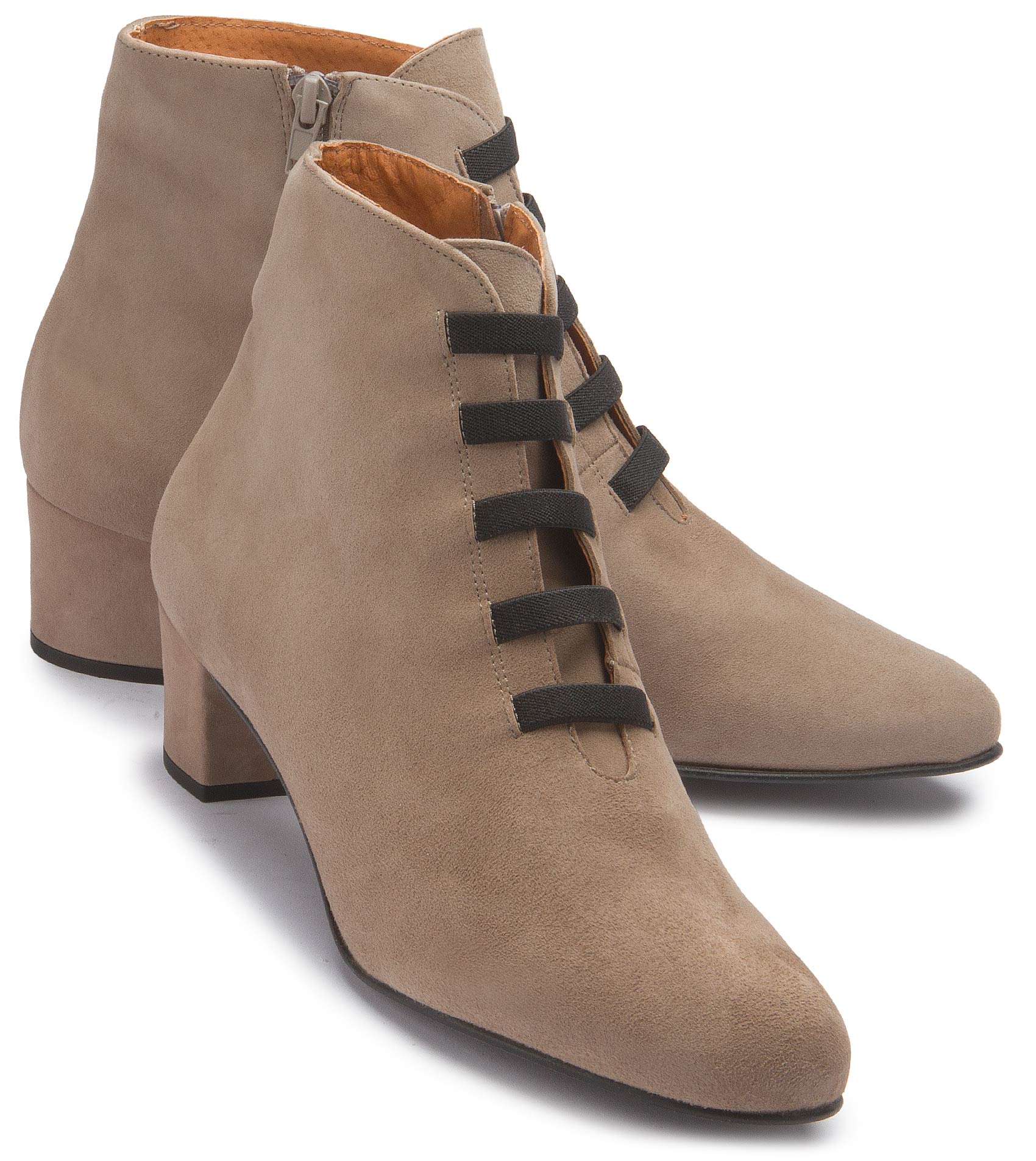 These elegant ankle boots from Bariello impress with their high-quality suede leather in elegant beige. The comfortable block heel and decorative lacing with a side zipper combine stylish design with optimum comfort. A perfect companion for elegant outfits and special occasions.