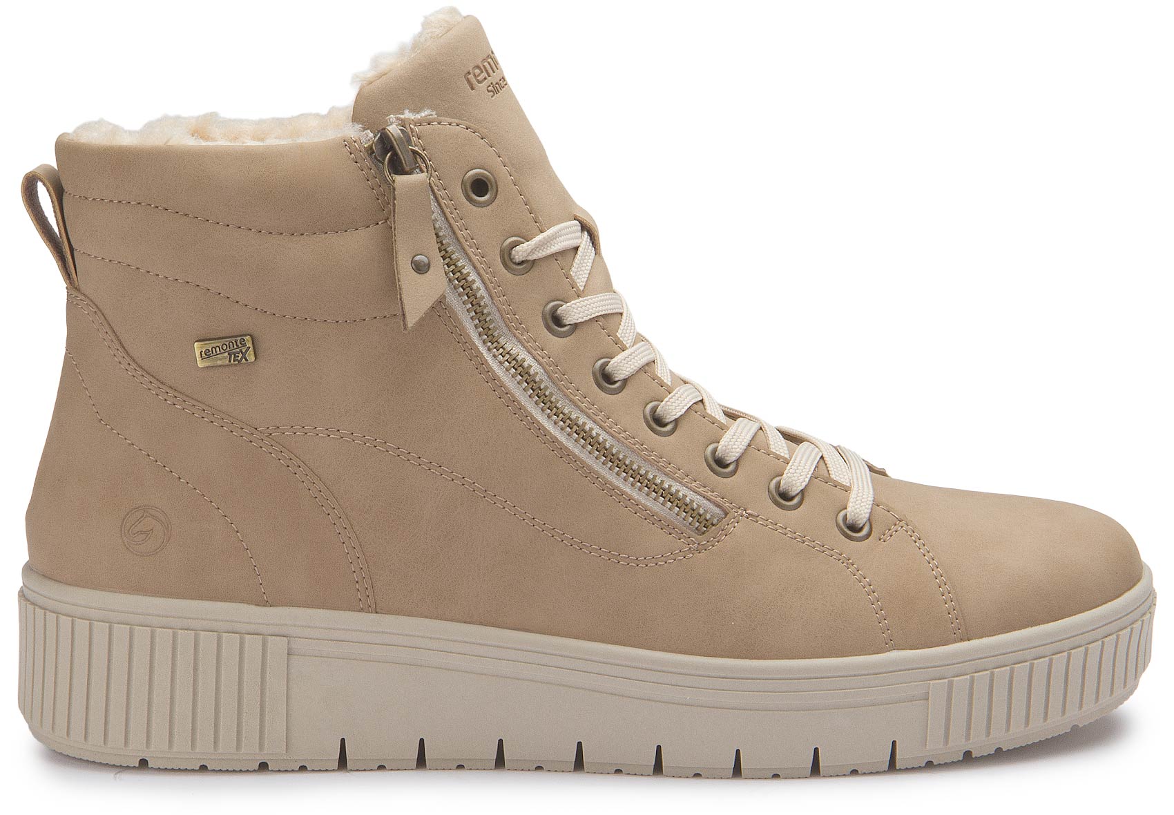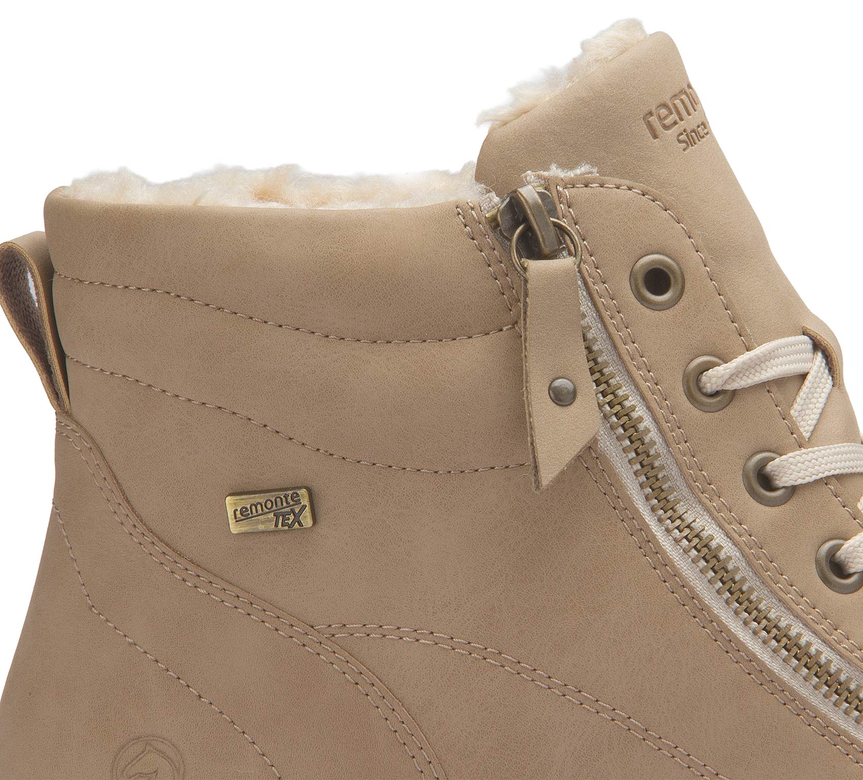 Cool style with maximum comfort! These super comfortable remonte ankle boots made of suede in beige are an absolute highlight this winter. The clever combination of lacing and zipper guarantees a perfect fit and ideal support. The grippy and lightweight sole, together with the padded and removable insole, ensures pleasantly cushioned steps. Thanks to the comfort width, there is plenty of room in the forefoot area. The fluffy warm lining provides long-lasting protection against the cold and the water-repellent upper material protects against moisture and wind. Comfort meets style!