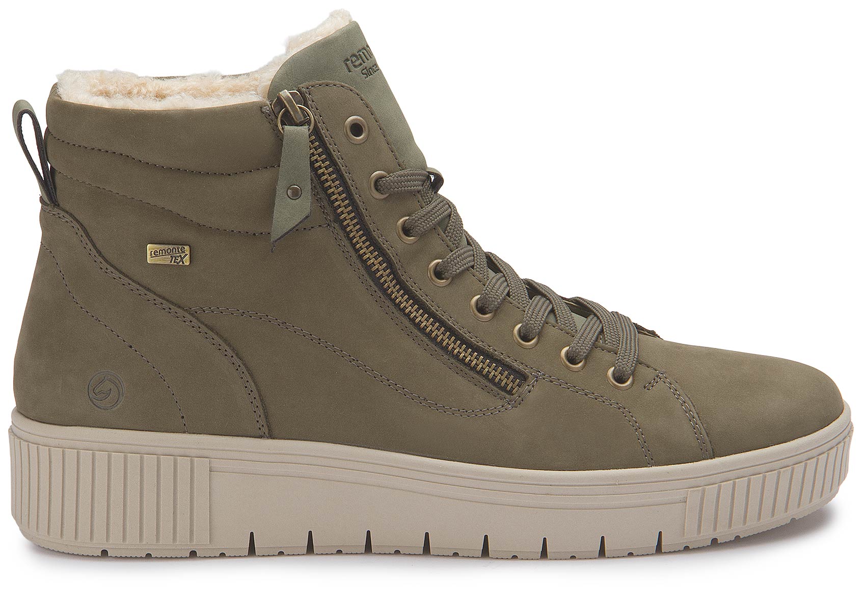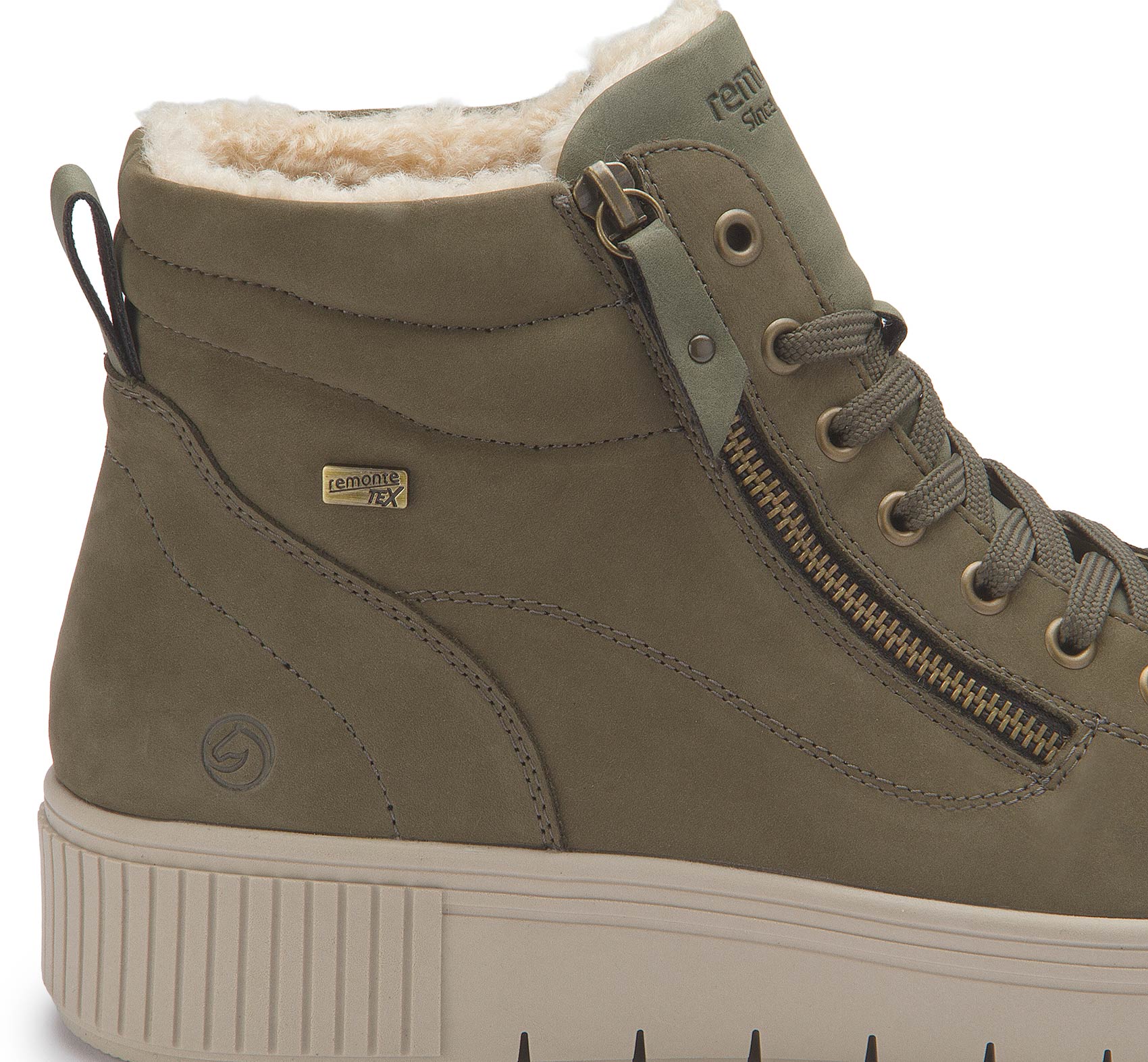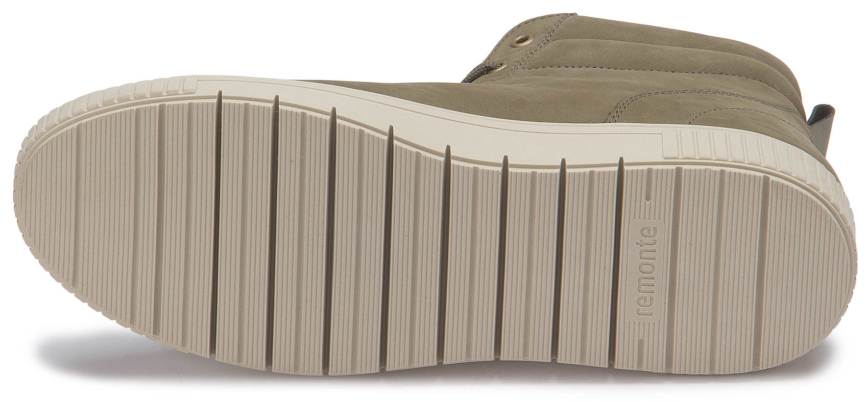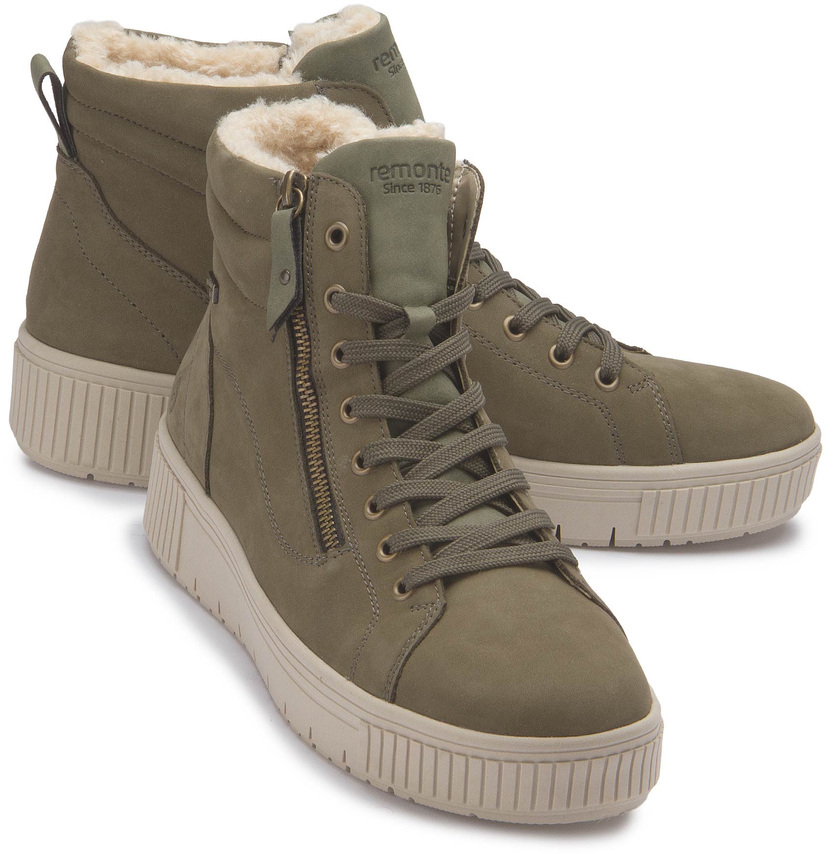 Cool style with maximum comfort! These super comfortable remonte ankle boots made of suede in green are an absolute highlight this winter. The clever combination of lacing and zipper guarantees a perfect fit and ideal support. The grippy and lightweight sole, together with the padded and removable insole, ensures pleasantly cushioned steps. Thanks to the comfort width, there is plenty of room in the forefoot area. The fluffy warm lining provides long-lasting protection against the cold and the water-repellent upper material protects against moisture and wind. Comfort meets style!