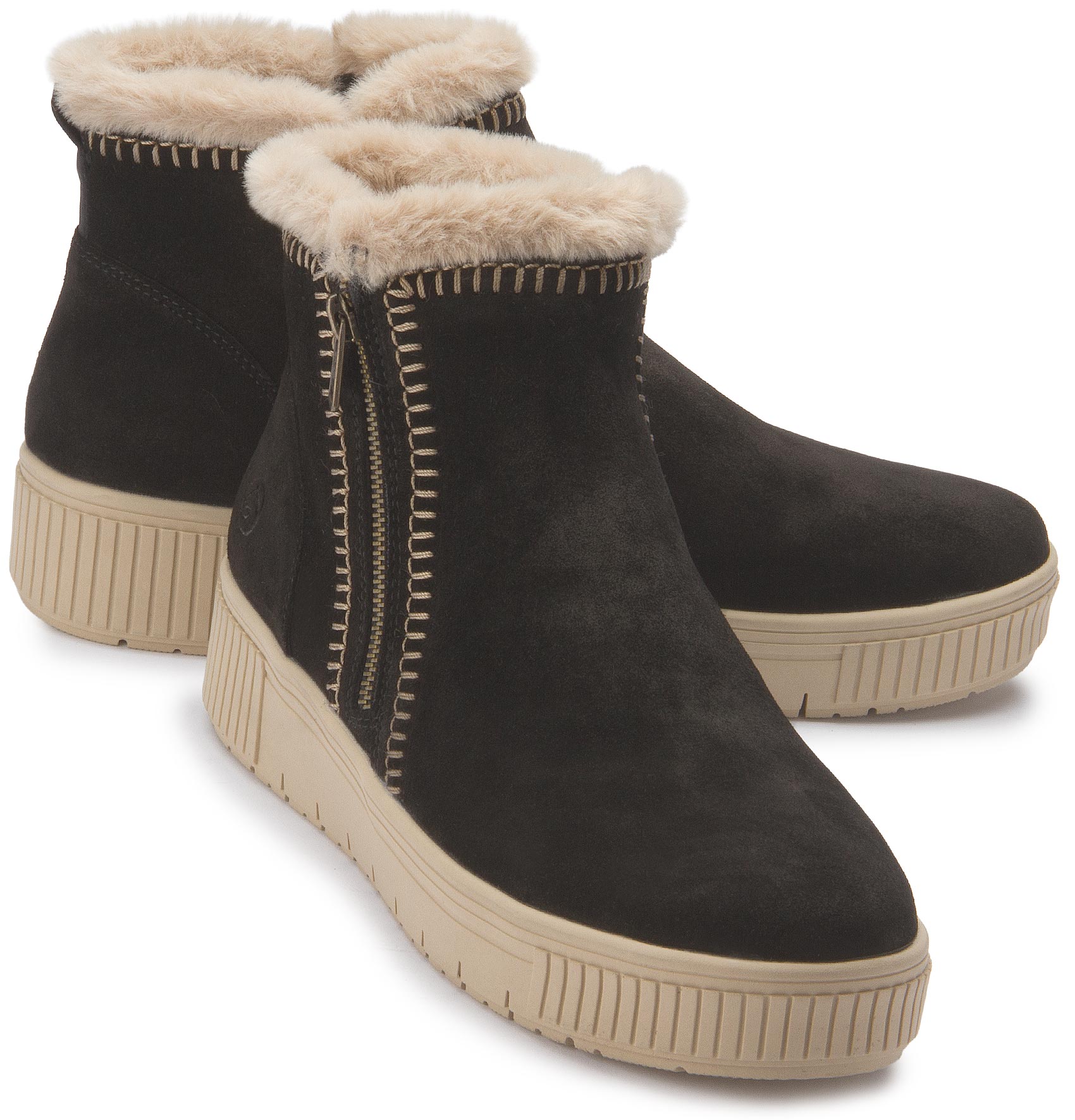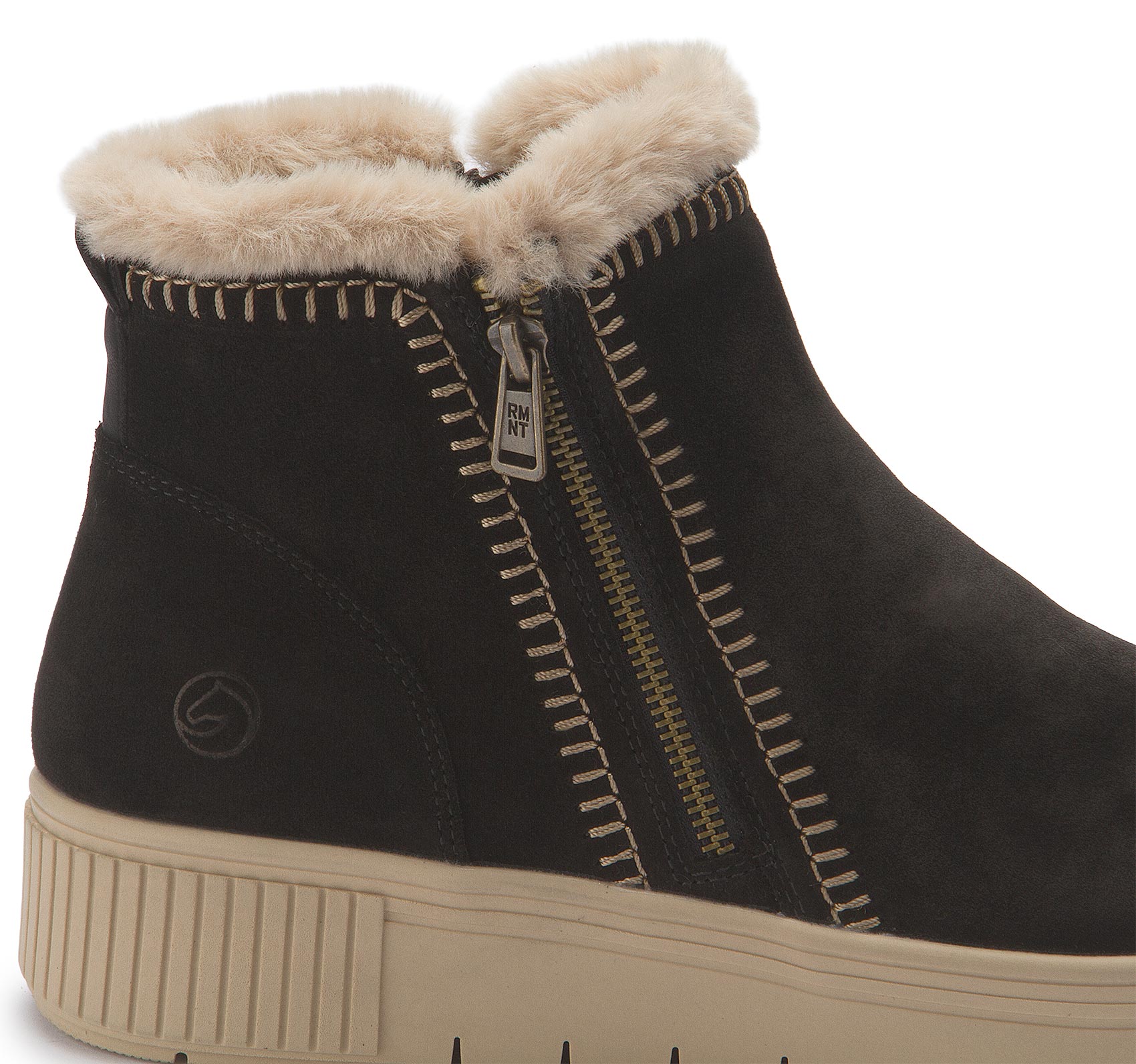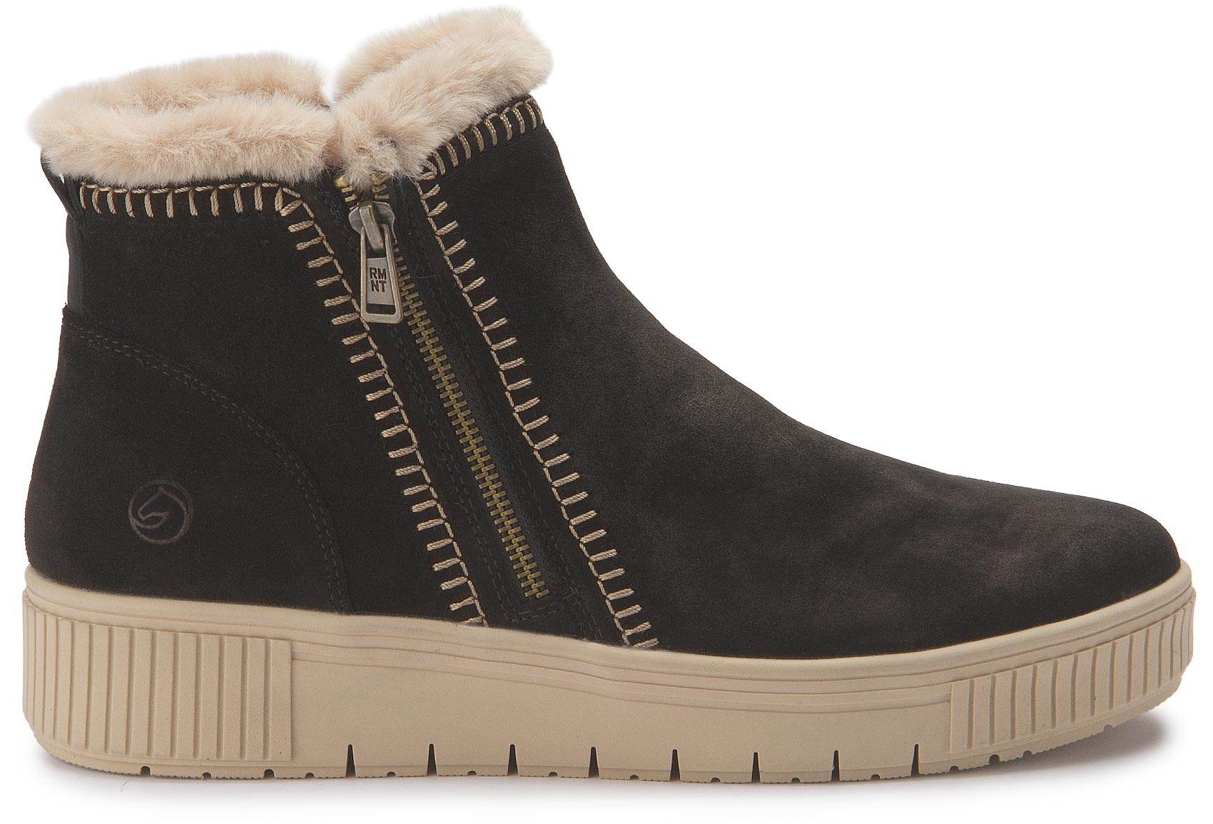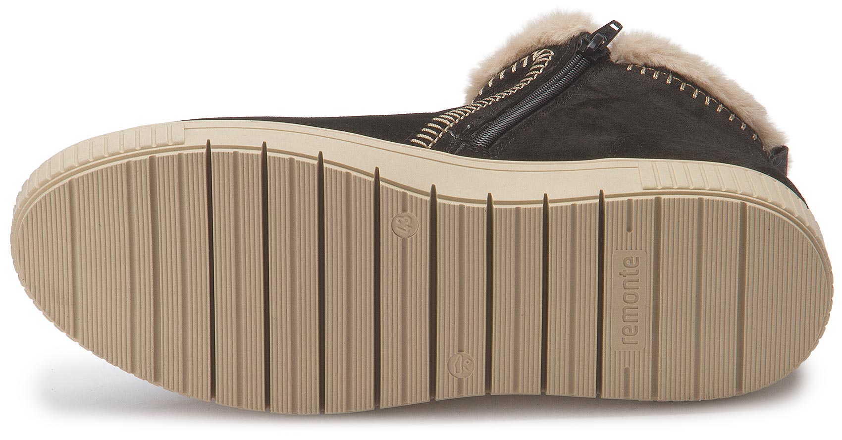 Maximum style, maximum comfort! These brown suede remonte ankle boots combine a cool design with maximum comfort. The zipper means the shoe can be put on very quickly. The stylish white zigzag stitching on the side adds a fashionable touch to the design. The functional highlights are rounded off by the padded, removable insole and the non-slip, lightweight sole! The comfort width gives you more room in the shoe. The model is lined with particularly cosy and very warm new wool, guaranteeing long-lasting protection from the cold. Get in the mood!