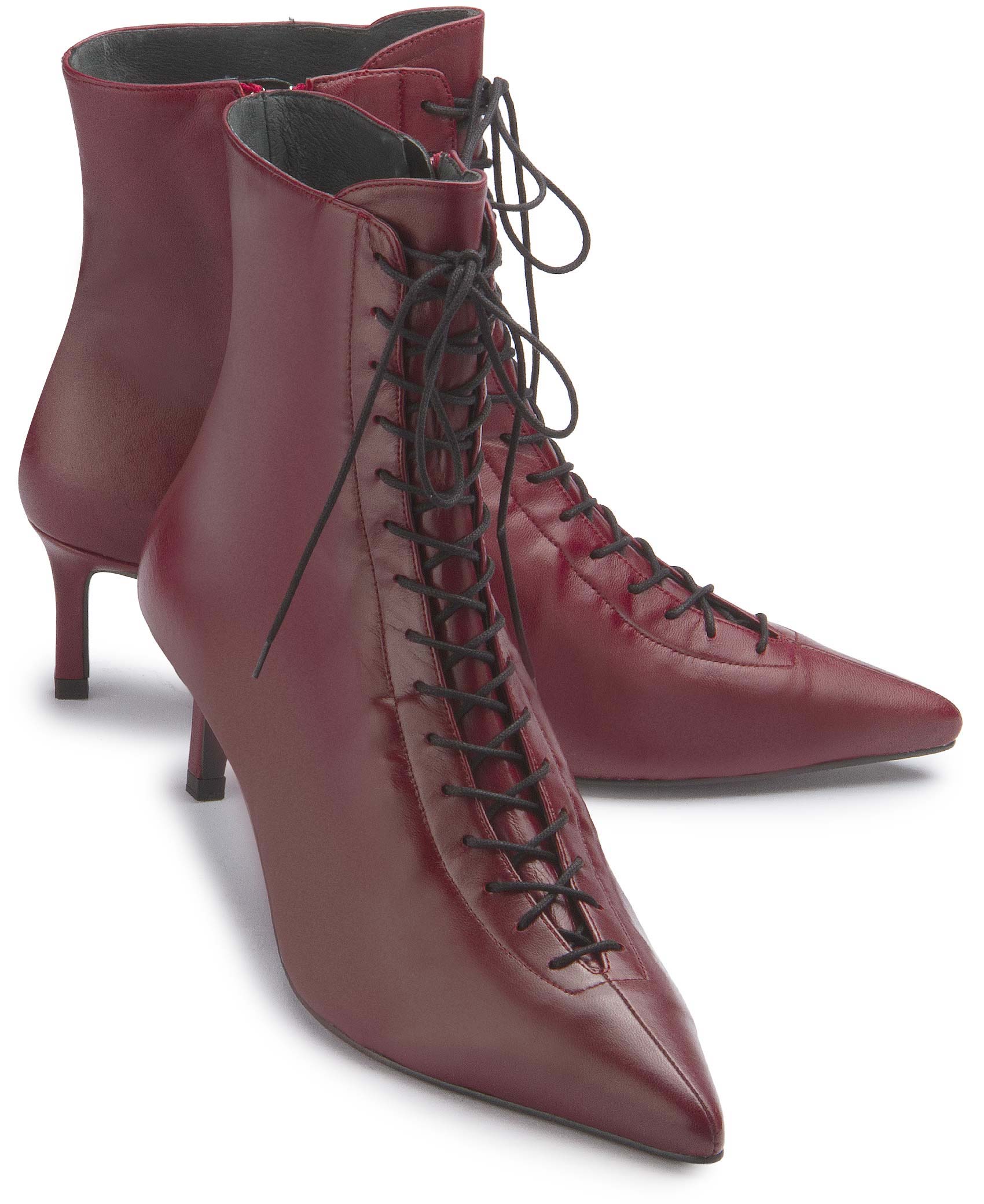 This elegant ankle boot from Bariello impresses with its feminine design with fine lacing and pointed silhouette. Made from high-quality leather, the practical zipper on the inside makes them easy to put on and take off. The narrow heel rounds off the stylish look perfectly - ideal for fashionable looks with class.