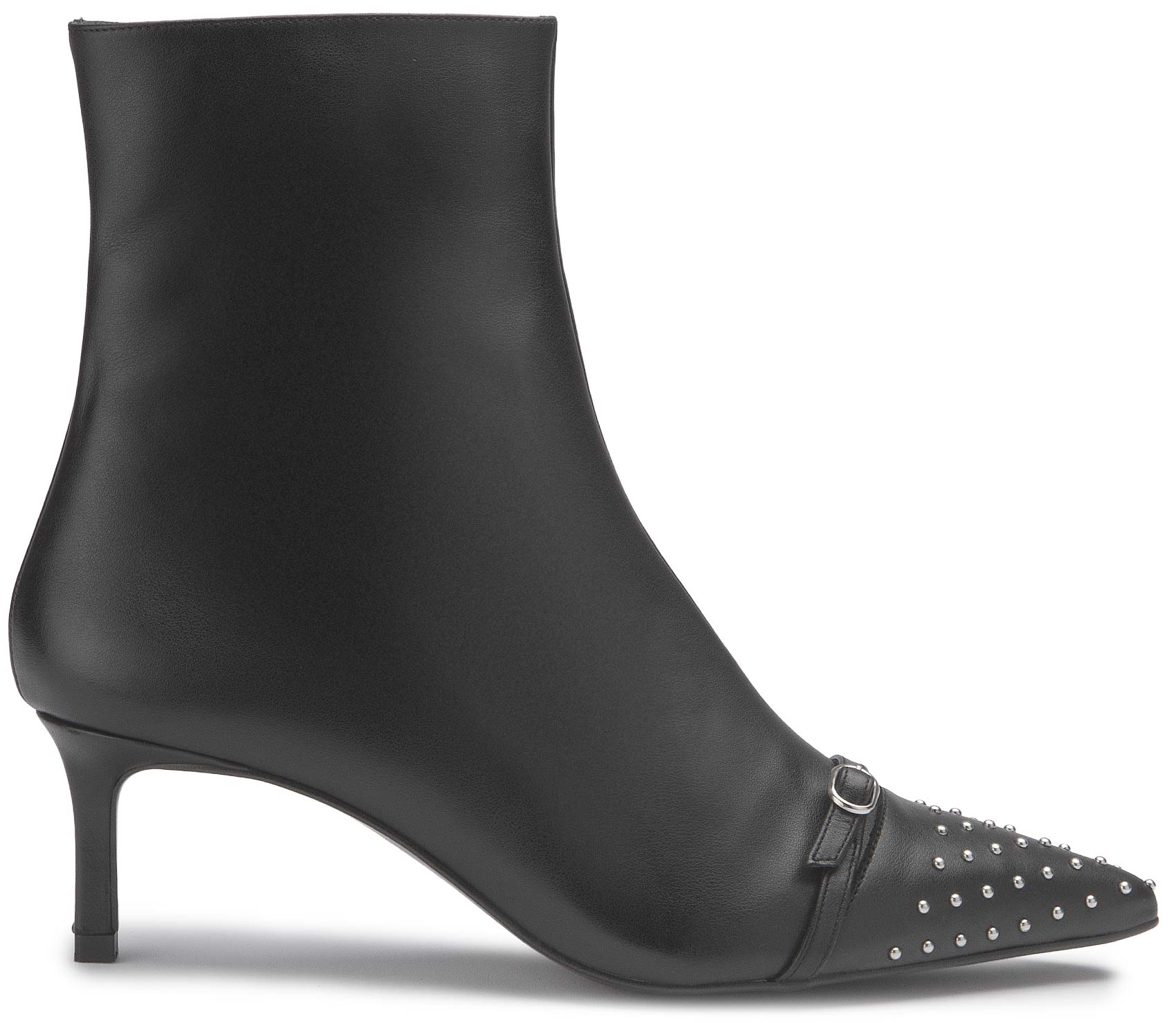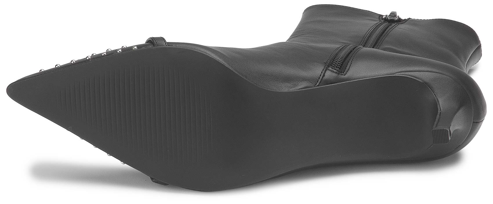This elegant ankle boot from Bariello combines style and sophistication. The smooth black leather with studded trim and fine metal elements give the pointed design a modern, sophisticated look. The narrow heel creates a feminine silhouette - perfect for elegant appearances with a touch of rock chic.