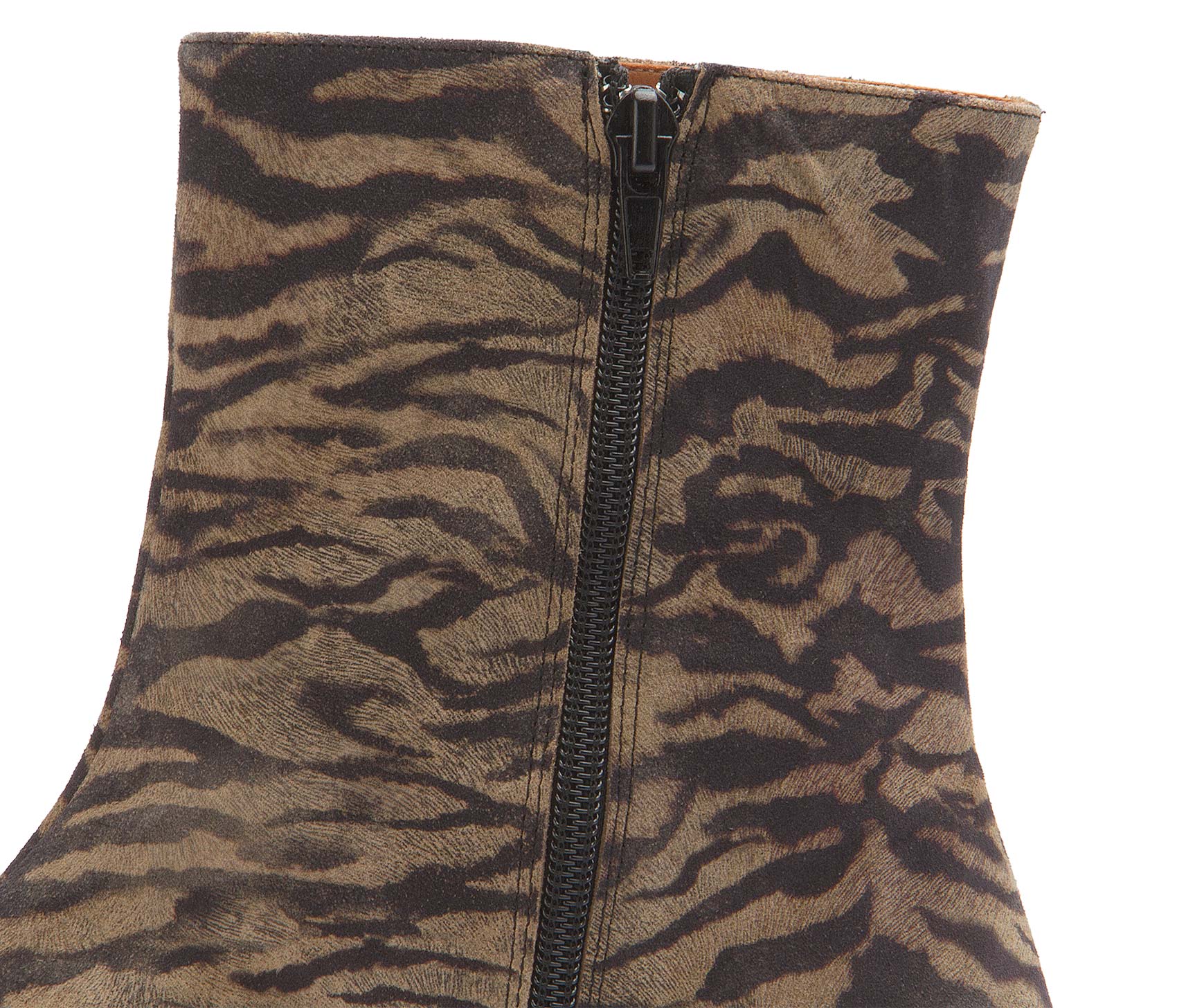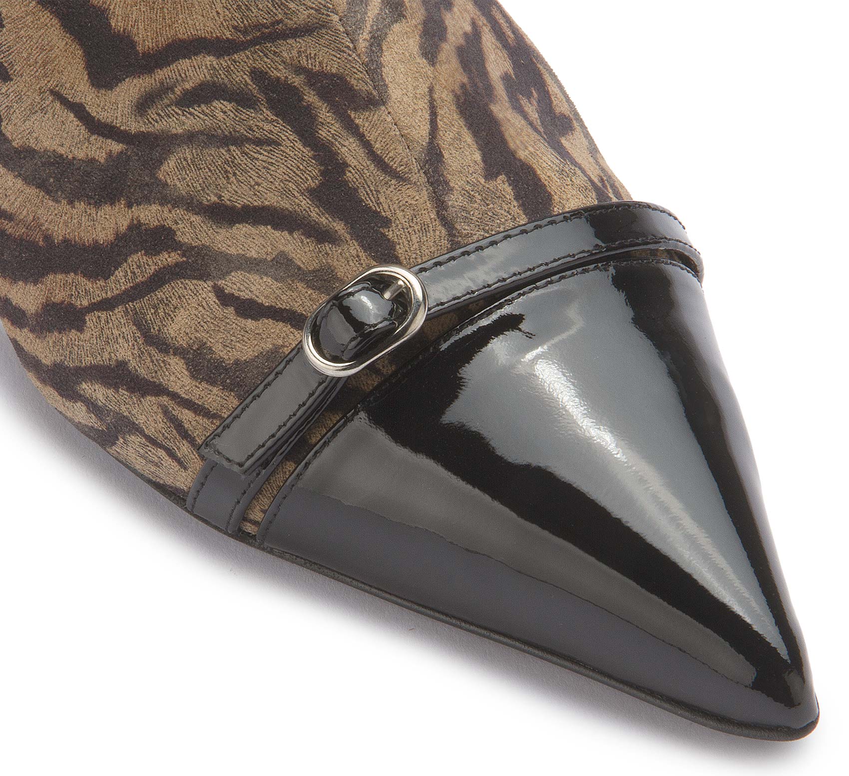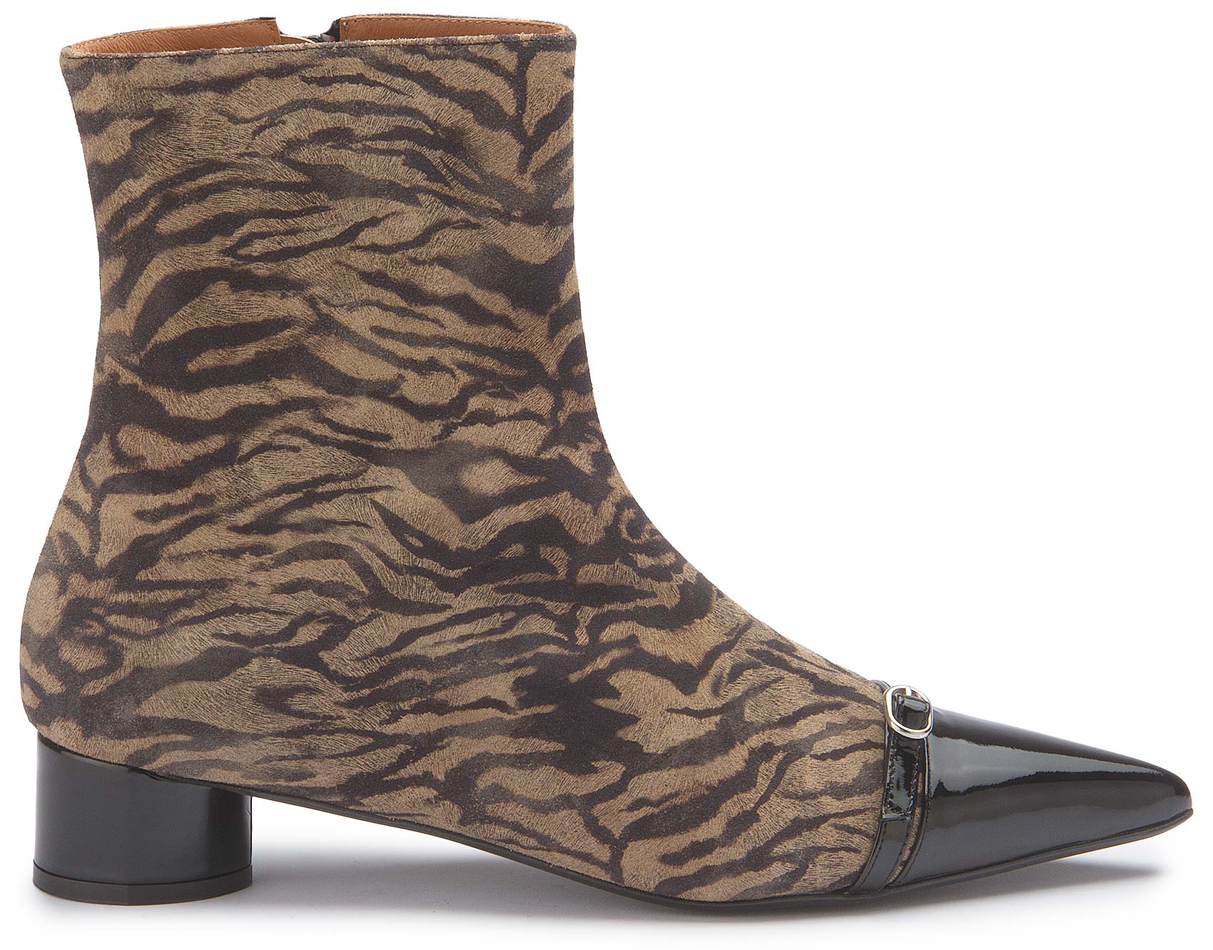 These extravagant ankle boots from Bariello make a fashion statement with their animal print and shiny patent lace. The block heel and side zipper make them comfortable to wear - perfect for style-conscious looks with a touch of glamour.