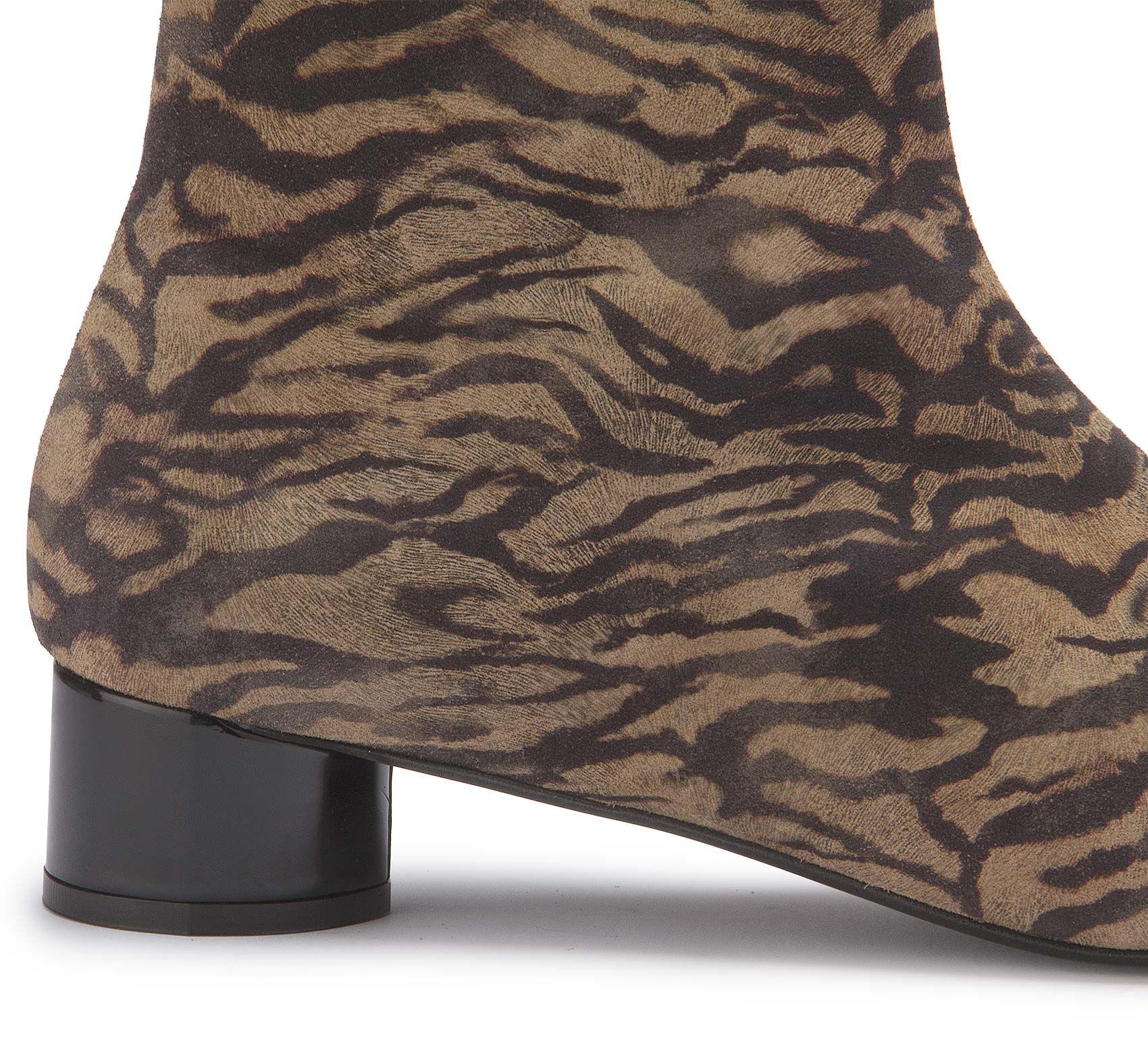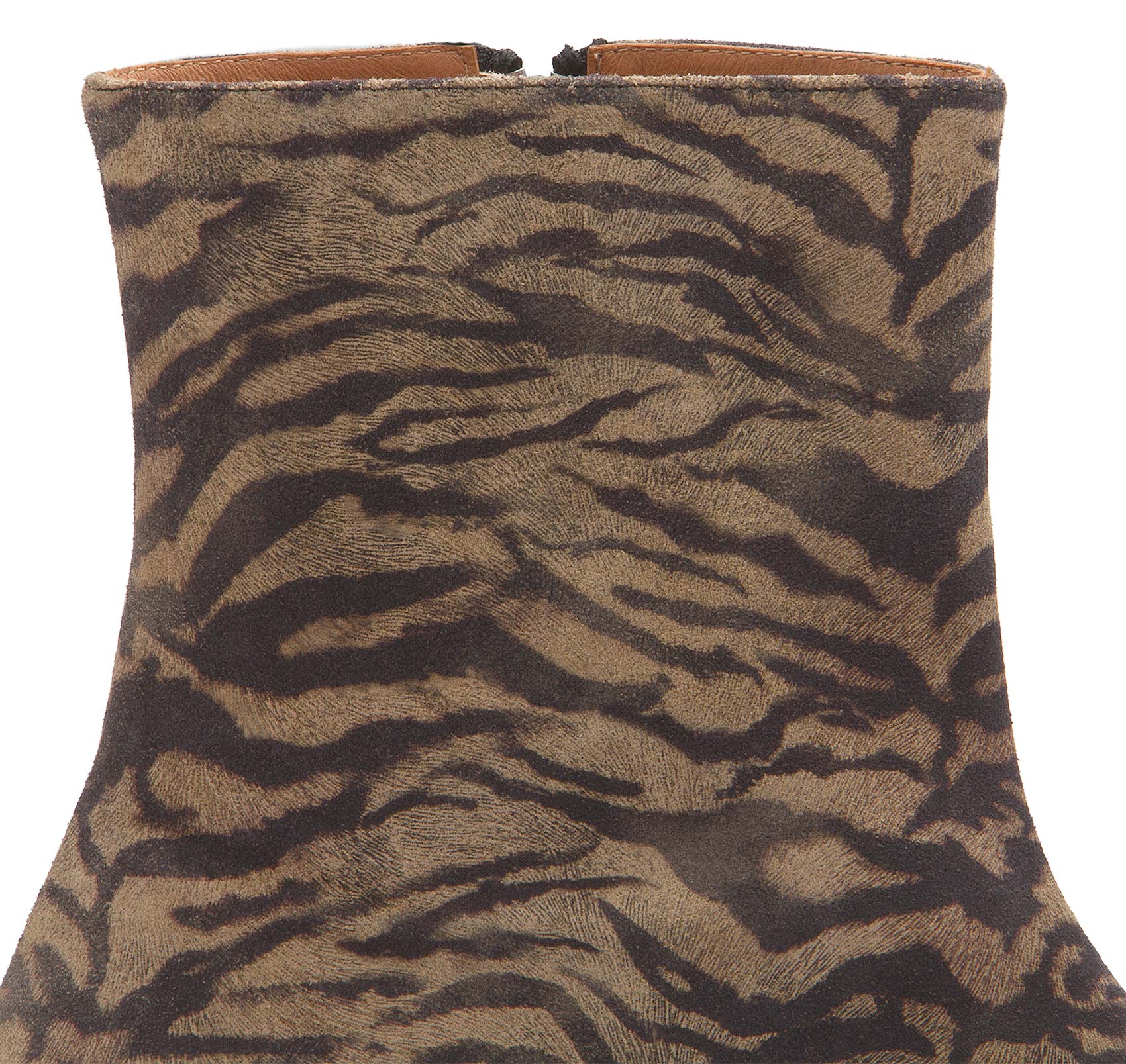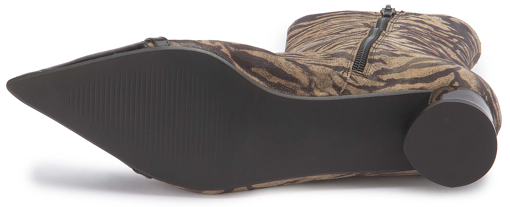These extravagant ankle boots from Bariello make a fashion statement with their animal print and shiny patent lace. The block heel and side zipper make them comfortable to wear - perfect for style-conscious looks with a touch of glamour.