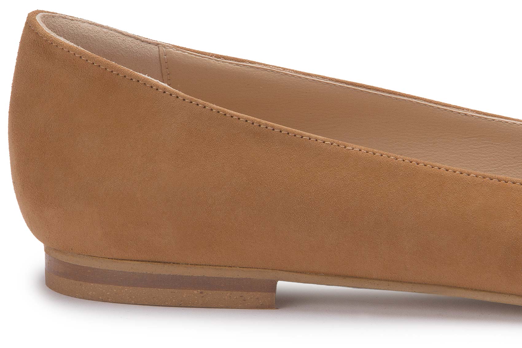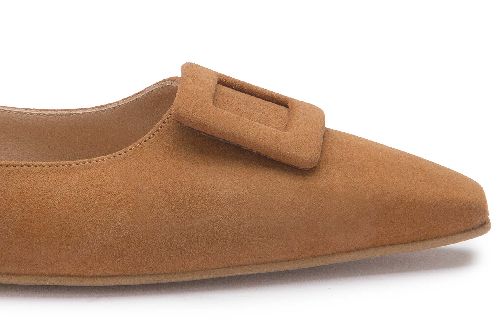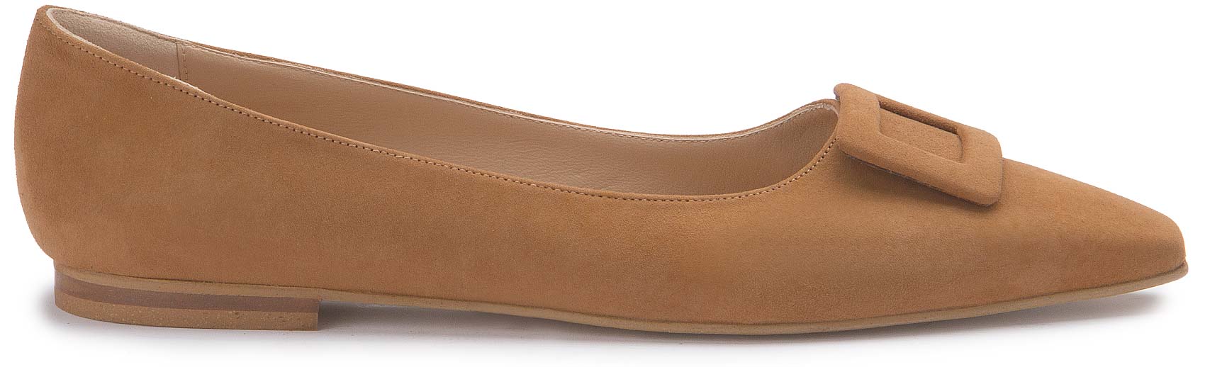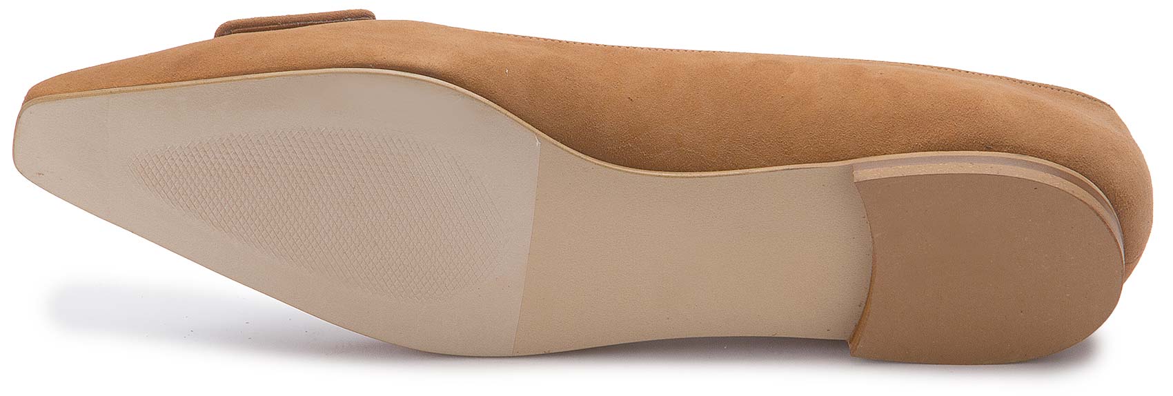 These ballerinas from Bariello impress with their elegant suede and striking, tonal decorative buckle. The pointed shape and warm caramel brown color add a stylish, modern touch to any outfit - perfect for everyday wear and the office.