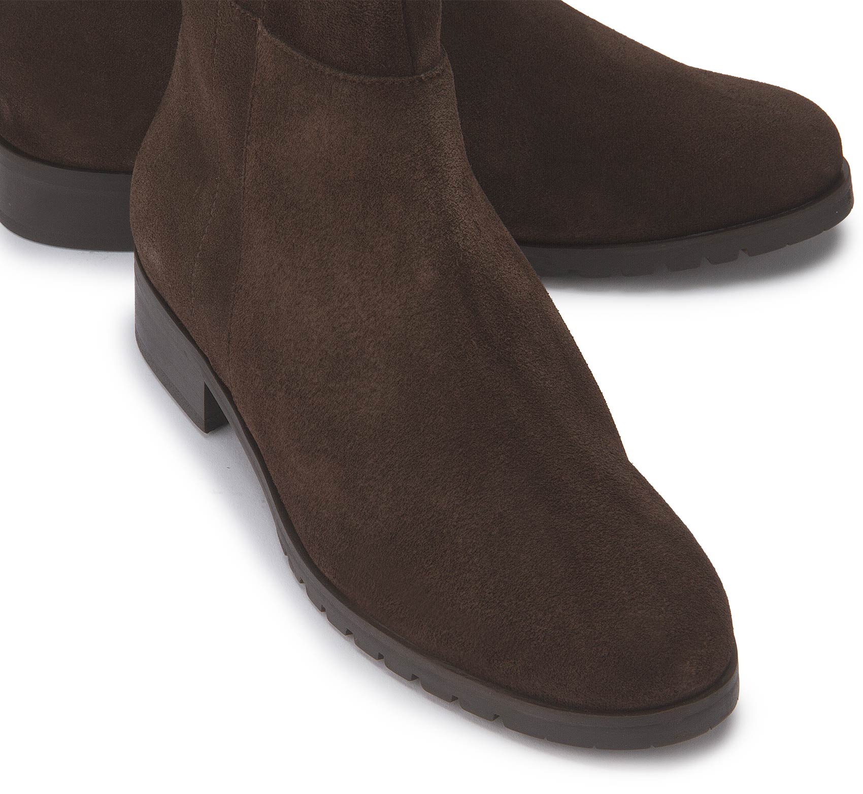 These elegant boots from Bariello impress with their elegant suede leather in dark brown and timeless, sleek design. Thanks to the flat sole with a light profile, they are not only stylish but also comfortable to wear - ideal for everyday wear and stylish appearances.