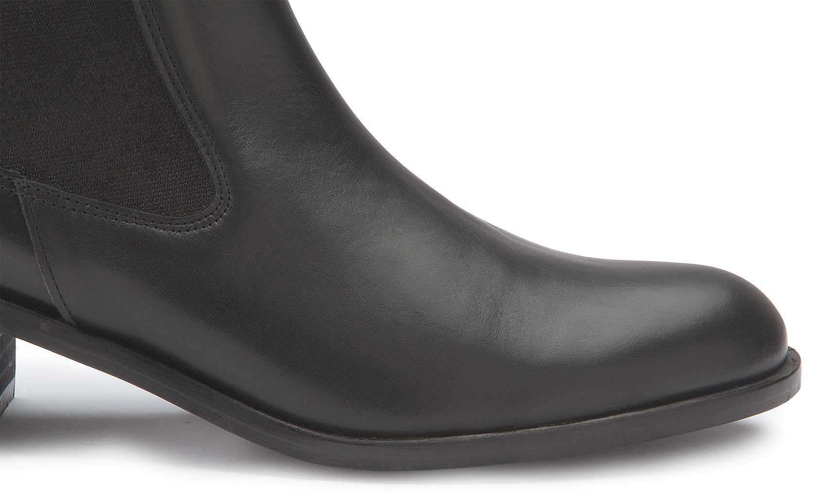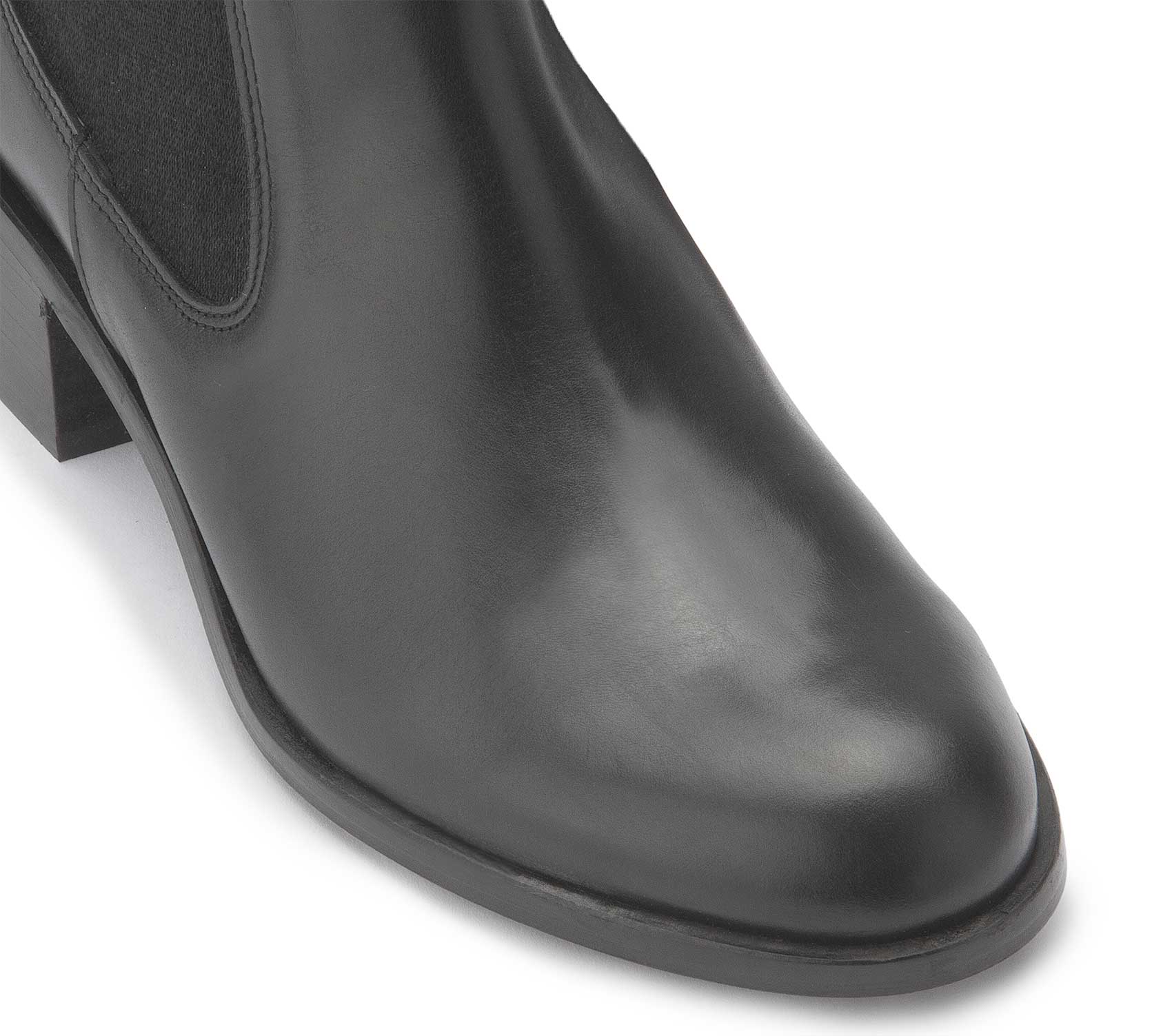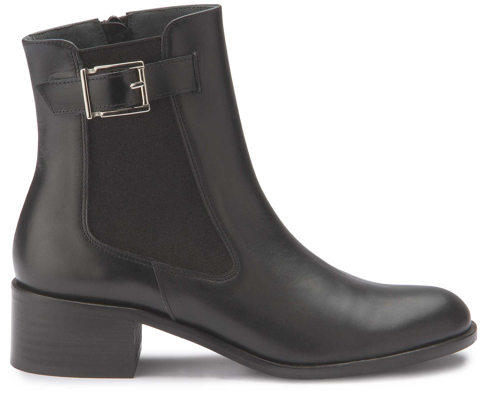 This black Chelsea boot by Bariello combines a minimalist design with sophisticated details such as the elasticated side insert and decorative buckle. High-quality smooth leather, a comfortable block heel and the zipper ensure stylish everyday wear with an urban character.