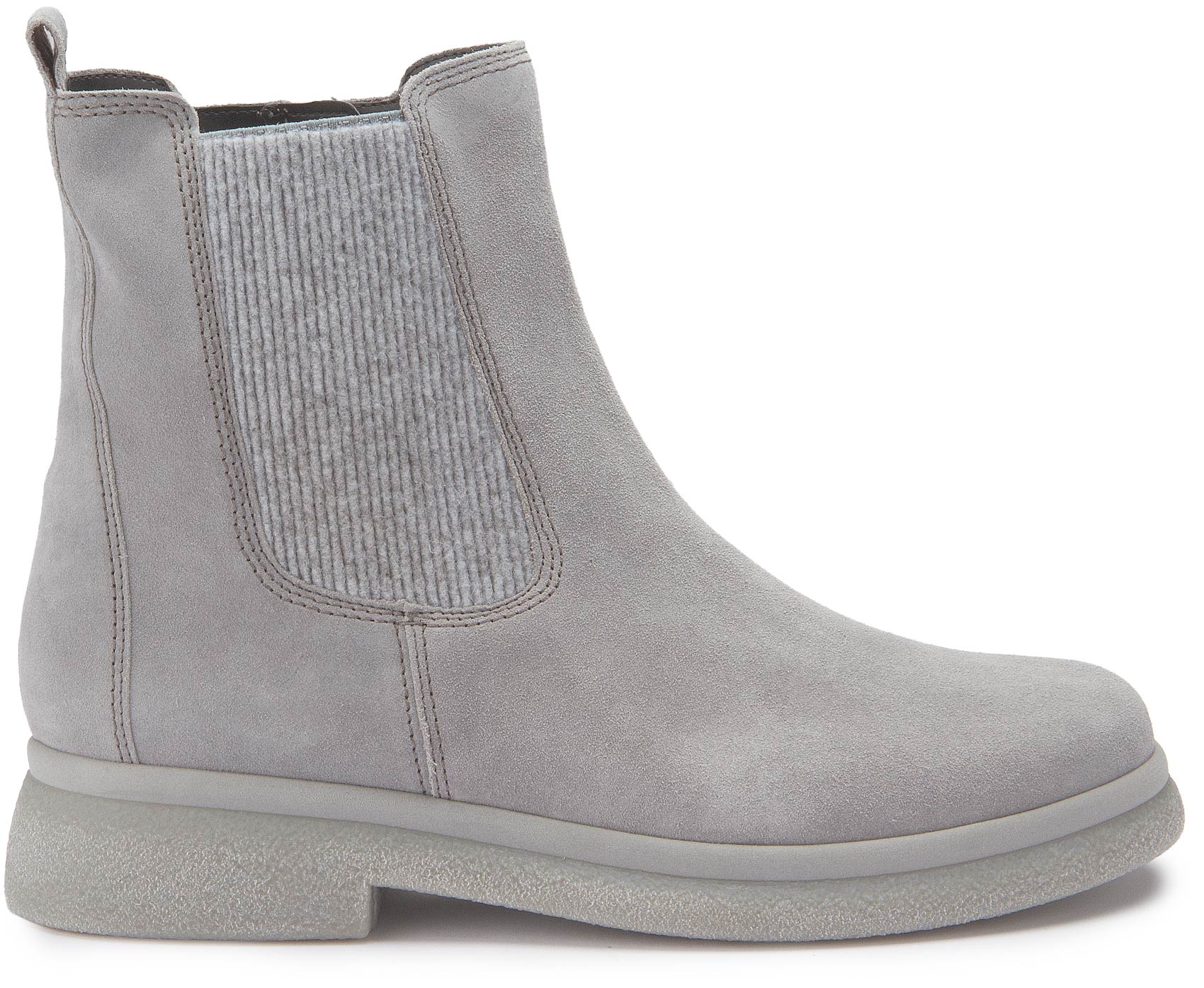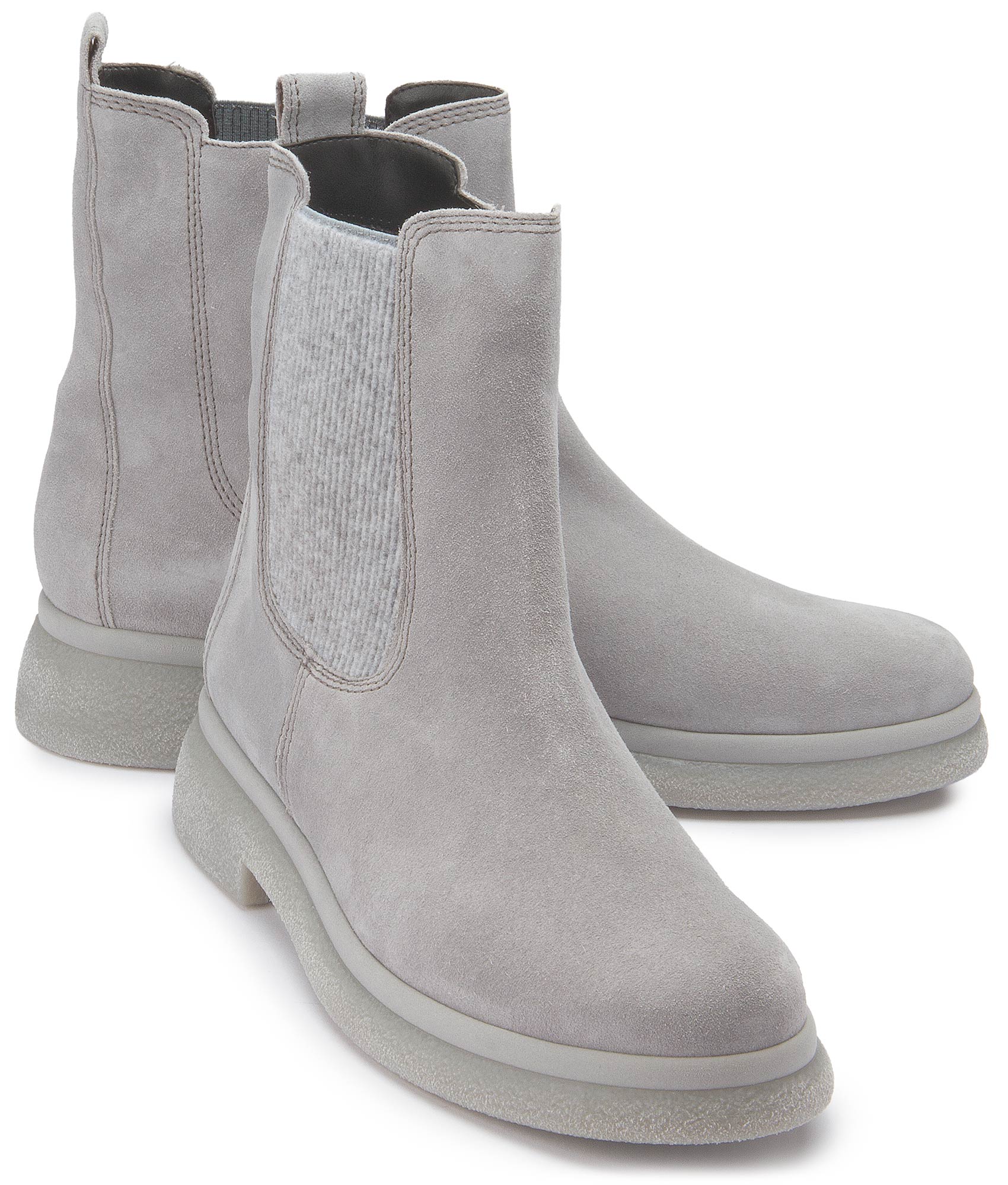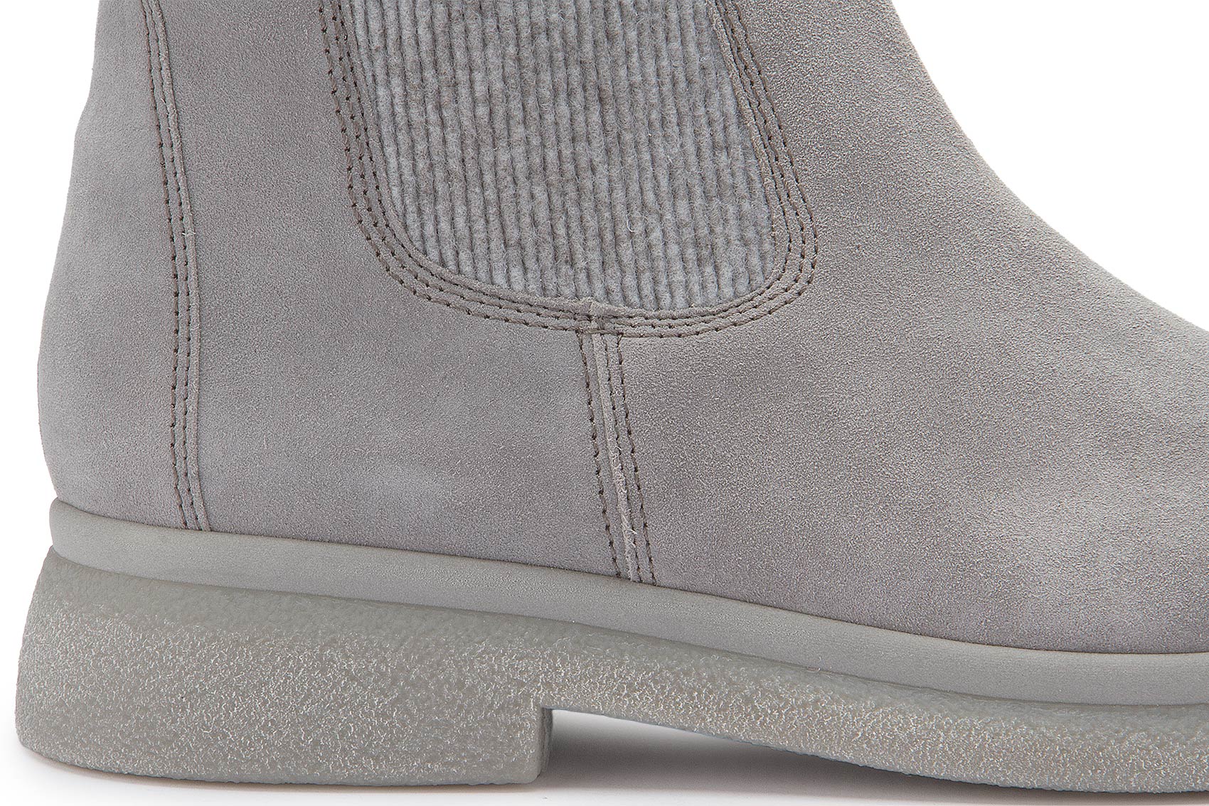 This chelsea boot made of high-quality grey suede features a comfortable textile lining. The elasticated insert makes it easy to put on and take off. A shoe that perfectly combines style and comfort - a real statement for any occasion. Set fashionable accents, especially in the fall season!